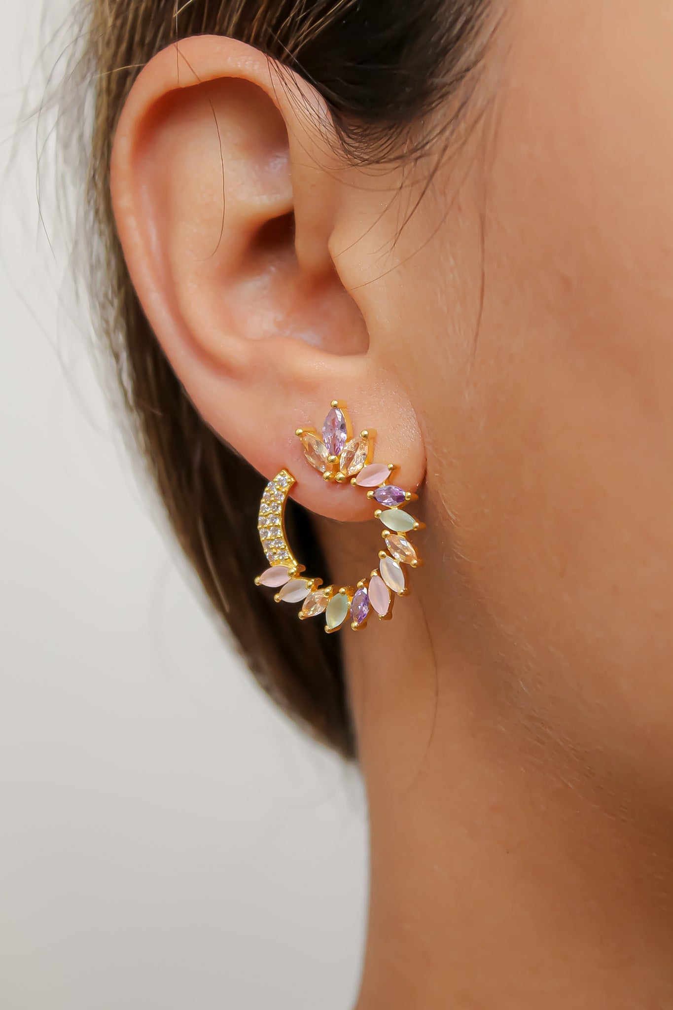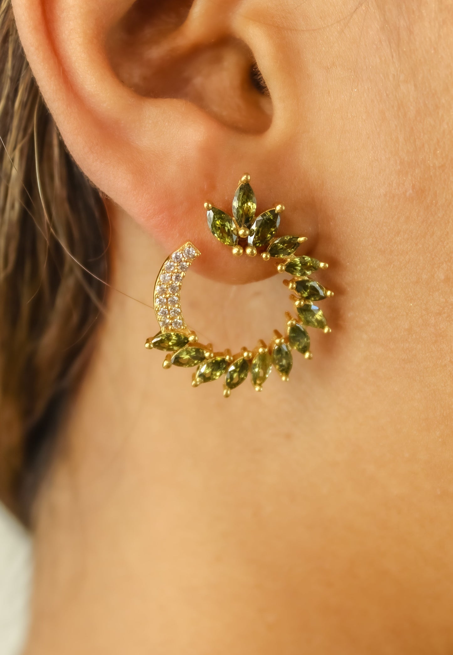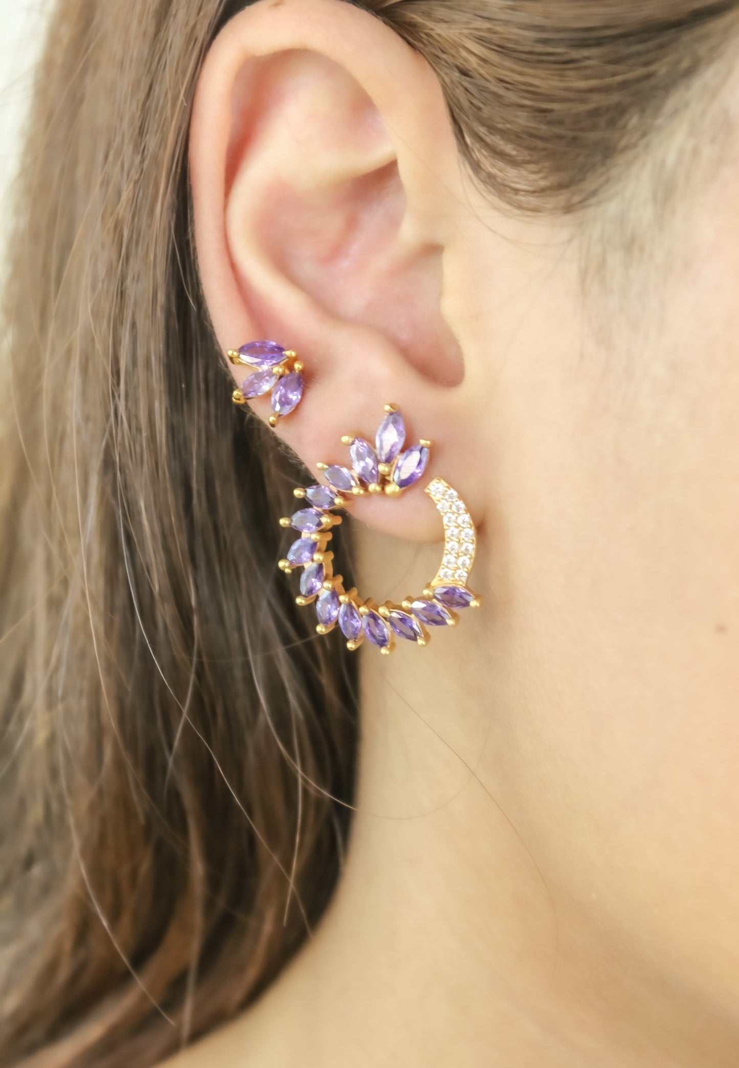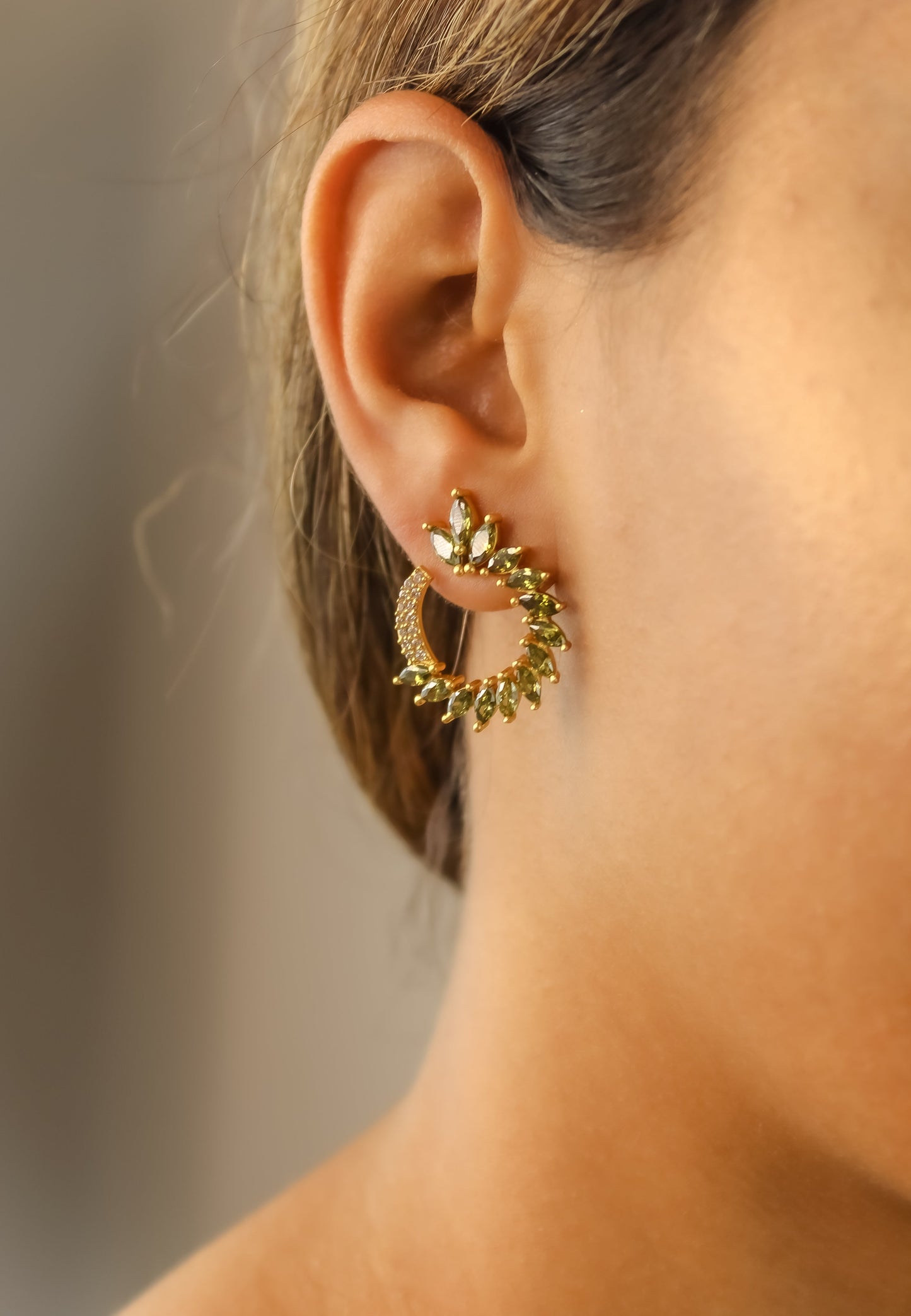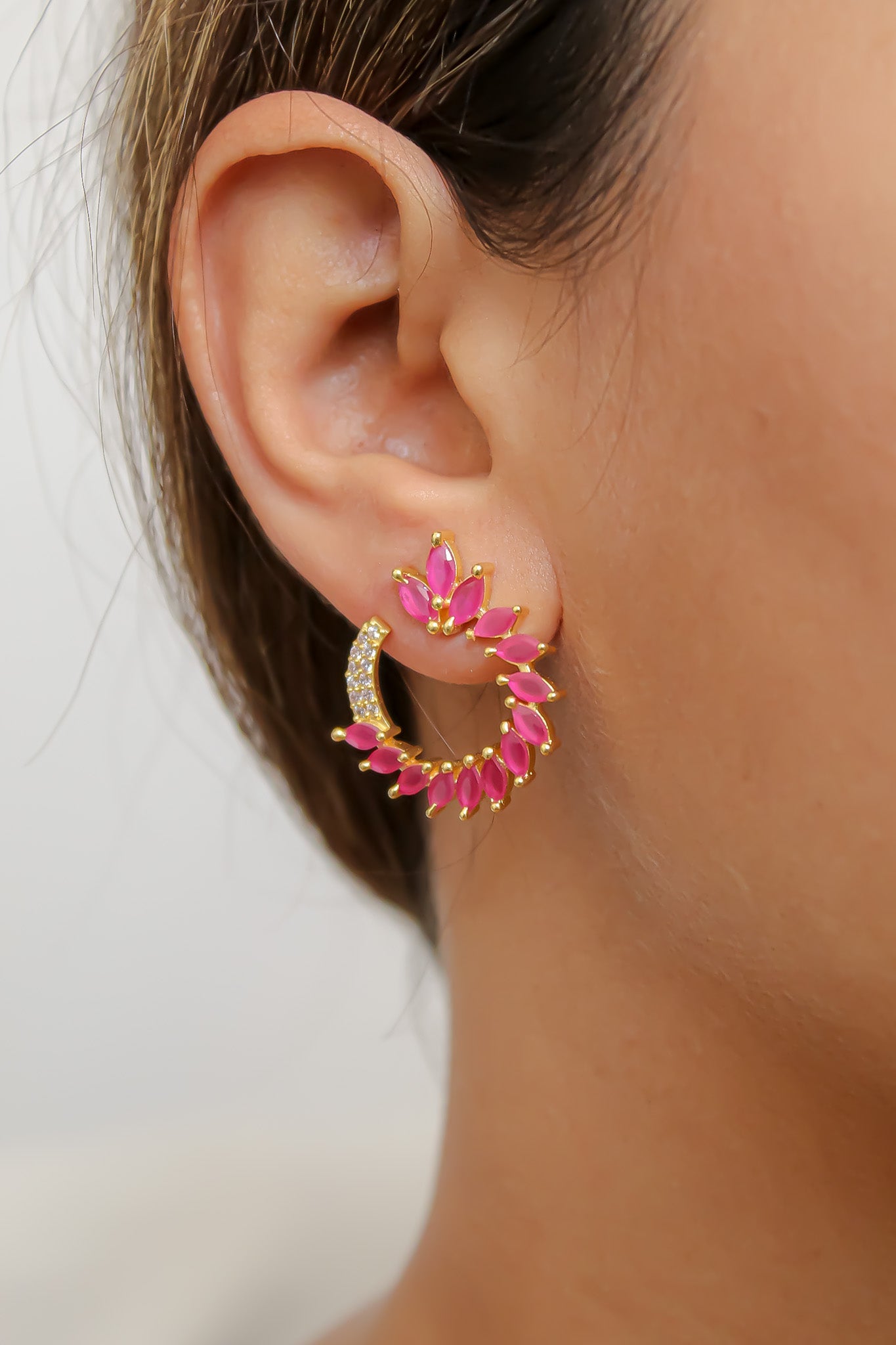 Fresca, llena de color y con estilo a la vez, la víbora se ha convertido en una seña de identidad de Bombay Sunset. Con color brillante y circonitas blancas sobre base bañada en oro de 18k. Añadiendo un acento vivo a los looks, el accesorio evoca las fiestas europeas más recientes celebradas en Nueva Delhi. Frescos, coloridos y ricamente gráficos, este extraordinario conjunto se ha convertido en un ícono de los aretes de la casa.