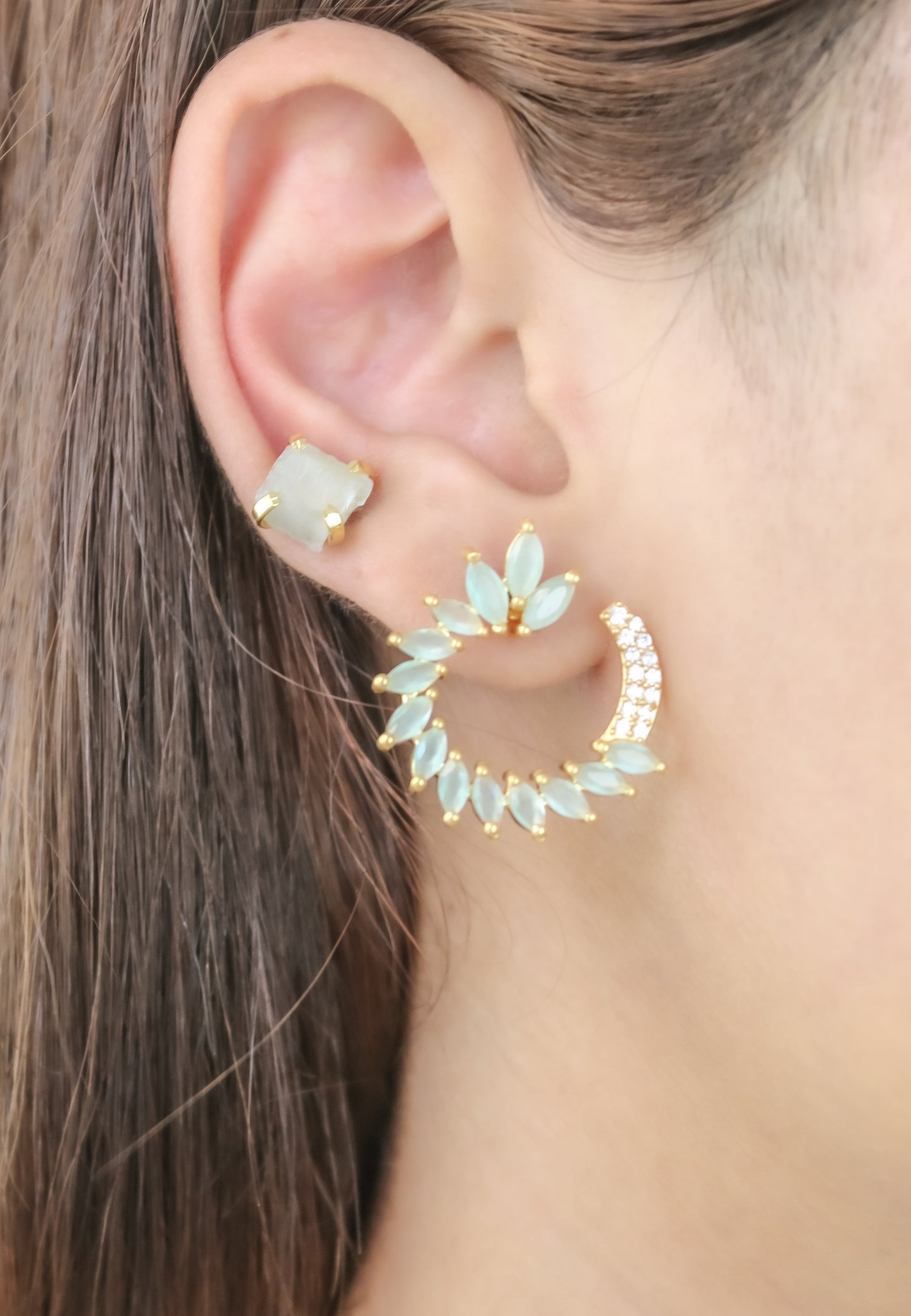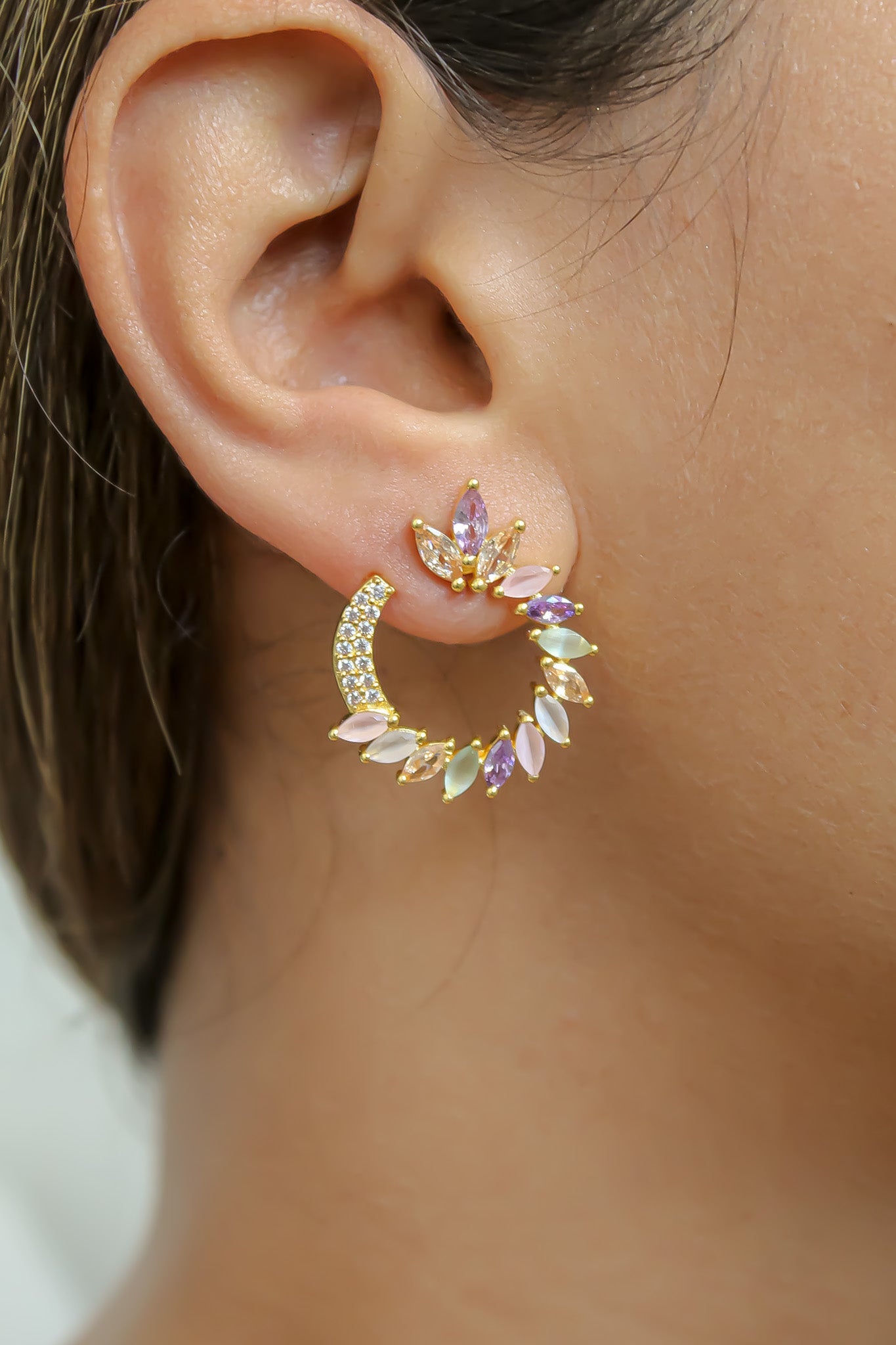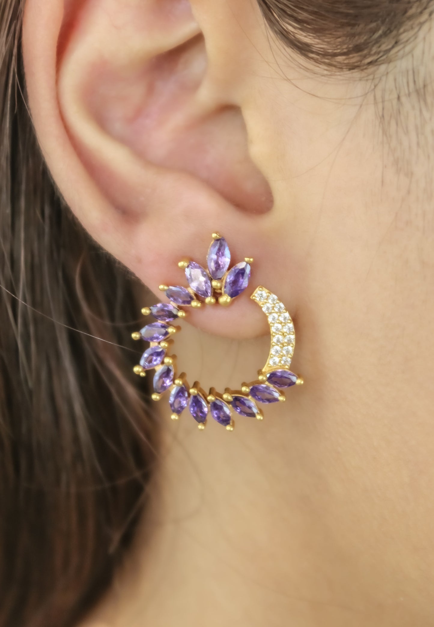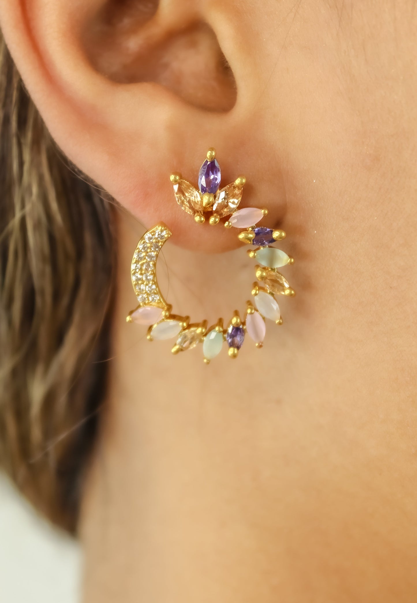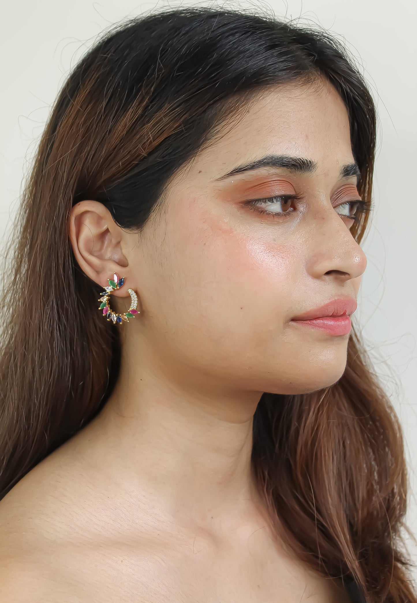 Fresca, llena de color y con estilo a la vez, la víbora se ha convertido en una seña de identidad de Bombay Sunset. Con color brillante y circonitas blancas sobre base bañada en oro de 18k. Añadiendo un acento vivo a los looks, el accesorio evoca las fiestas europeas más recientes celebradas en Nueva Delhi. Frescos, coloridos y ricamente gráficos, este extraordinario conjunto se ha convertido en un ícono de los aretes de la casa.