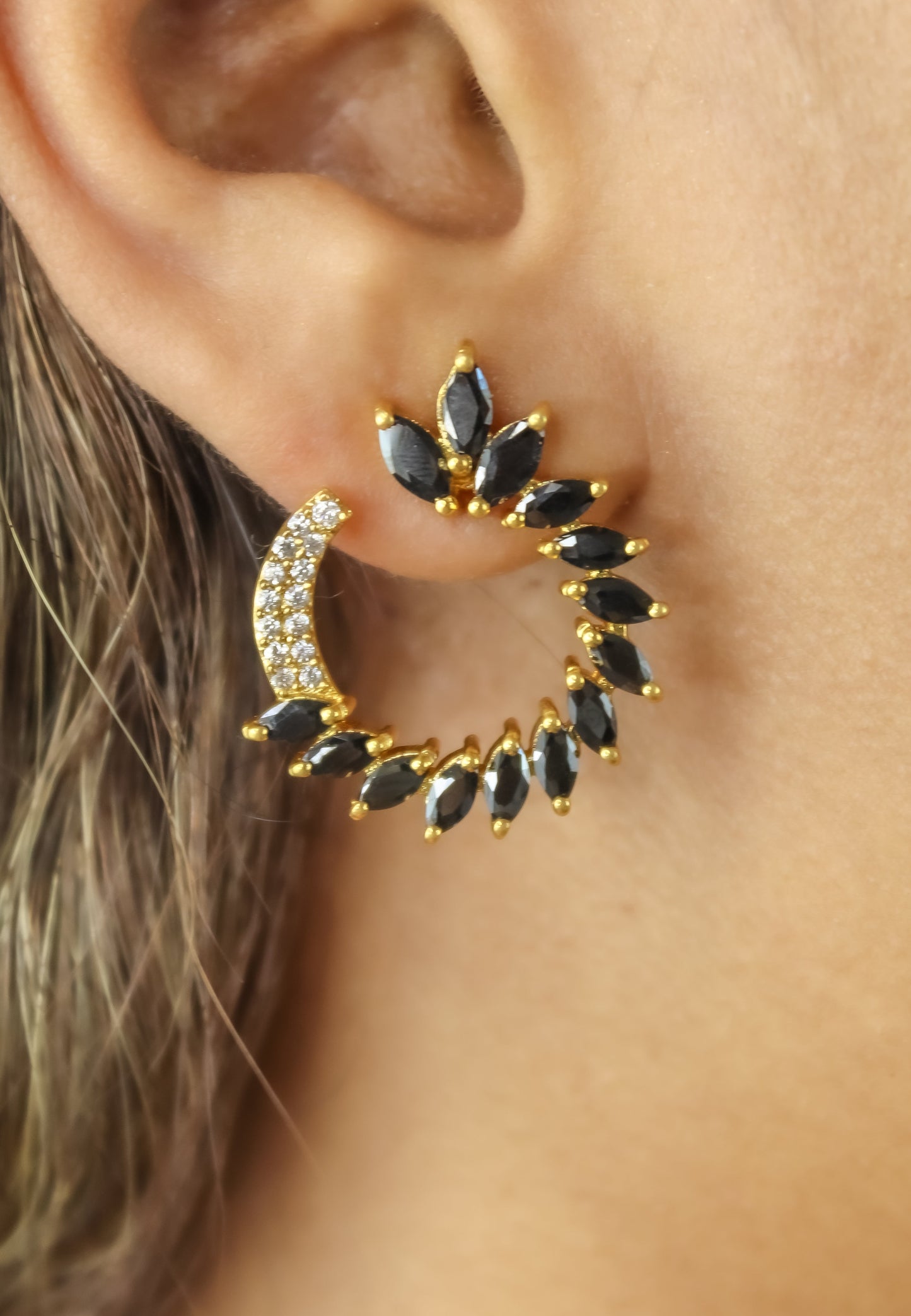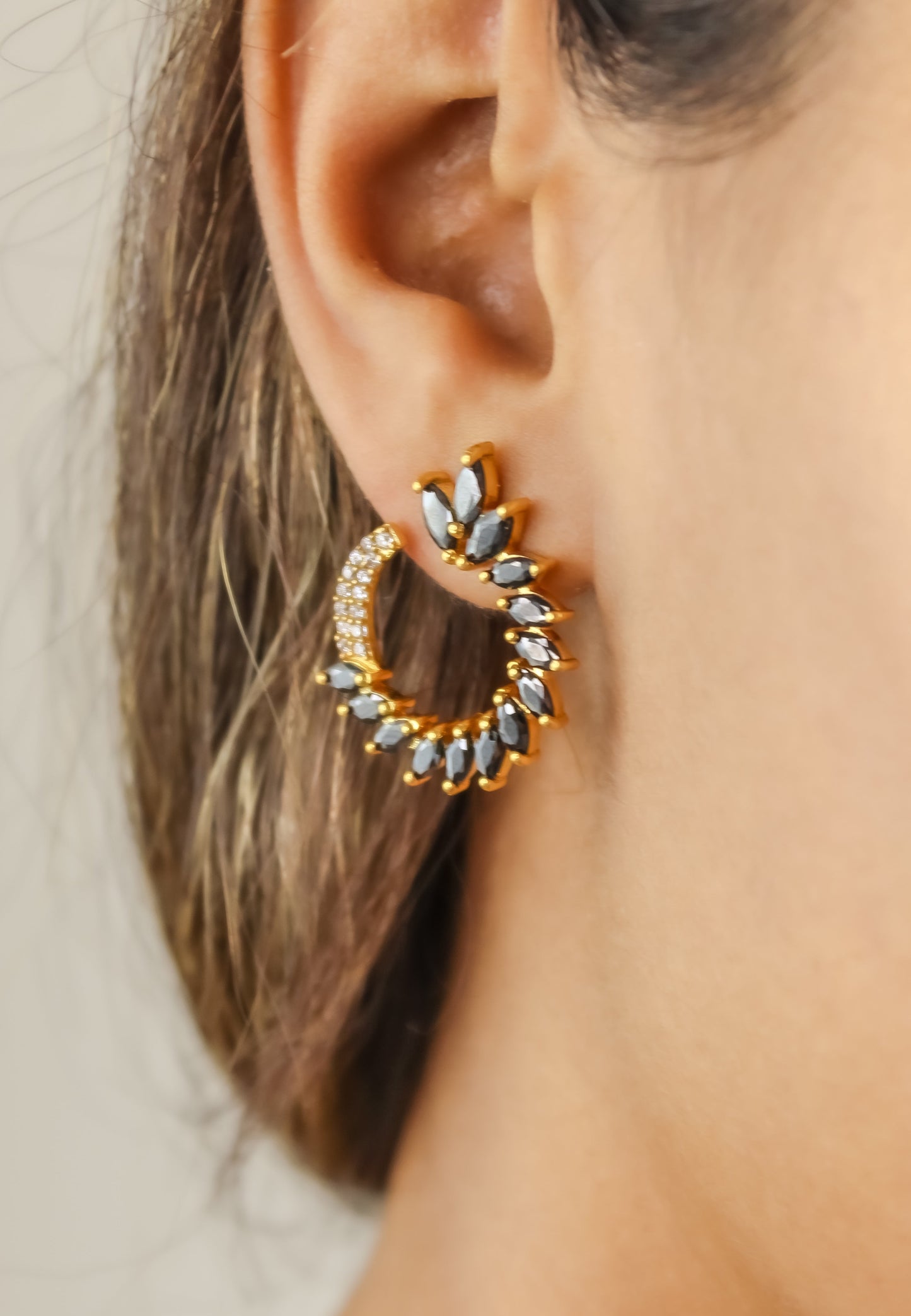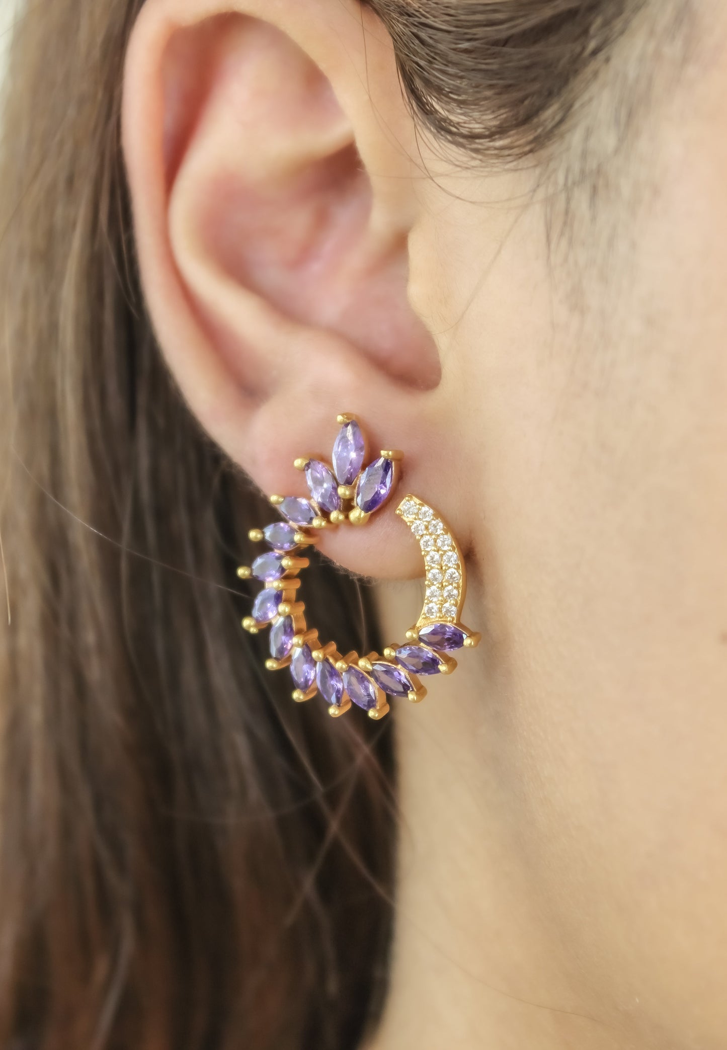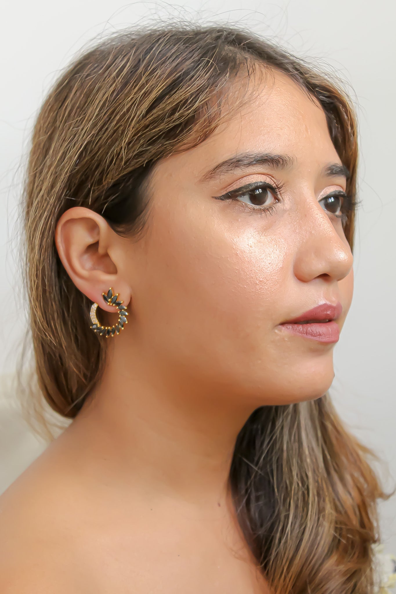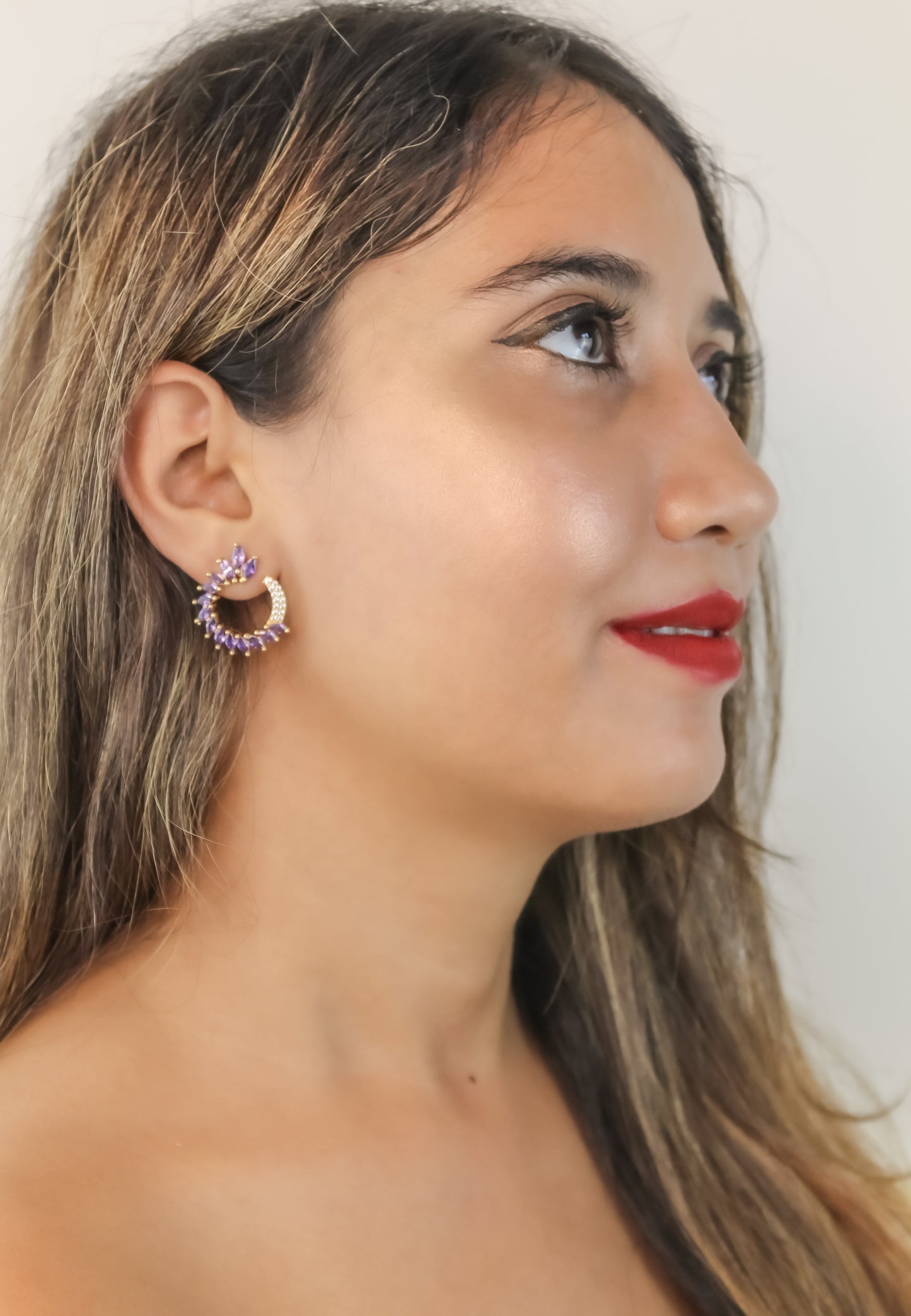 Fresca, llena de color y con estilo a la vez, la víbora se ha convertido en una seña de identidad de Bombay Sunset. Con color brillante y circonitas blancas sobre base bañada en oro de 18k. Añadiendo un acento vivo a los looks, el accesorio evoca las fiestas europeas más recientes celebradas en Nueva Delhi. Frescos, coloridos y ricamente gráficos, este extraordinario conjunto se ha convertido en un ícono de los aretes de la casa.