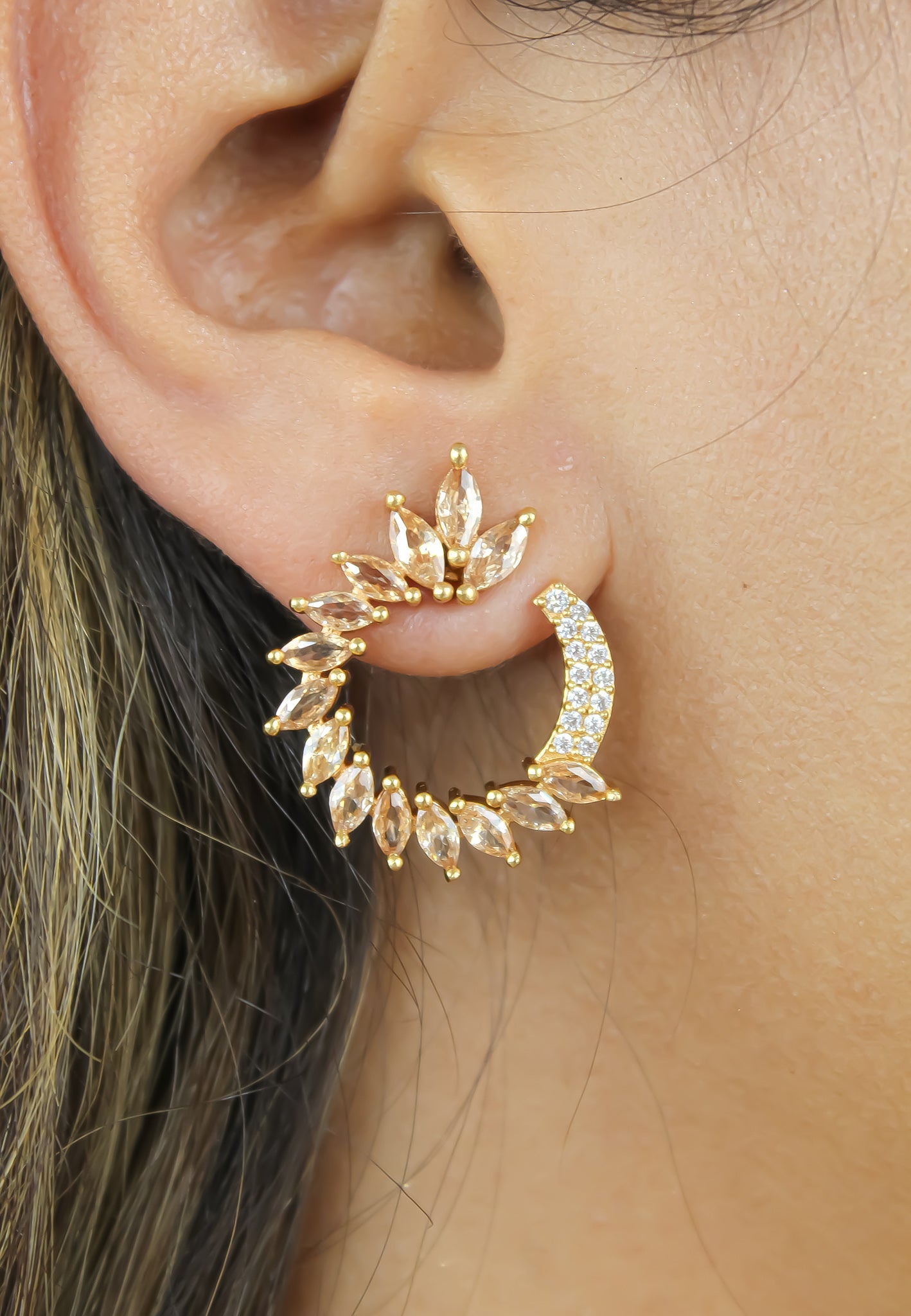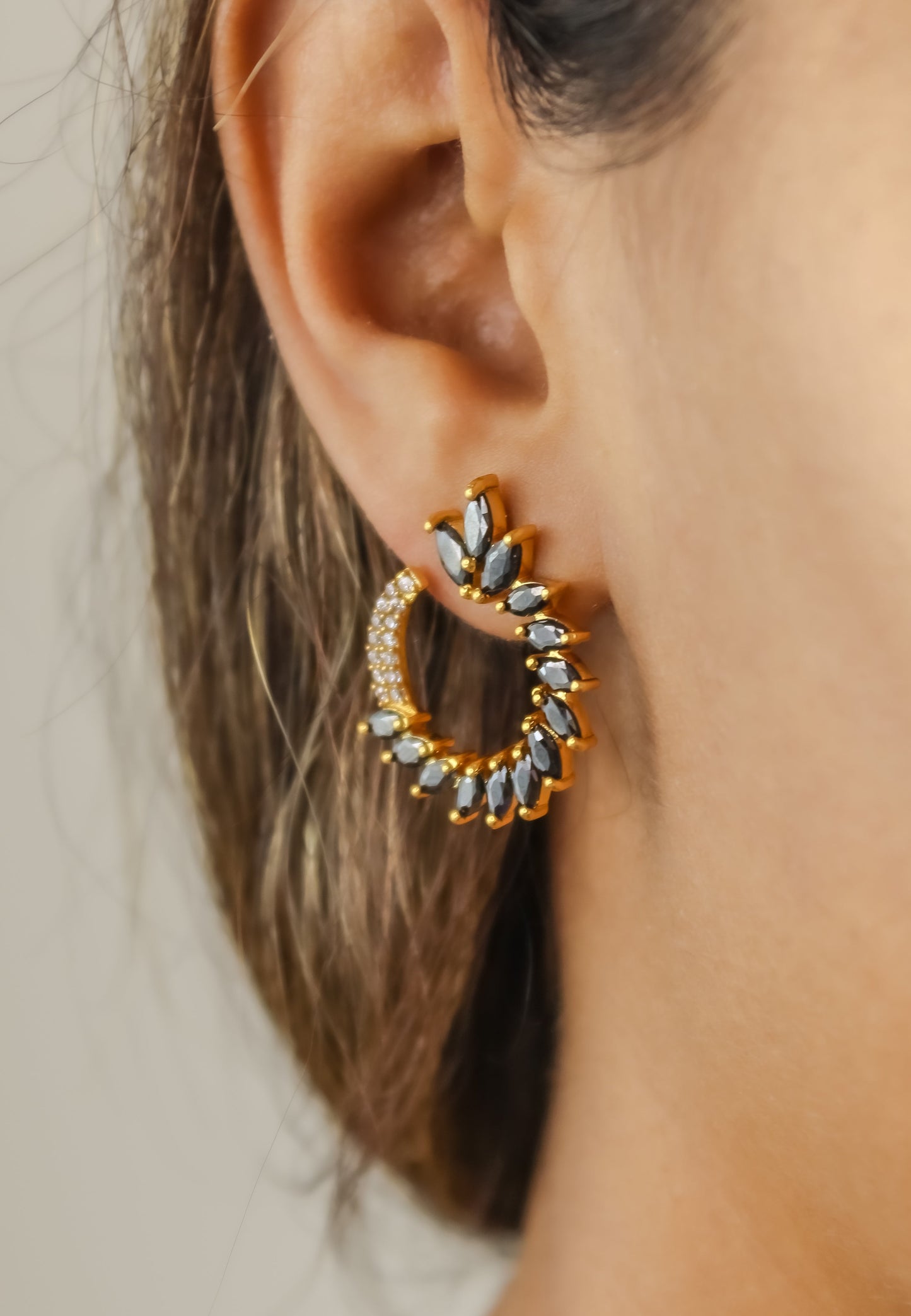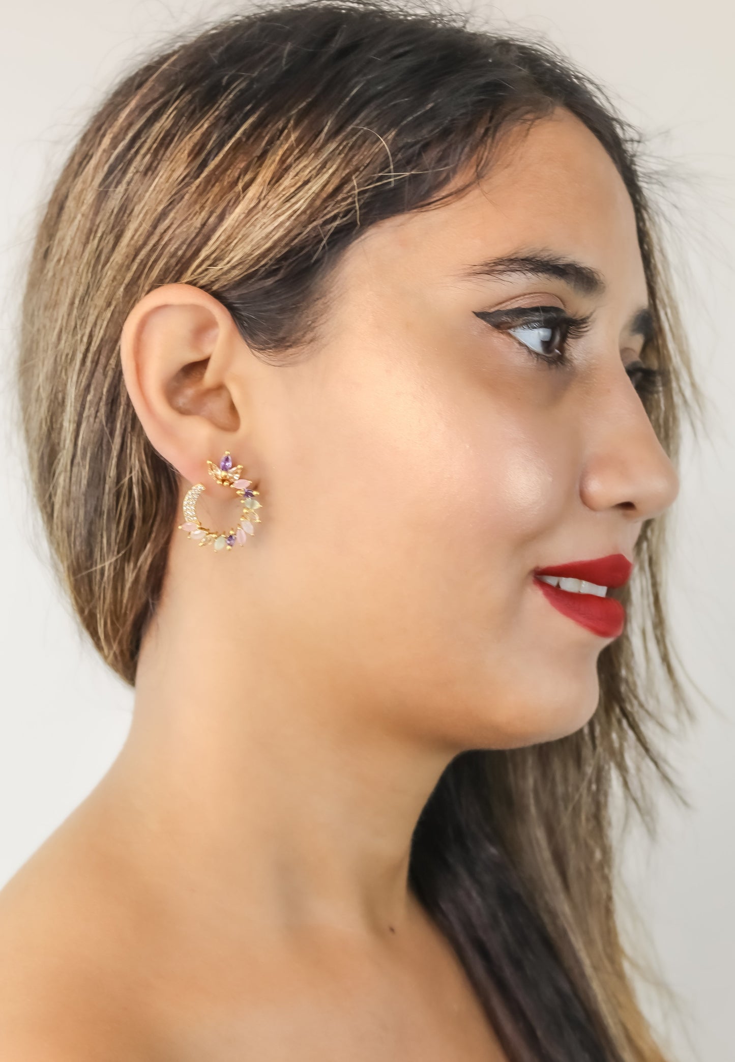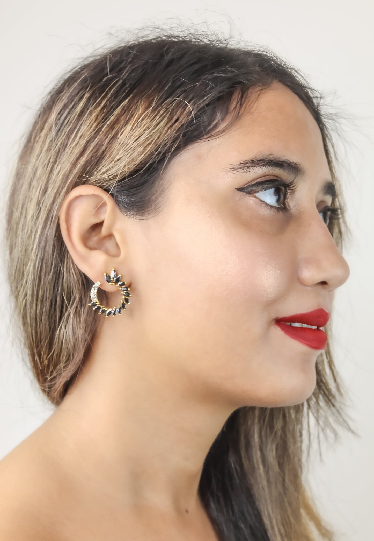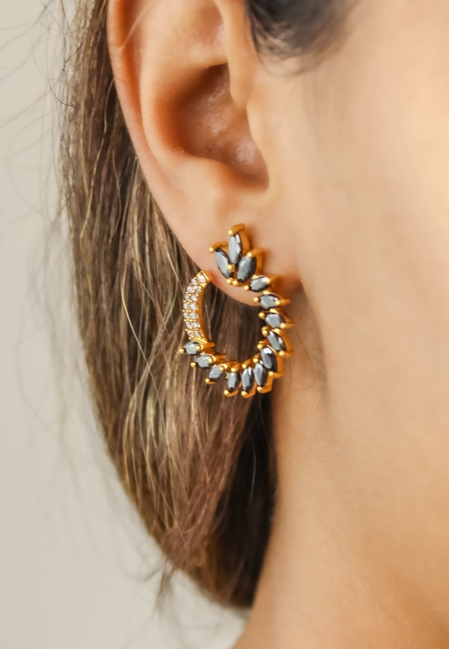 Fresca, llena de color y con estilo a la vez, la víbora se ha convertido en una seña de identidad de Bombay Sunset. Con color brillante y circonitas blancas sobre base bañada en oro de 18k. Añadiendo un acento vivo a los looks, el accesorio evoca las fiestas europeas más recientes celebradas en Nueva Delhi. Frescos, coloridos y ricamente gráficos, este extraordinario conjunto se ha convertido en un ícono de los aretes de la casa.