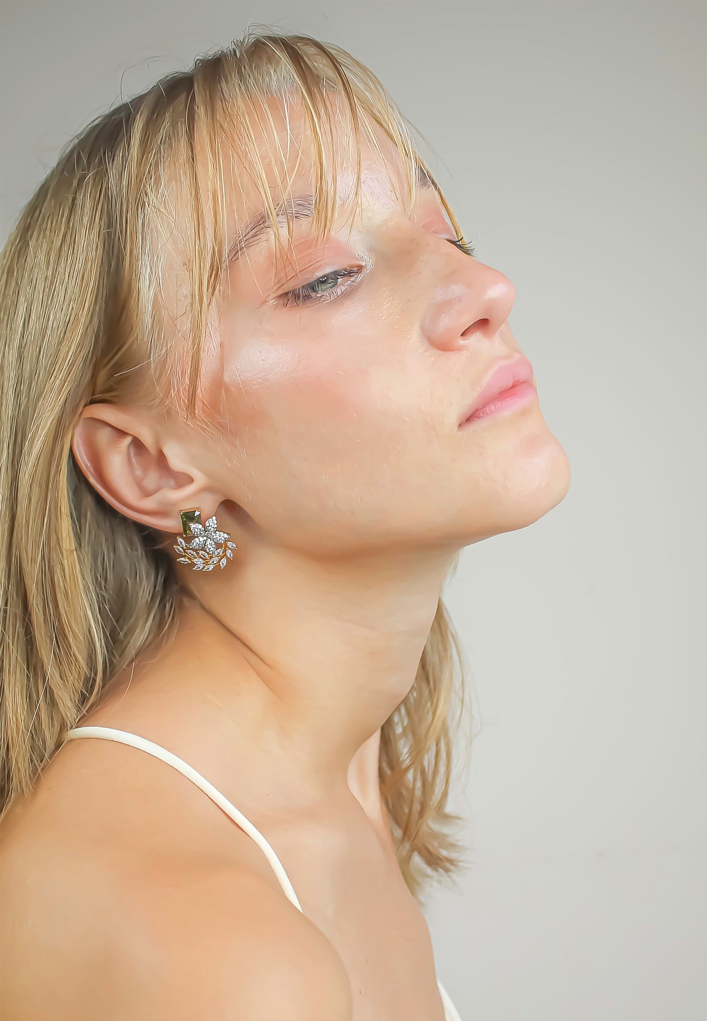 Fresco, colorido y ricamente gráfico, este bonito detalle se ha convertido en uno de los pendientes de la casa. Con color brillante y cristales blancos. Este accesorio, que aporta un toque brillante a su apariencia, evoca la deslumbrante atmósfera de las lujosas fiestas de los años 80 celebradas en la Bombay colonial.
