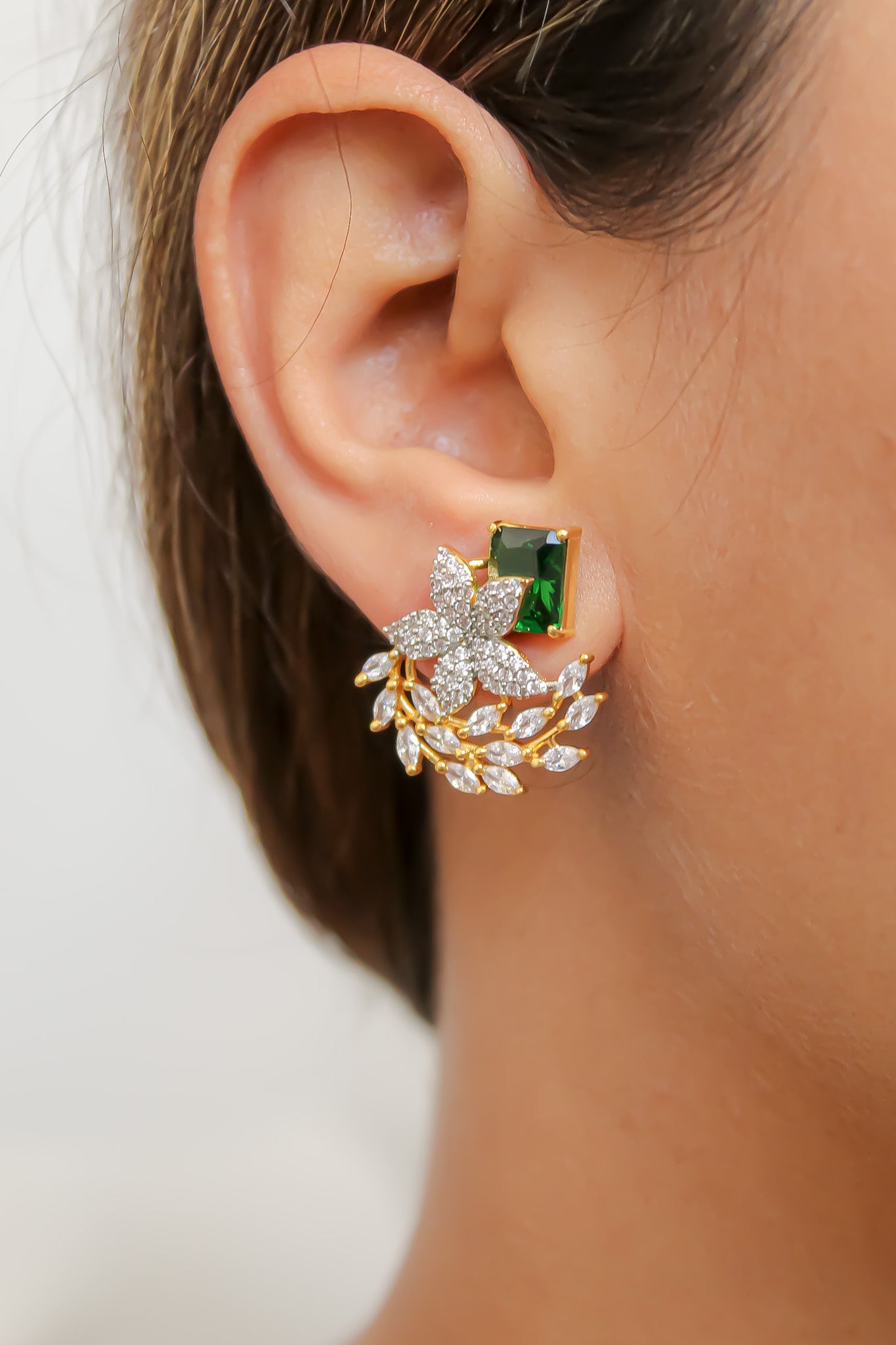 Bañado en oro con circonita y cristal | 3gr (simple) | Longitud 2,2 cm | Ancho 2,2 cm