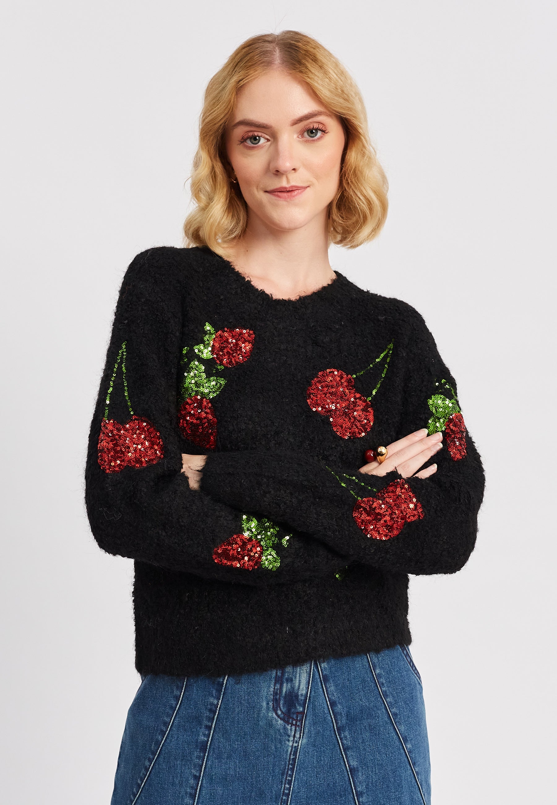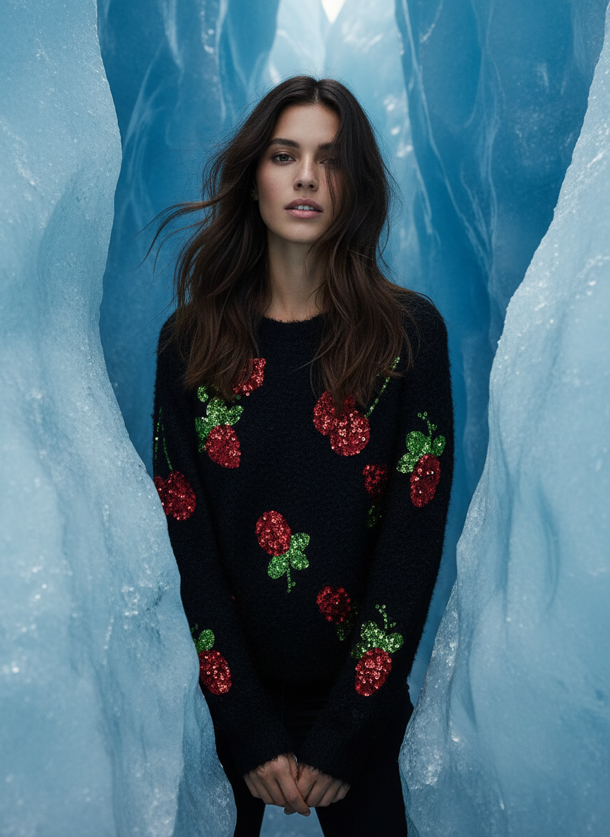 El suéter Ursula está elaborado con maestría con lana cálida, ideal para el invierno, y materiales reciclados sostenibles. Su exclusivo adorno de lentejuelas añade un toque de glamour y te mantiene abrigada. Perfecto para quienes buscan la moda y se preocupan por el medio ambiente.