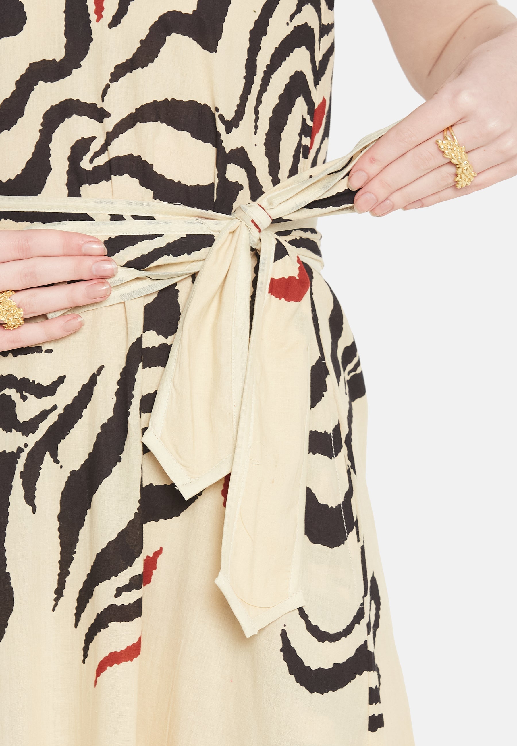 Una característica destacada de Viola Serena son sus bolsillos cuidadosamente diseñados, que ofrecen una combinación de comodidad y estilo, perfectamente integrados en su elegante silueta. La adición de un cinturón ajustable mejora la versatilidad del vestido, permitiendo un ajuste personalizado que acentúa la cintura y complementa los contornos naturales del cuerpo. Confeccionado con tela de primera calidad, el vestido promete comodidad y longevidad. Su naturaleza versátil lo hace perfecto para diversas ocasiones, pasando sin problemas del día a la noche. El vestido Viola Serena de Be-Sunset, una creación de Nidhi, personifica la elegancia moderna con un toque práctico.