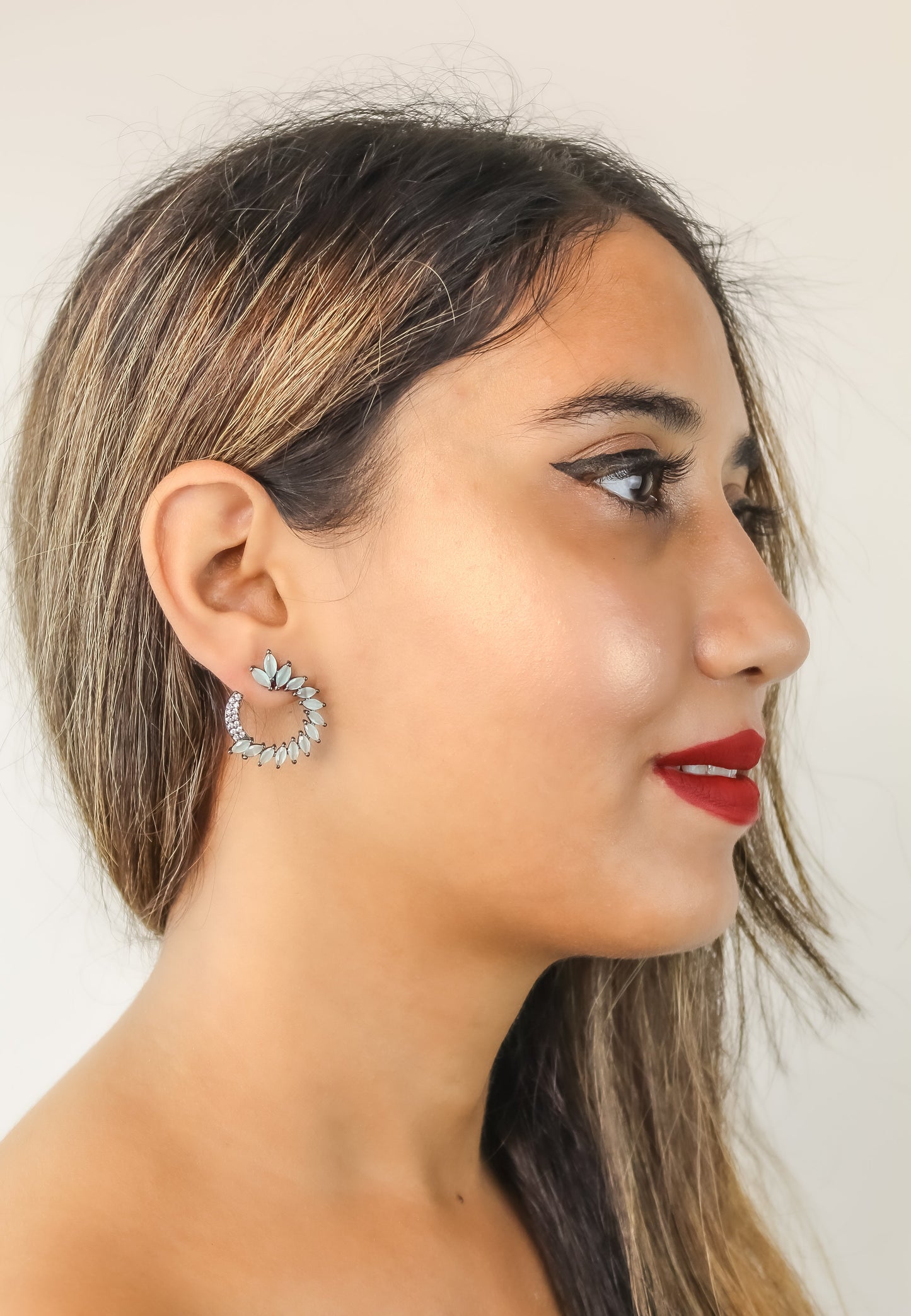 Fresh, full of color, and stylish at a time, the viper has become a Bombay Sunset sign of identity. With sparkling color and white zirconia on a white bronze base. Adding a vivid accent to the looks, the accessory evokes the most recent European parties held in New Delhi. Fresh, colorful, and richly graphic, these outstanding set has become an icon of the house earrings.