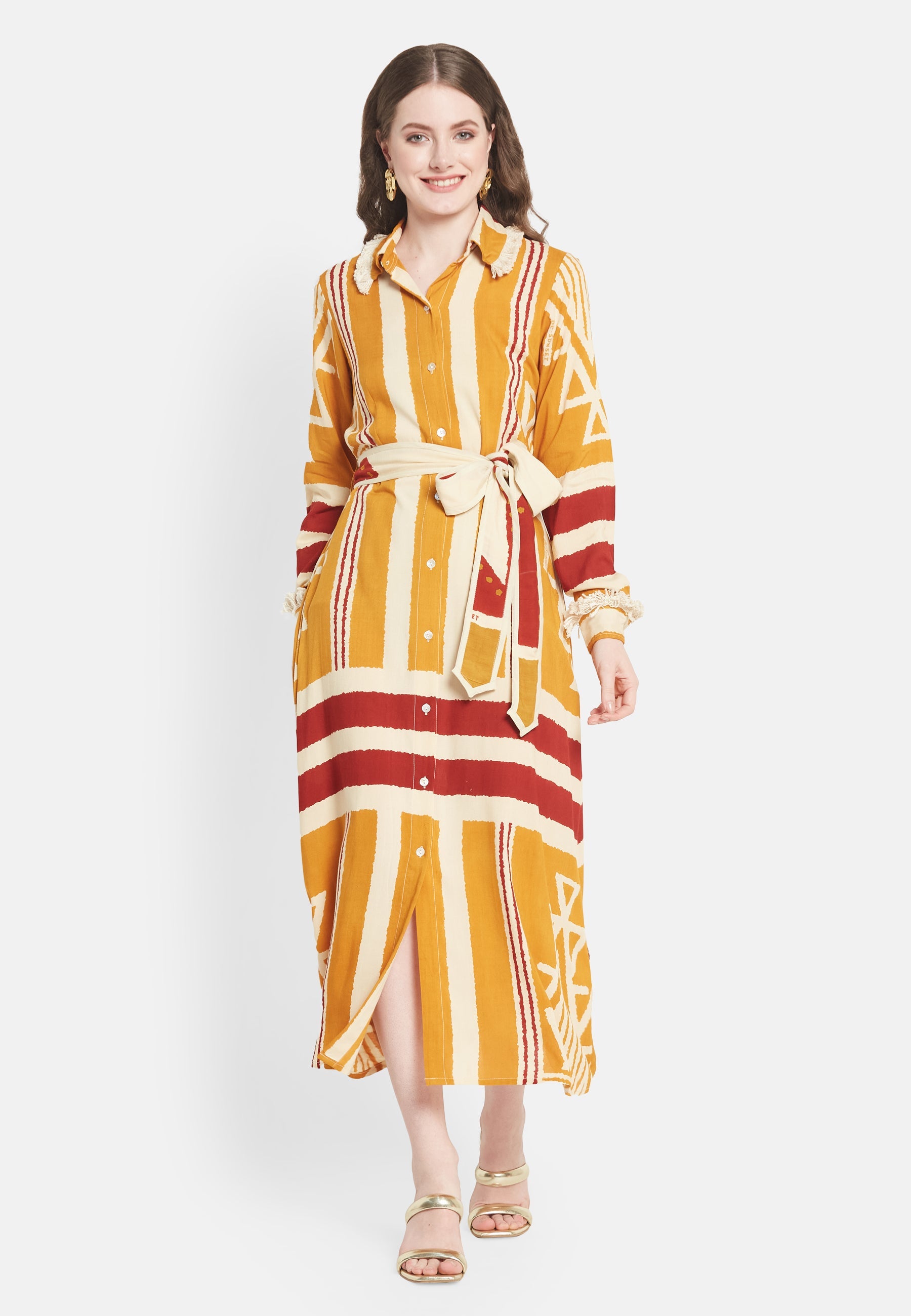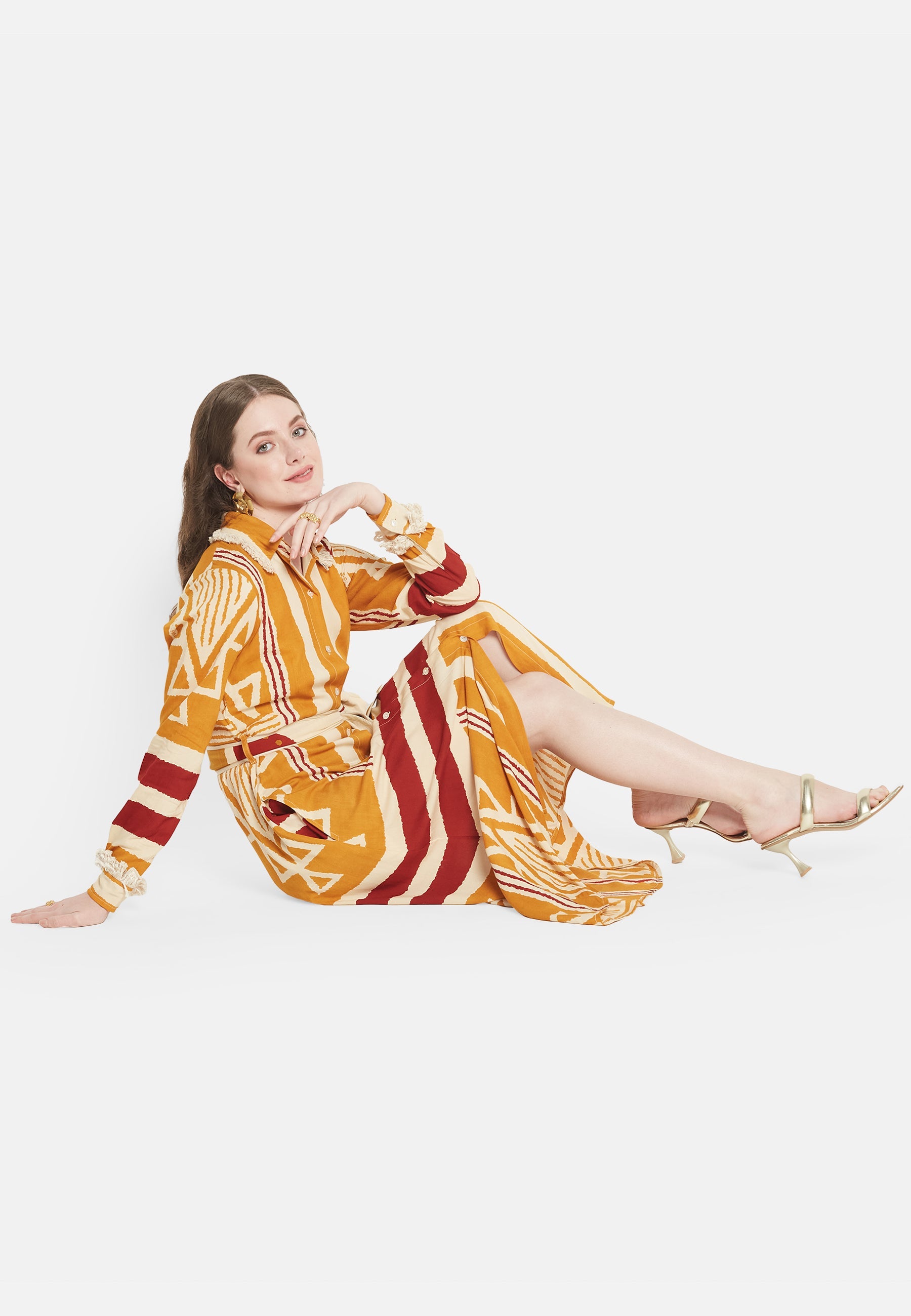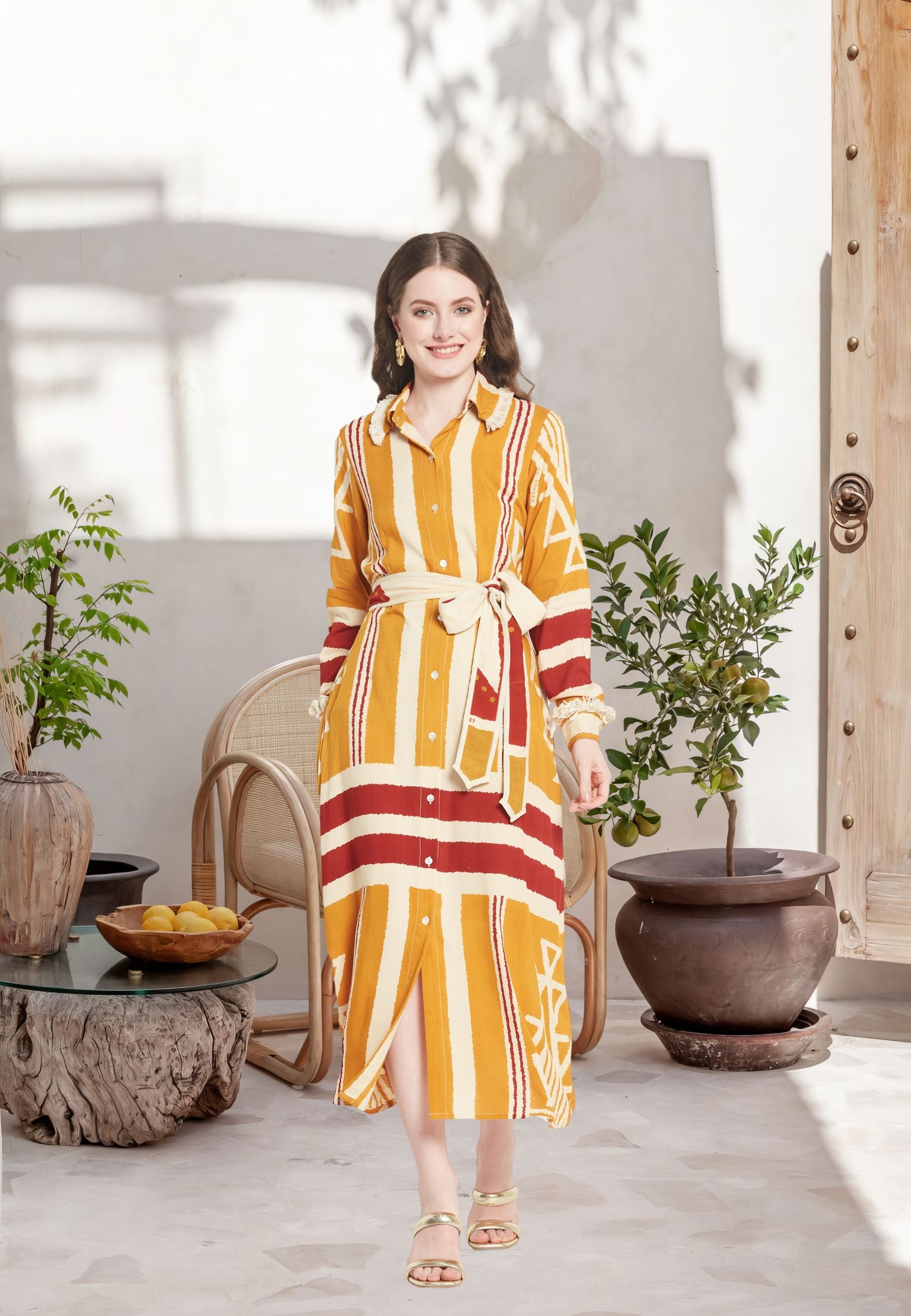Presentiamo il "Brio Shirt Dress", un design esclusivo della collezione Be-Sunset, immaginato e portato in vita da Nidhi. Questo vestito, fedele al suo nome "Brio", che significa vivacità, è un capolavoro di stampe uniche e design accurato. L'abito è realizzato per essere l'emblema della versatilità, rendendolo la scelta ideale per ogni occasione.