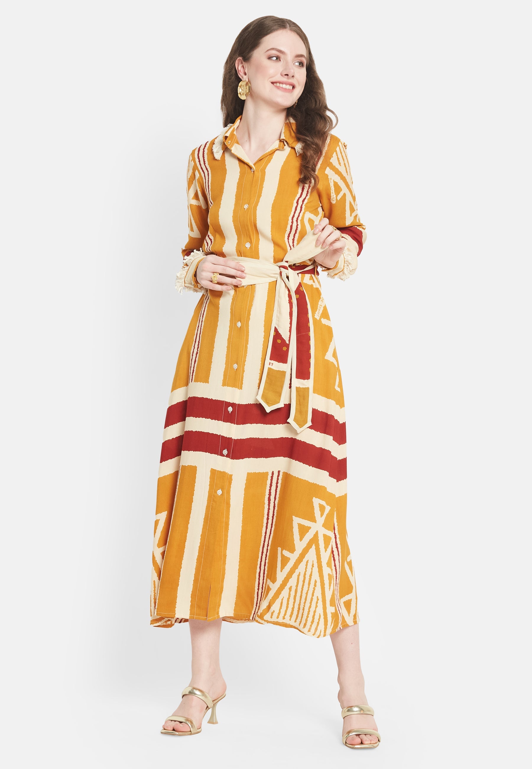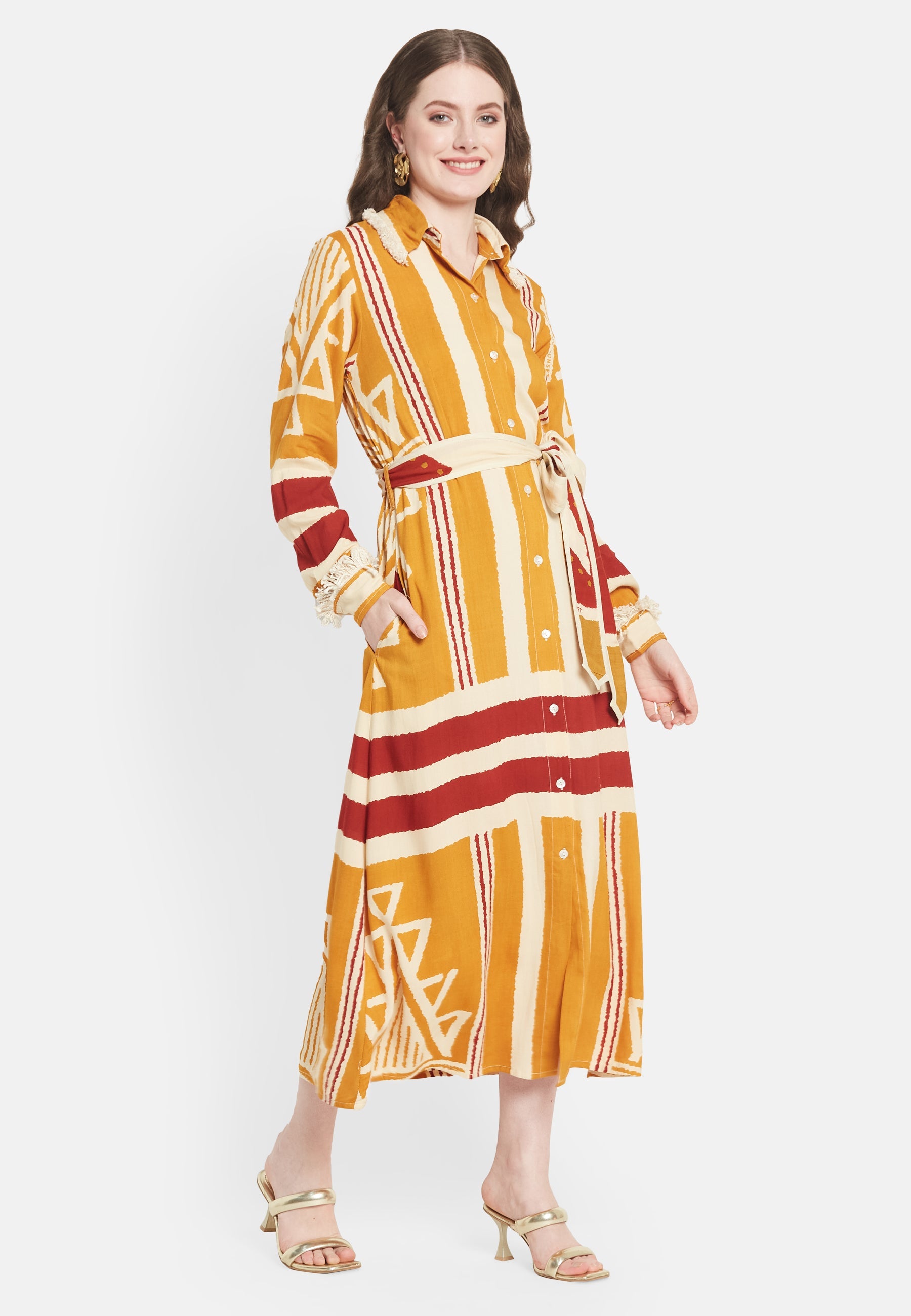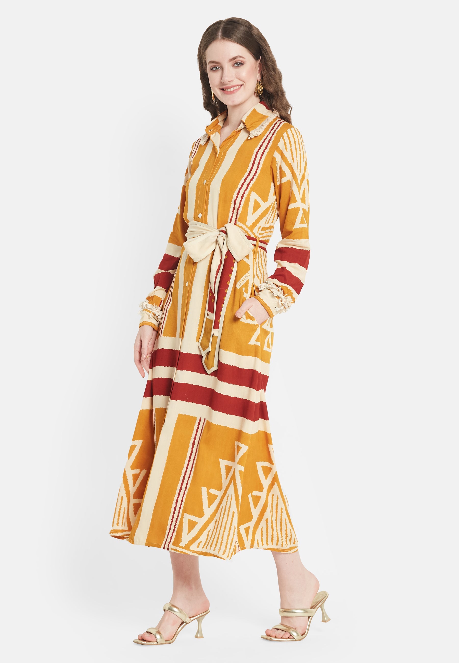 Presentiamo il "Brio Shirt Dress", un design esclusivo della collezione Be-Sunset, immaginato e portato in vita da Nidhi. Questo vestito, fedele al suo nome "Brio", che significa vivacità, è un capolavoro di stampe uniche e design accurato. L'abito è realizzato per essere l'emblema della versatilità, rendendolo la scelta ideale per ogni occasione.