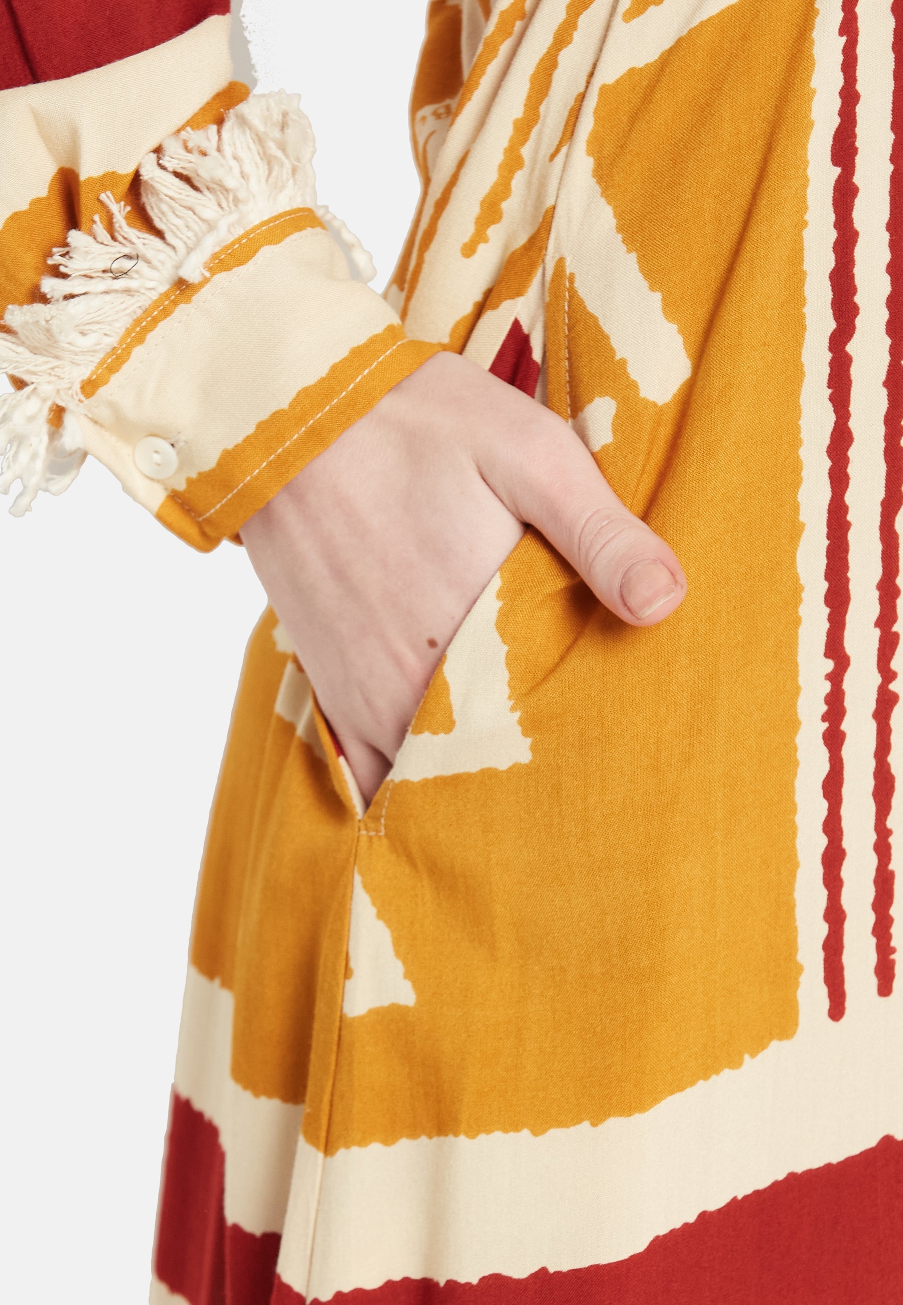 Caratterizzato da una stampa unica nel suo genere che risalta in qualsiasi ambiente, l'abito chemisier Brio è fatto su misura per fare una dichiarazione. La praticità incontra lo stile con le sue comode tasche, unendo funzionalità e moda. L'aggiunta di cinture regolabili consente una vestibilità personalizzabile, garantendo sia comfort che una silhouette lusinghiera.