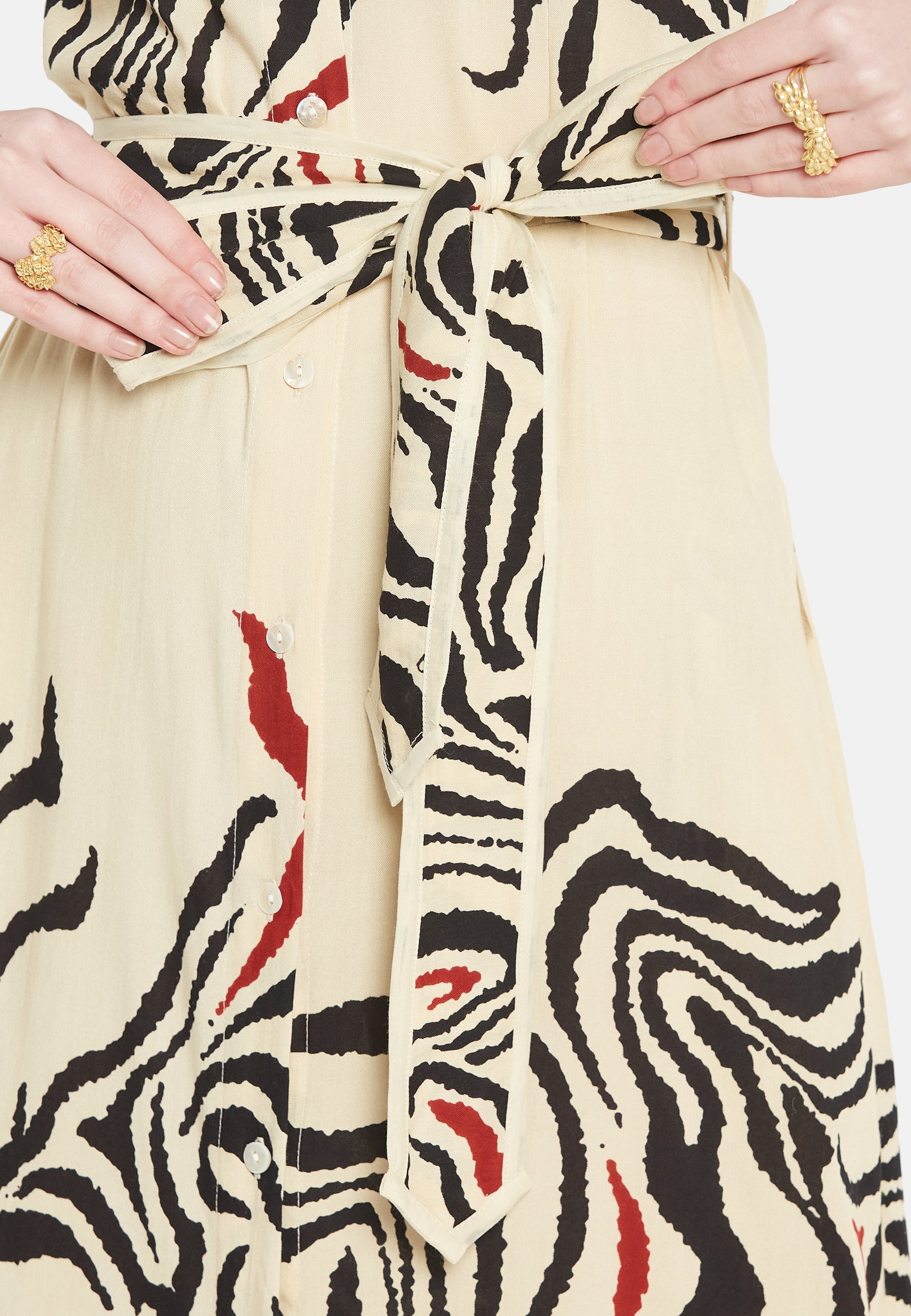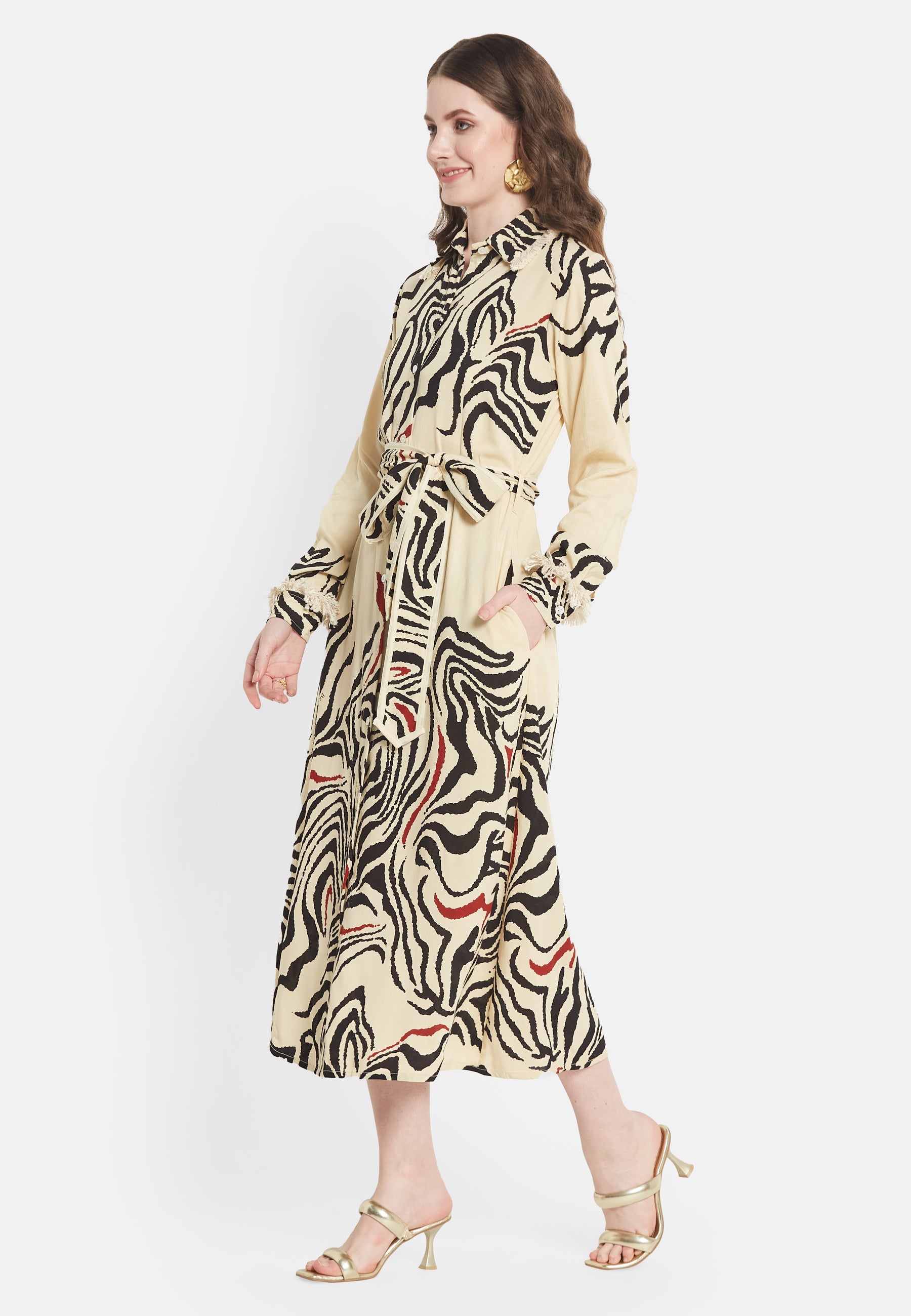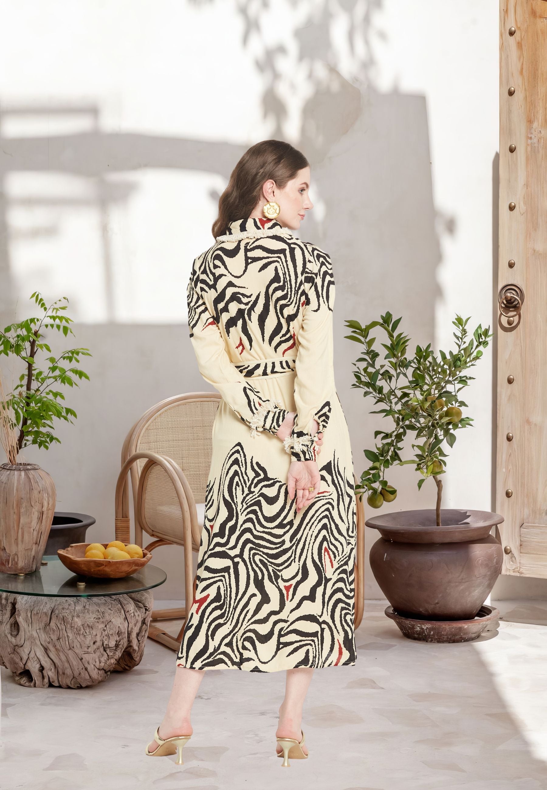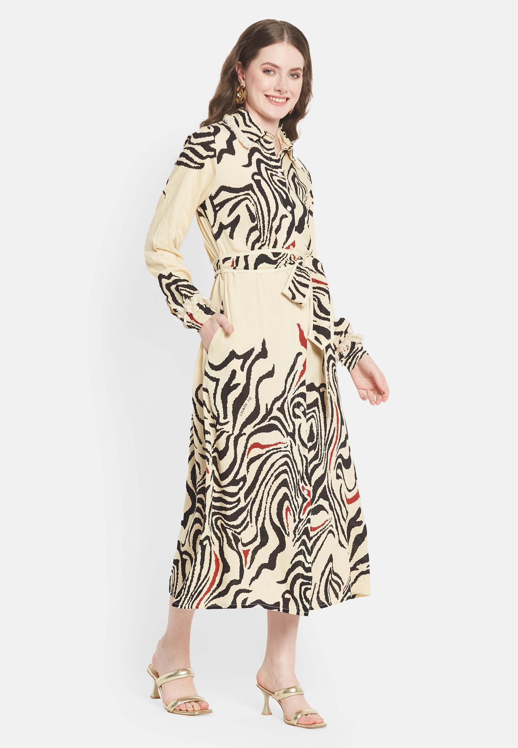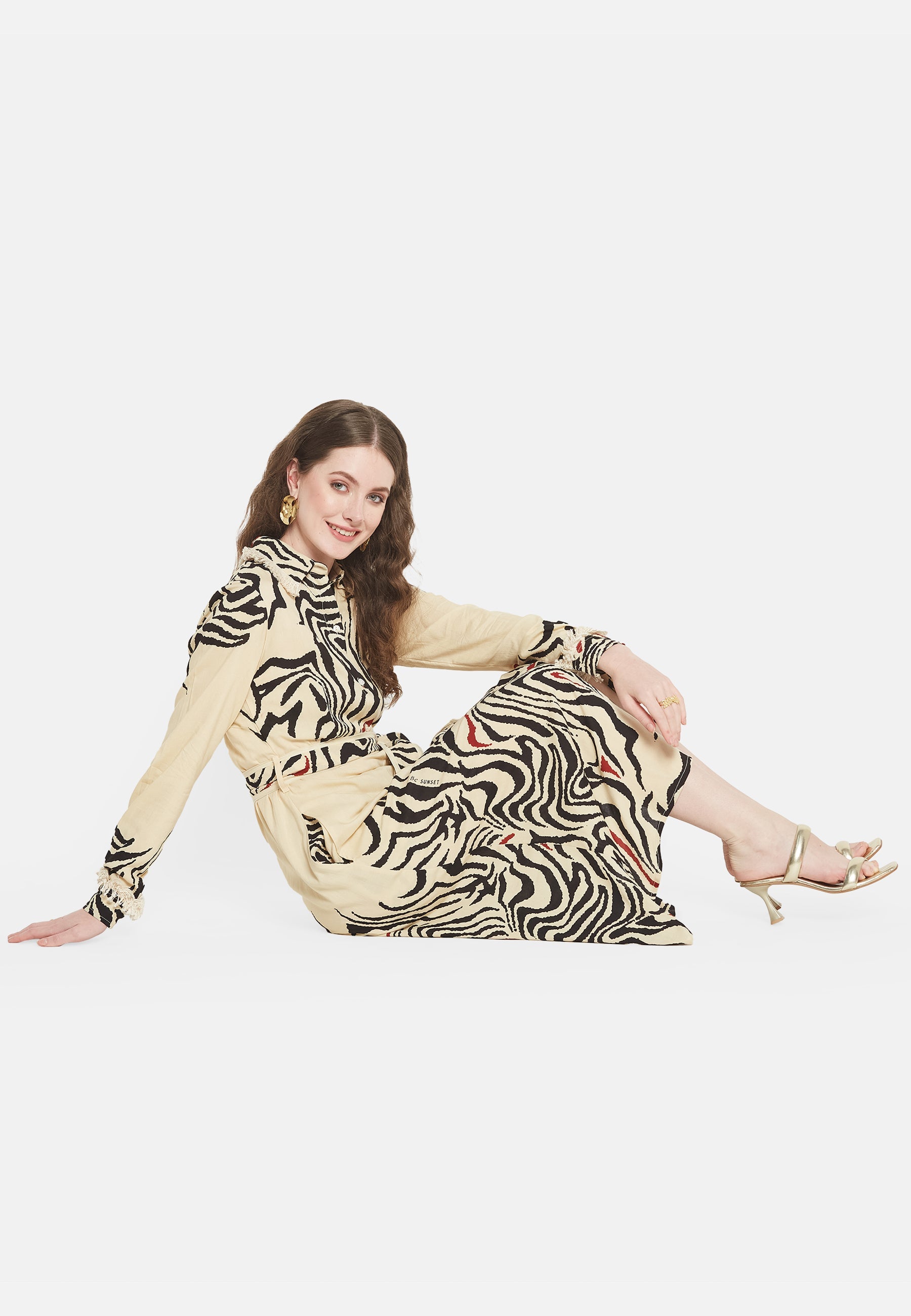 "Il 'Brio Shirt Dress' di Be-Sunset, realizzato da Nidhi, è una celebrazione dello stile vibrante e della funzionalità. Riflettendo la vitalità di 'Brio', questo vestito presenta una stampa accattivante, adatta ad ogni occasione. Il suo design accurato include pratiche tasche e cinture regolabili, garantendo comfort e vestibilità su misura.