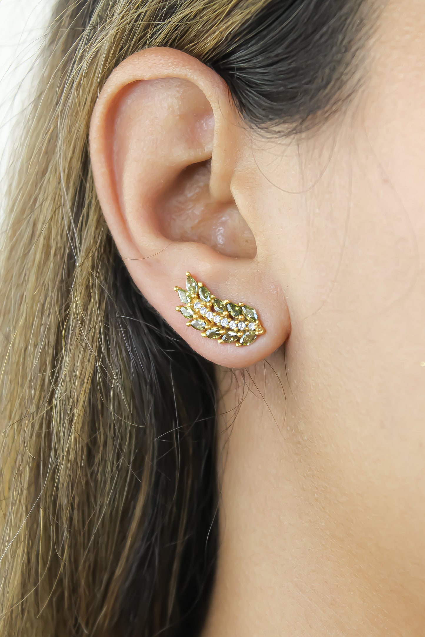 Gli orecchini Cruise Wings sono placcati in oro 18 carati impreziositi da pietre di zirconia. Queste pietre sono pietre di coraggio e forza. Indossarlo porta fiducia in se stessi . Questo orecchino è perfetto da indossare dal giorno alla notte.