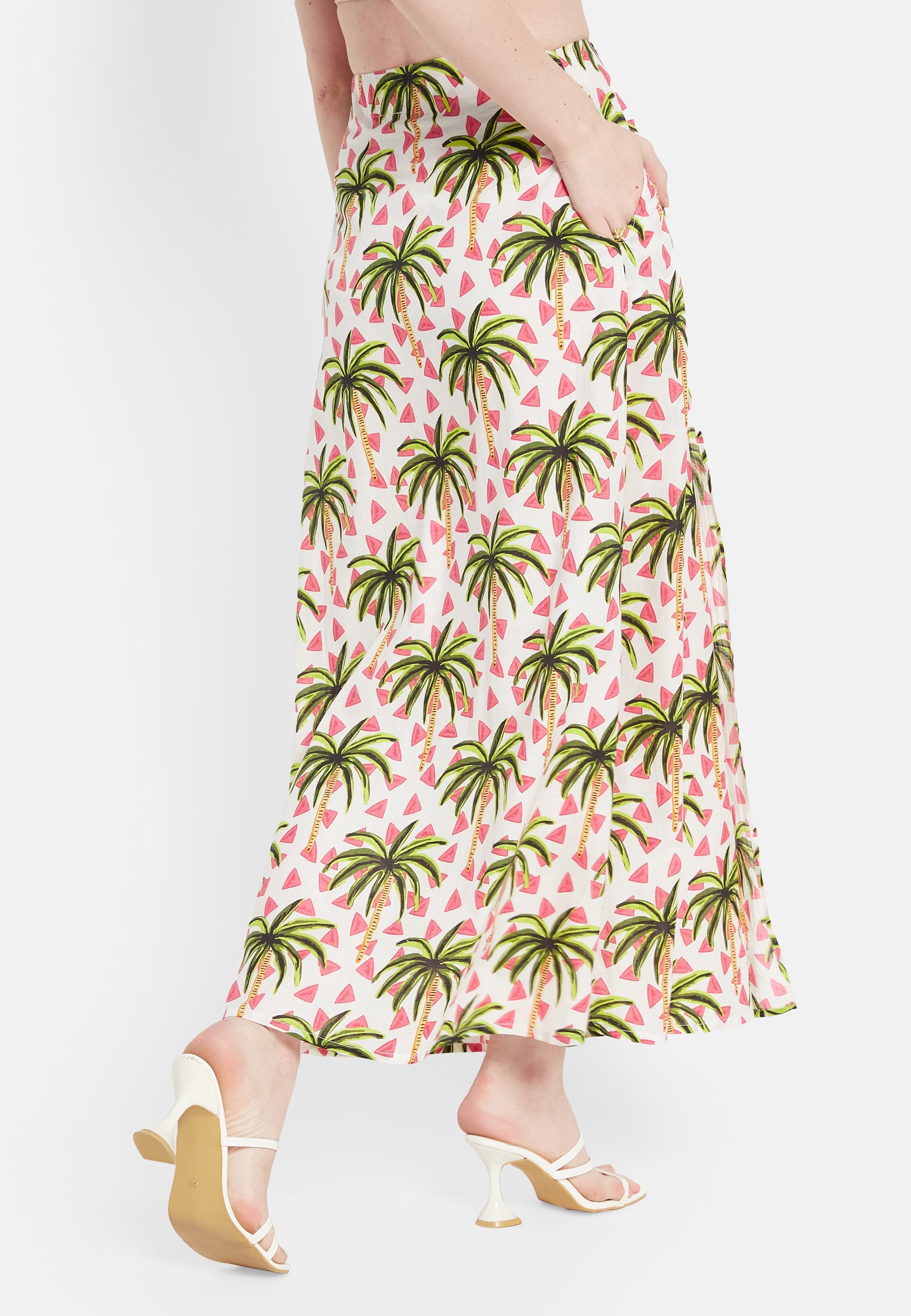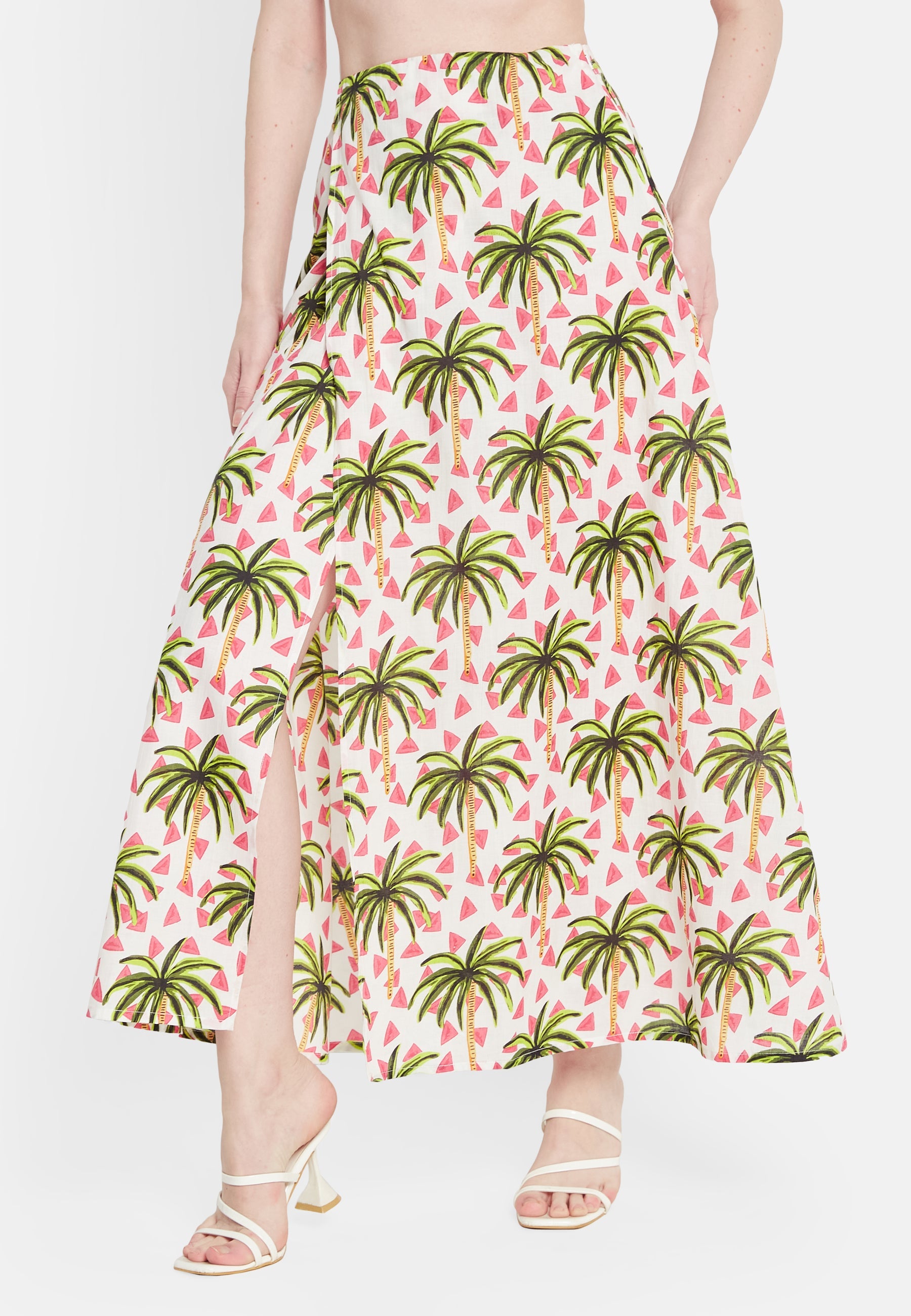 Il design della gonna presenta una silhouette fluida e ariosa che si muove con grazia, evocando la dolce carezza della brezza oceanica. Il suo taglio versatile lo rende perfetto per una varietà di occasioni, dalle uscite casual agli eventi più formali. Le tonalità tenui si ispirano ai colori tenui del crepuscolo, aggiungendo un tocco di raffinatezza. Questo capo è un'aggiunta senza tempo a qualsiasi guardaroba, fondendo lo stile classico con lo spirito rilassato della vita balneare.
