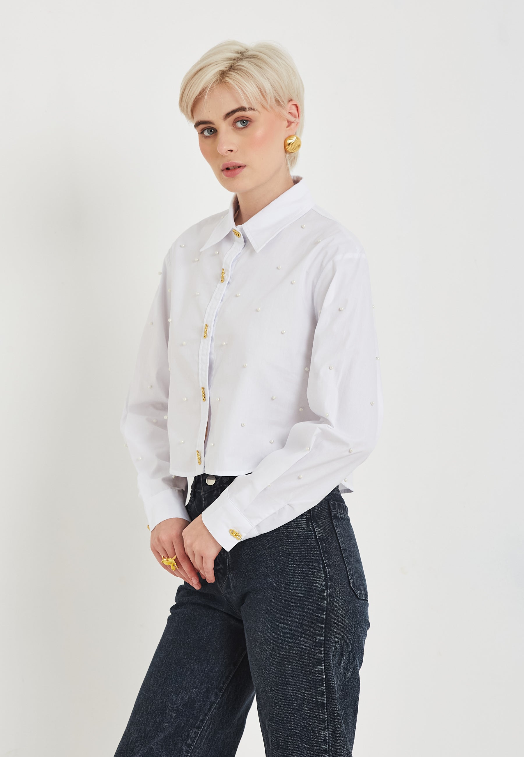La camicia Marivi è l'aggiunta perfetta al tuo guardaroba da ufficio. Realizzata in un candido tessuto bianco, questa camicia è impreziosita da delicate decorazioni in perle. Che si tratti di una riunione di lavoro o di una presentazione, questa camicia trasuda professionalità e raffinatezza. Rinnova il tuo abbigliamento da lavoro con la camicia Marivi.