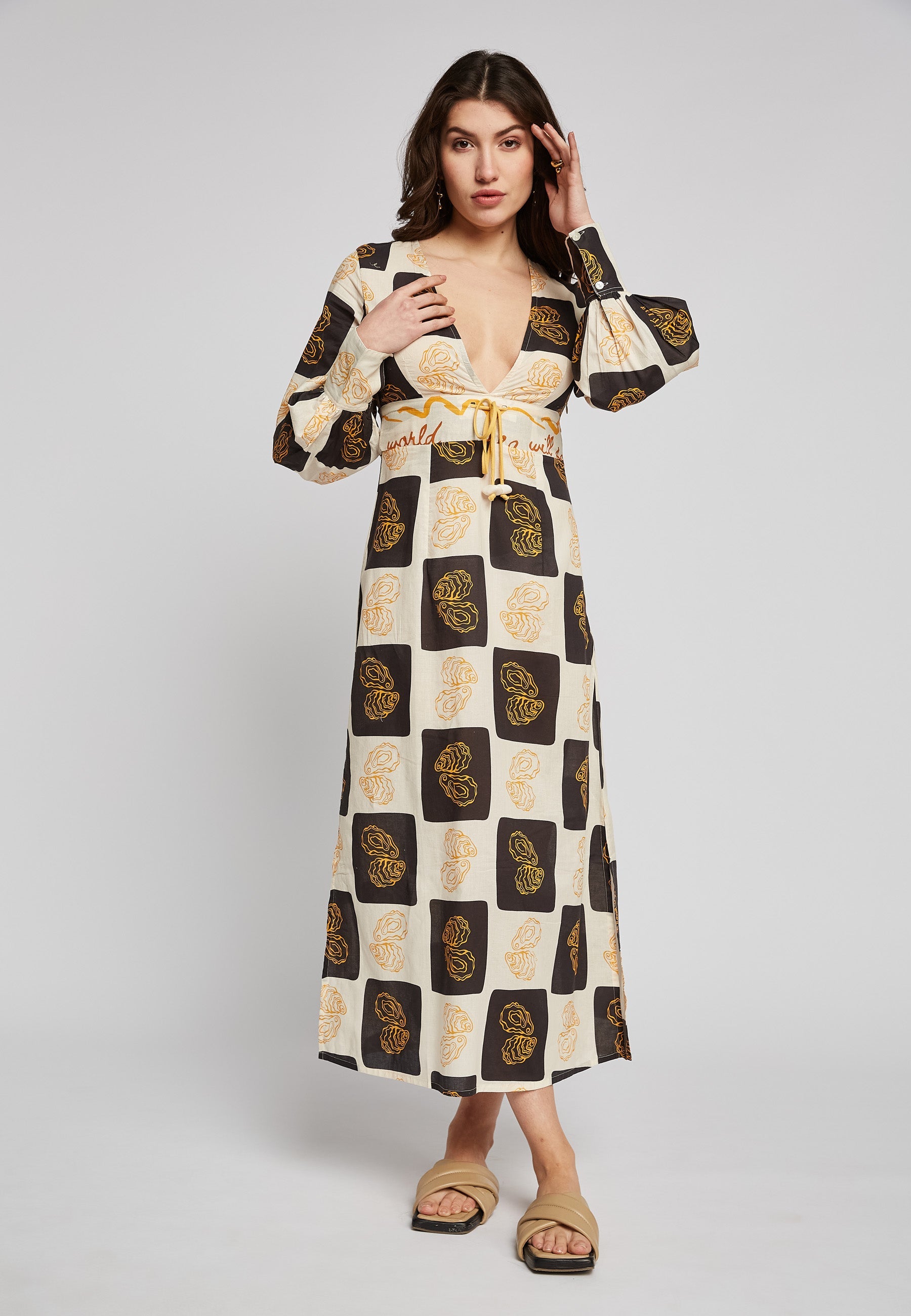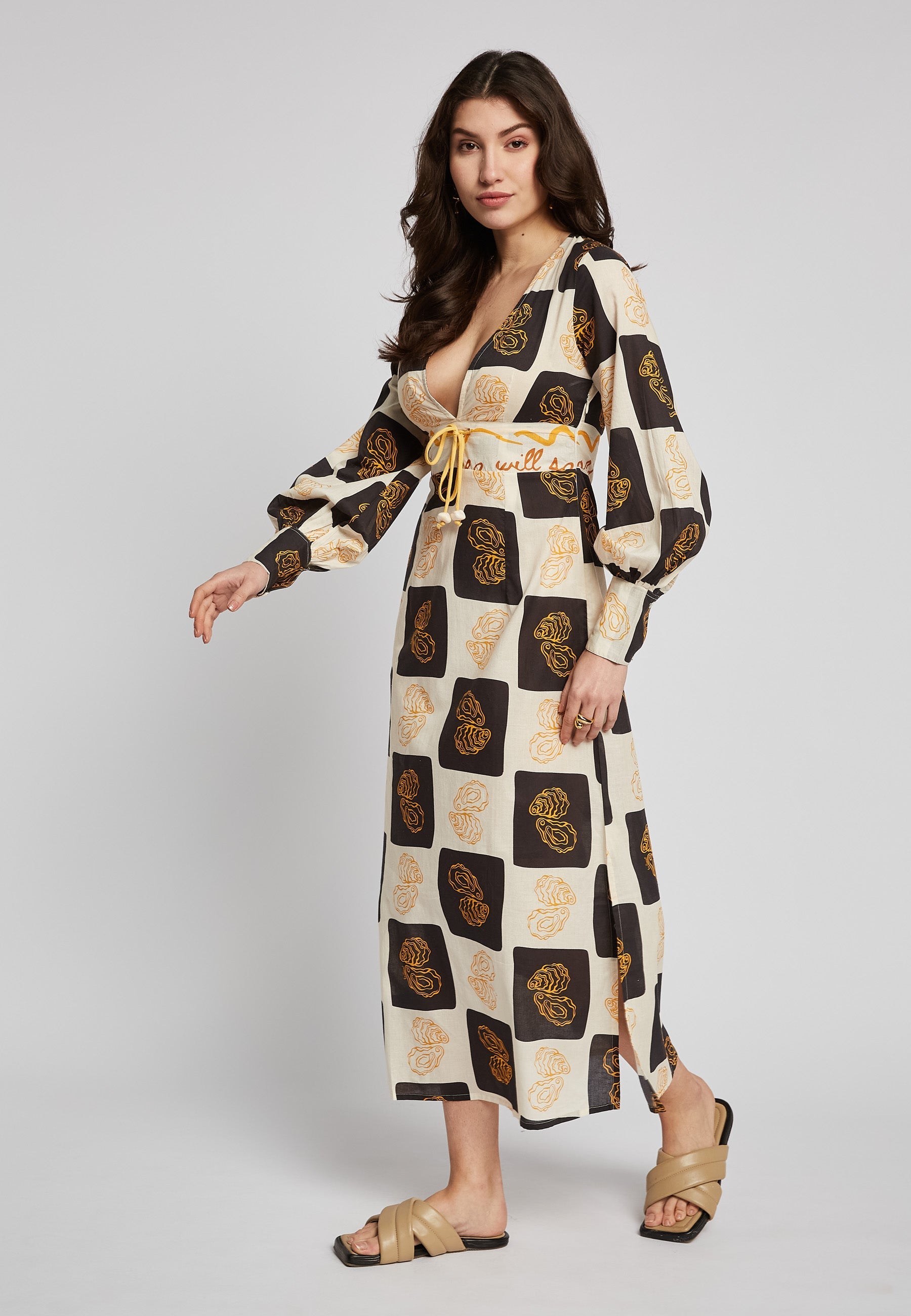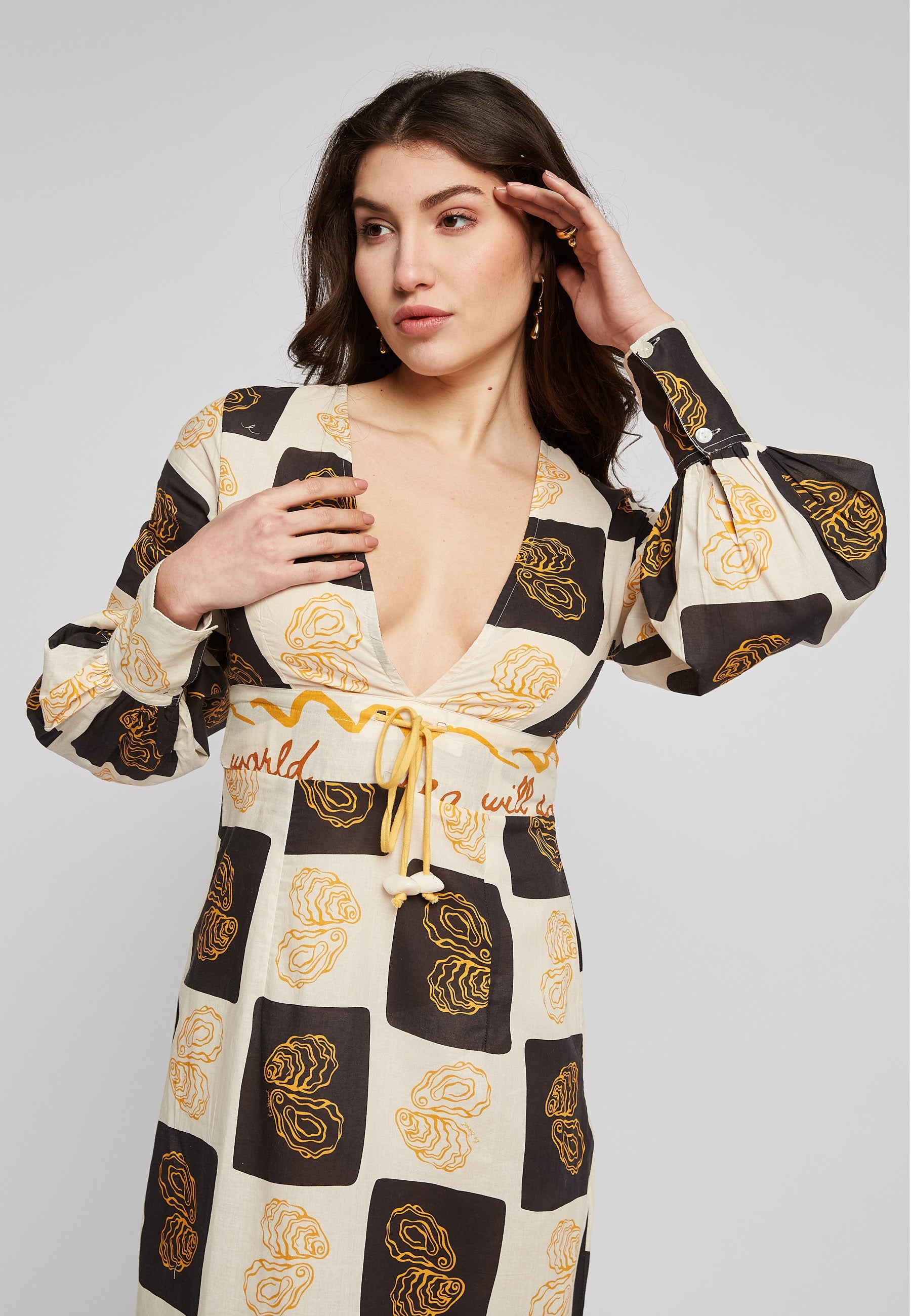 Aggiorna il tuo look estivo con il nostro Mistral Oyster Dress. Realizzato in cotone di qualità premium, questo vestito presenta una stampa esclusiva a ostriche e comode maniche lunghe. Rimani alla moda e comoda per tutta la stagione.