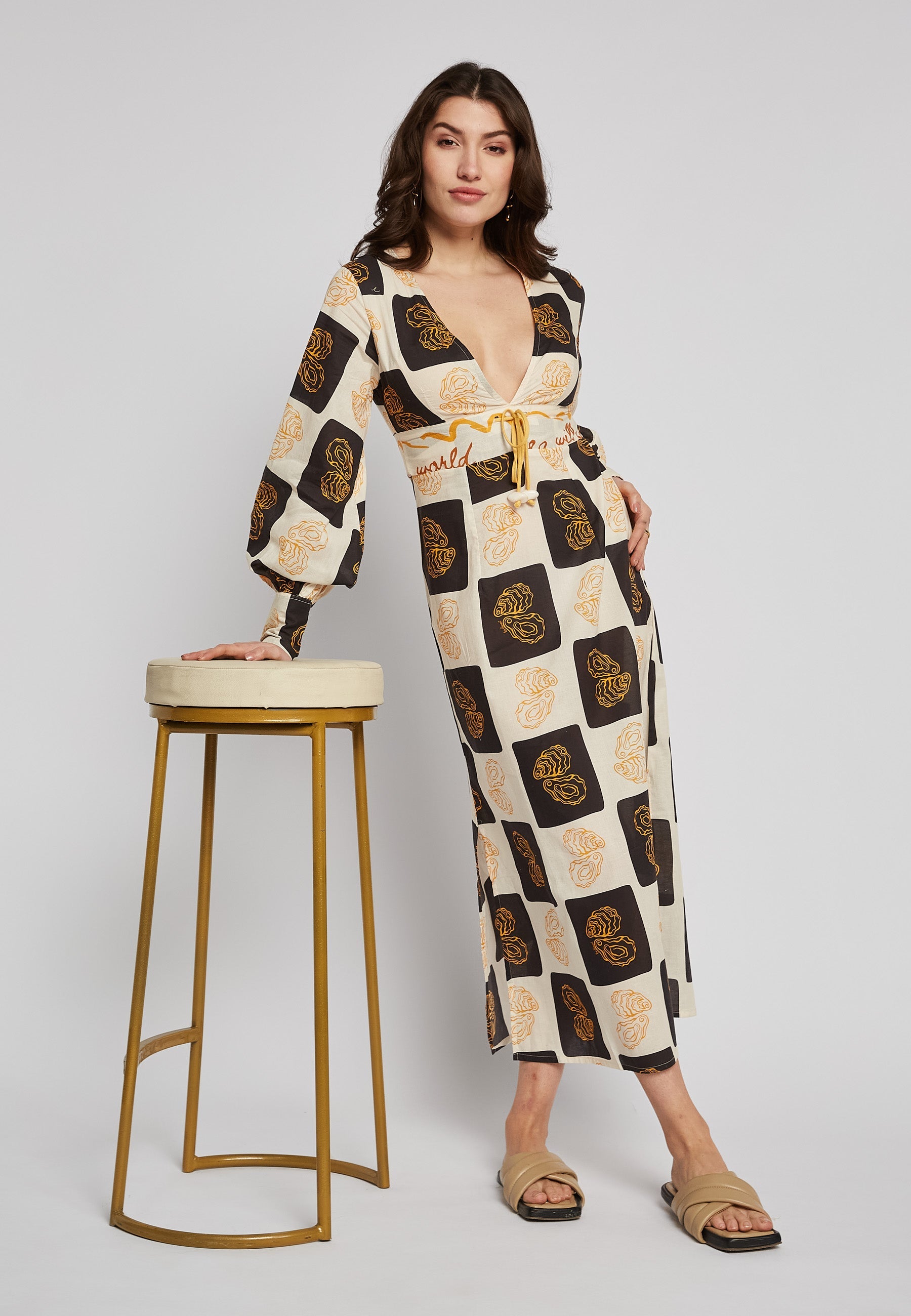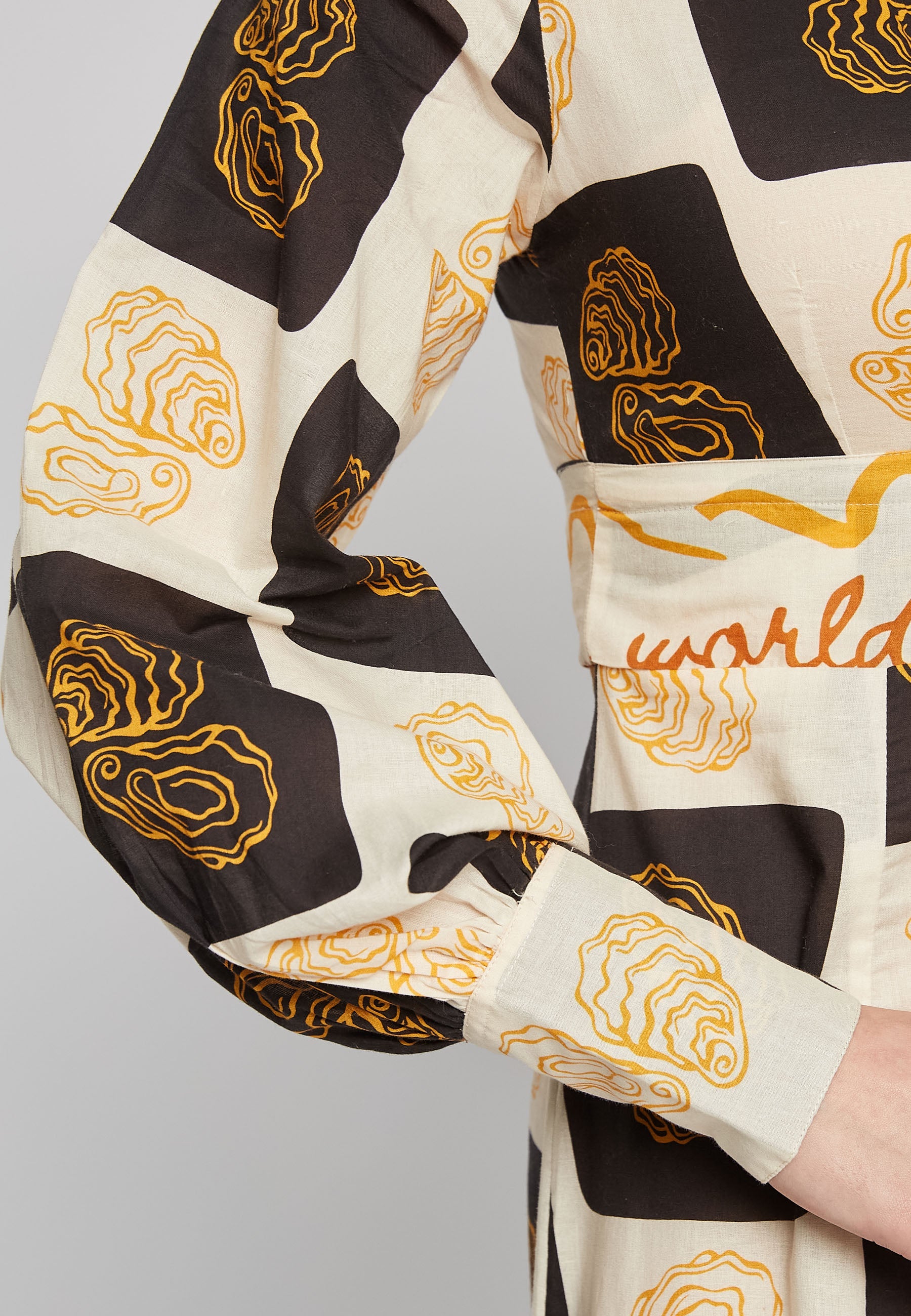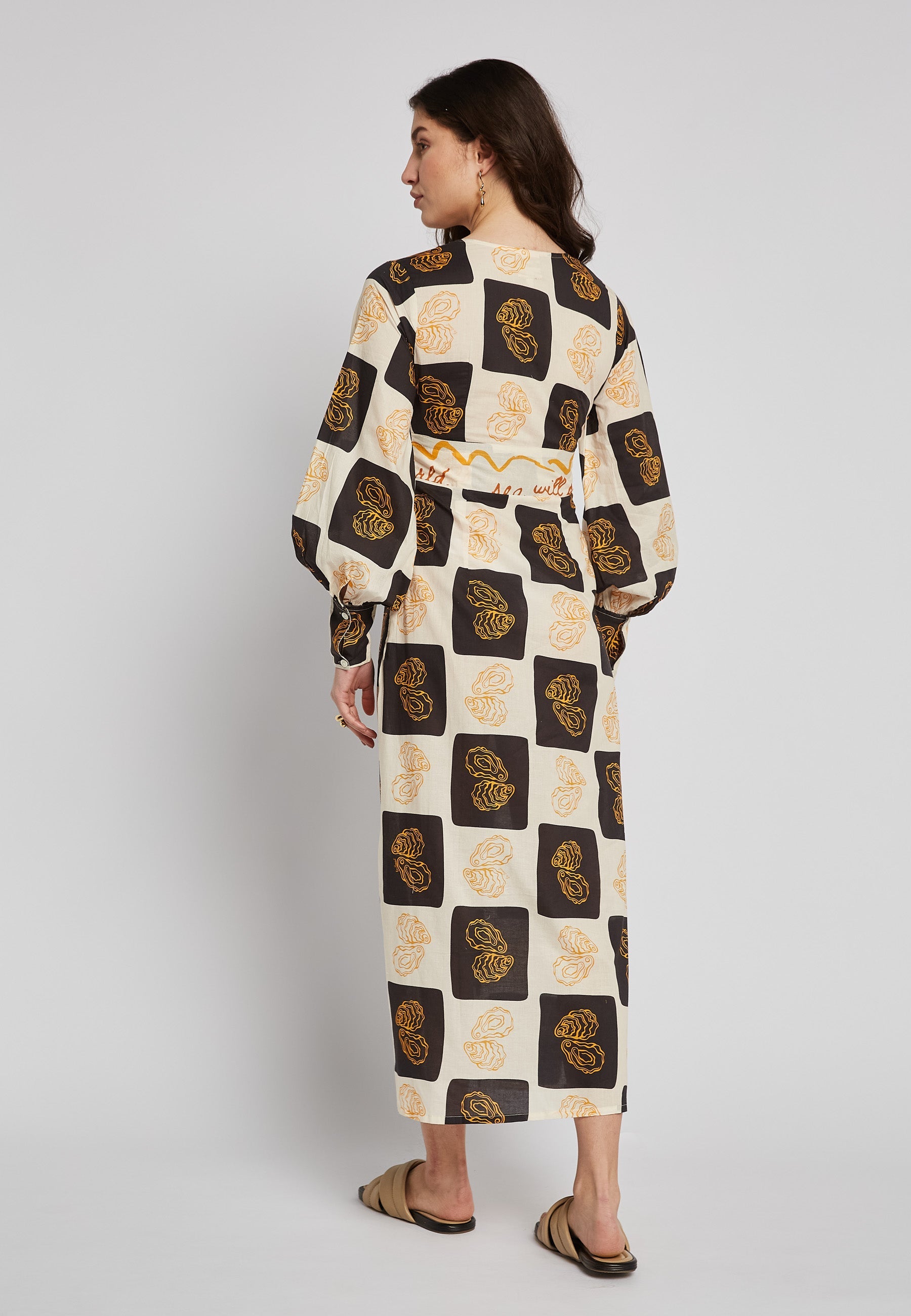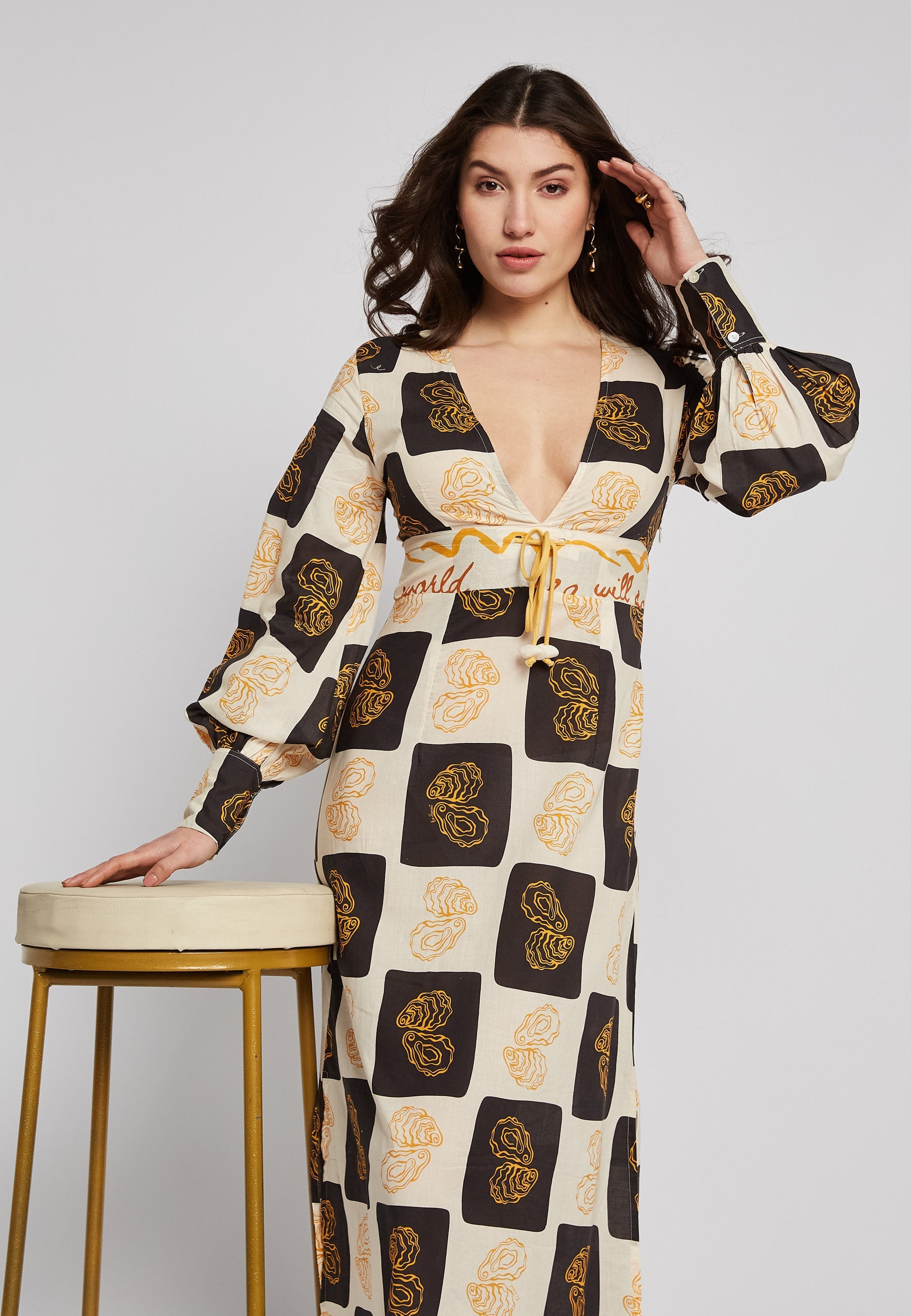 Aggiorna il tuo look estivo con il nostro Mistral Oyster Dress. Realizzato in cotone di qualità premium, questo vestito presenta una stampa esclusiva a ostriche e comode maniche lunghe. Rimani alla moda e comoda per tutta la stagione.