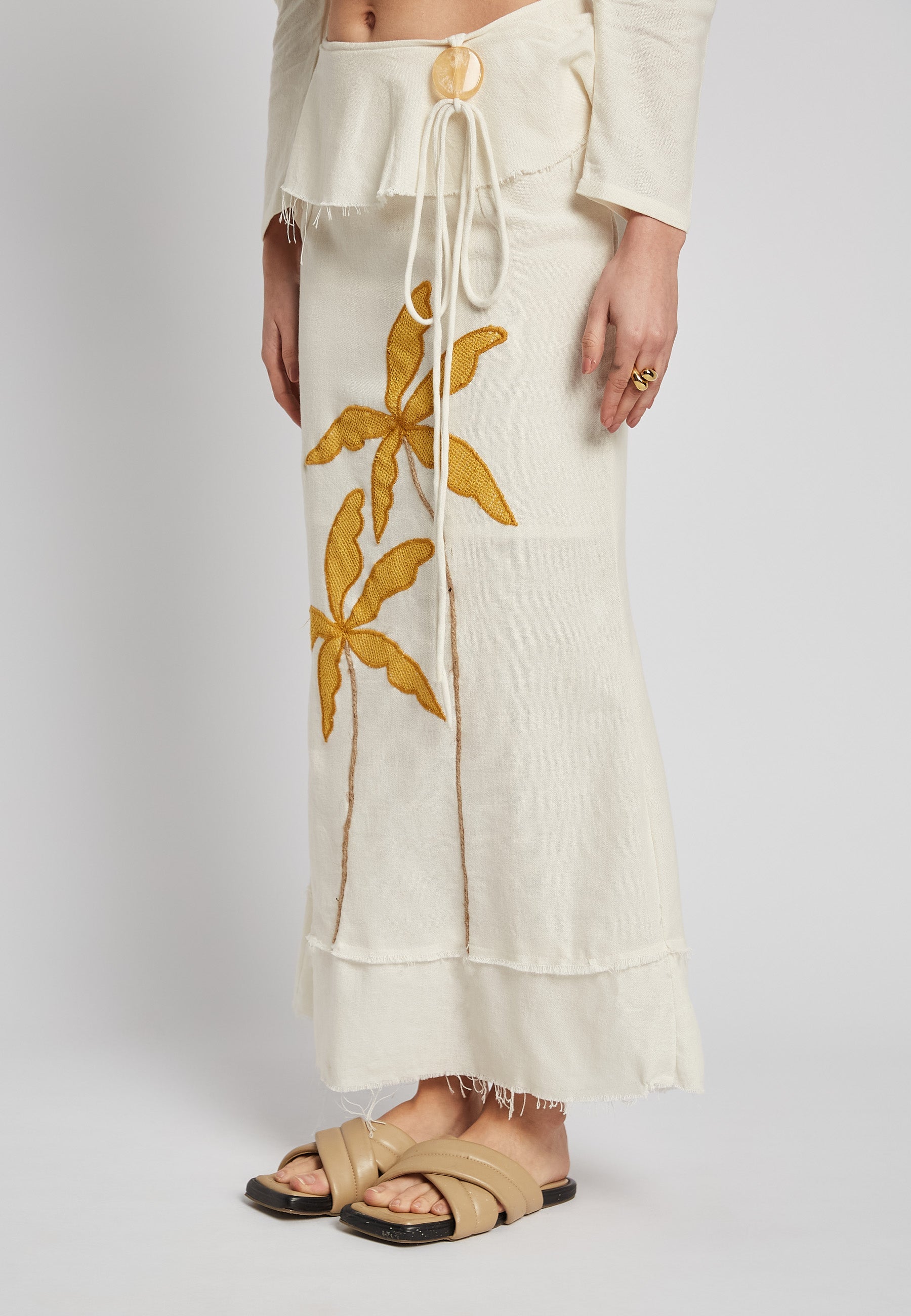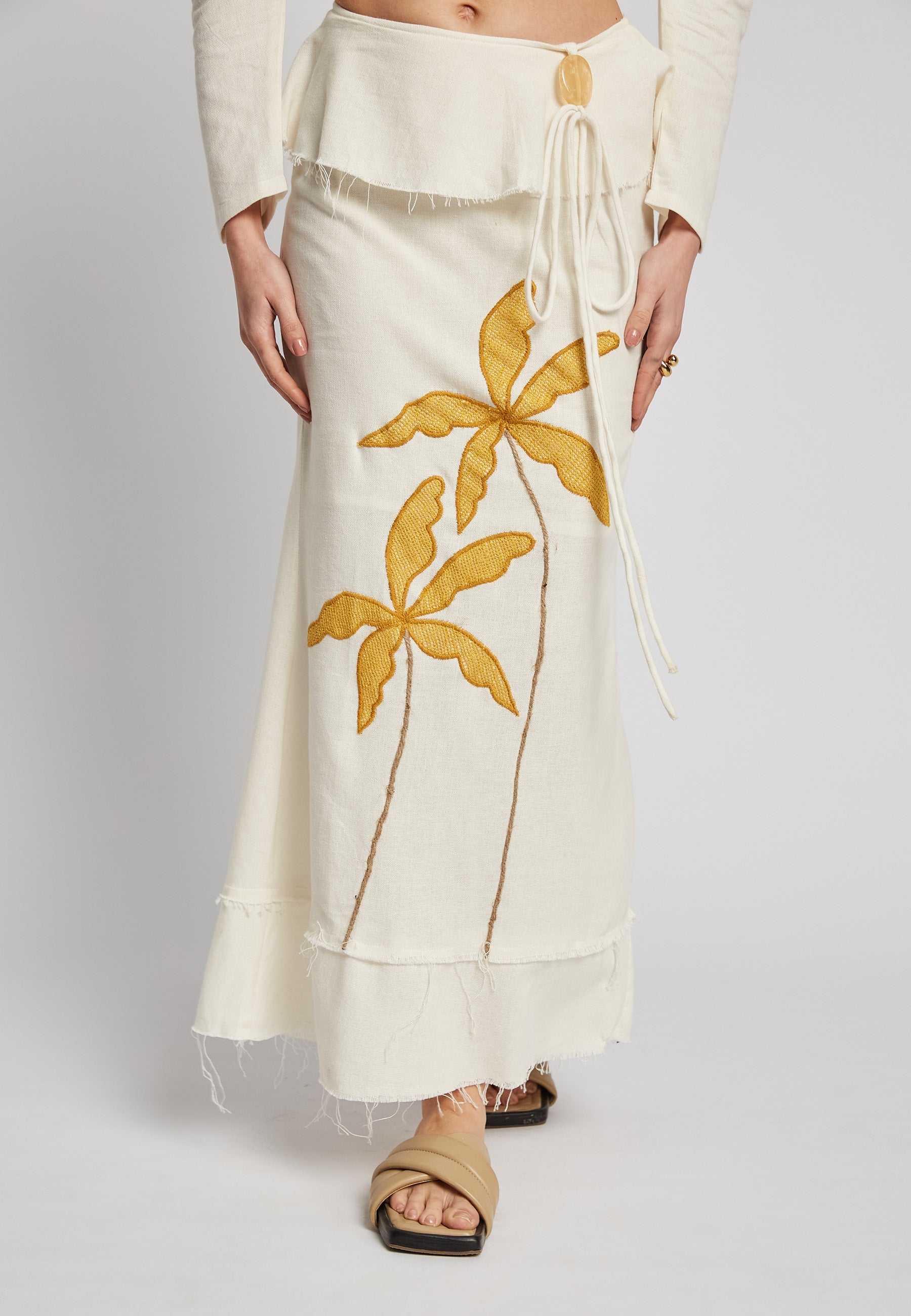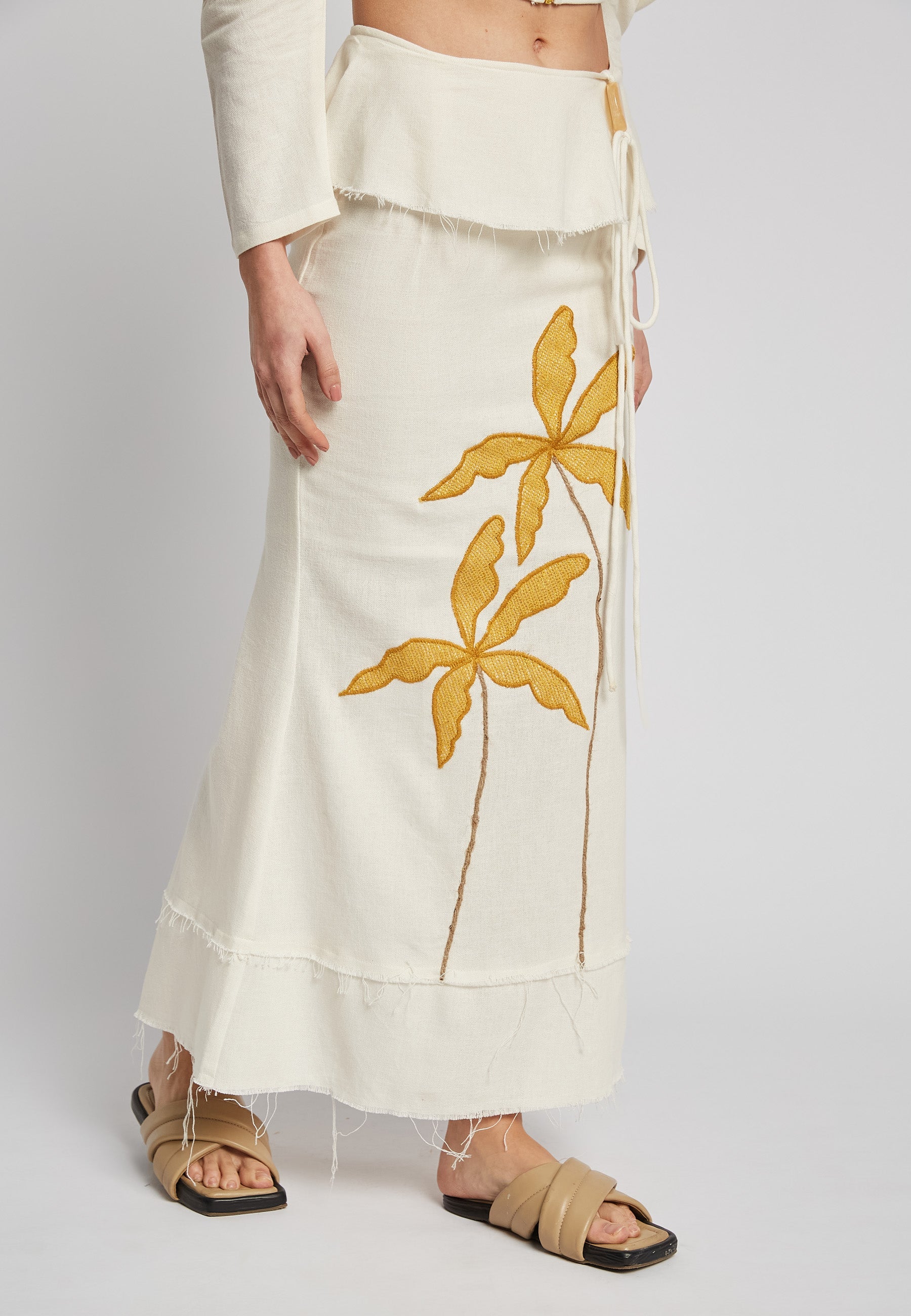 Scopri uno stile estivo senza sforzo con la nostra Surf White Skirt. Realizzata in cotone di prima qualità, questa gonna presenta delicati ricami a forma di palma, perfetti per aggiungere un tocco di fascino tropicale al tuo guardaroba. Resta fresca ed elegante per tutta la stagione con questo capo essenziale.