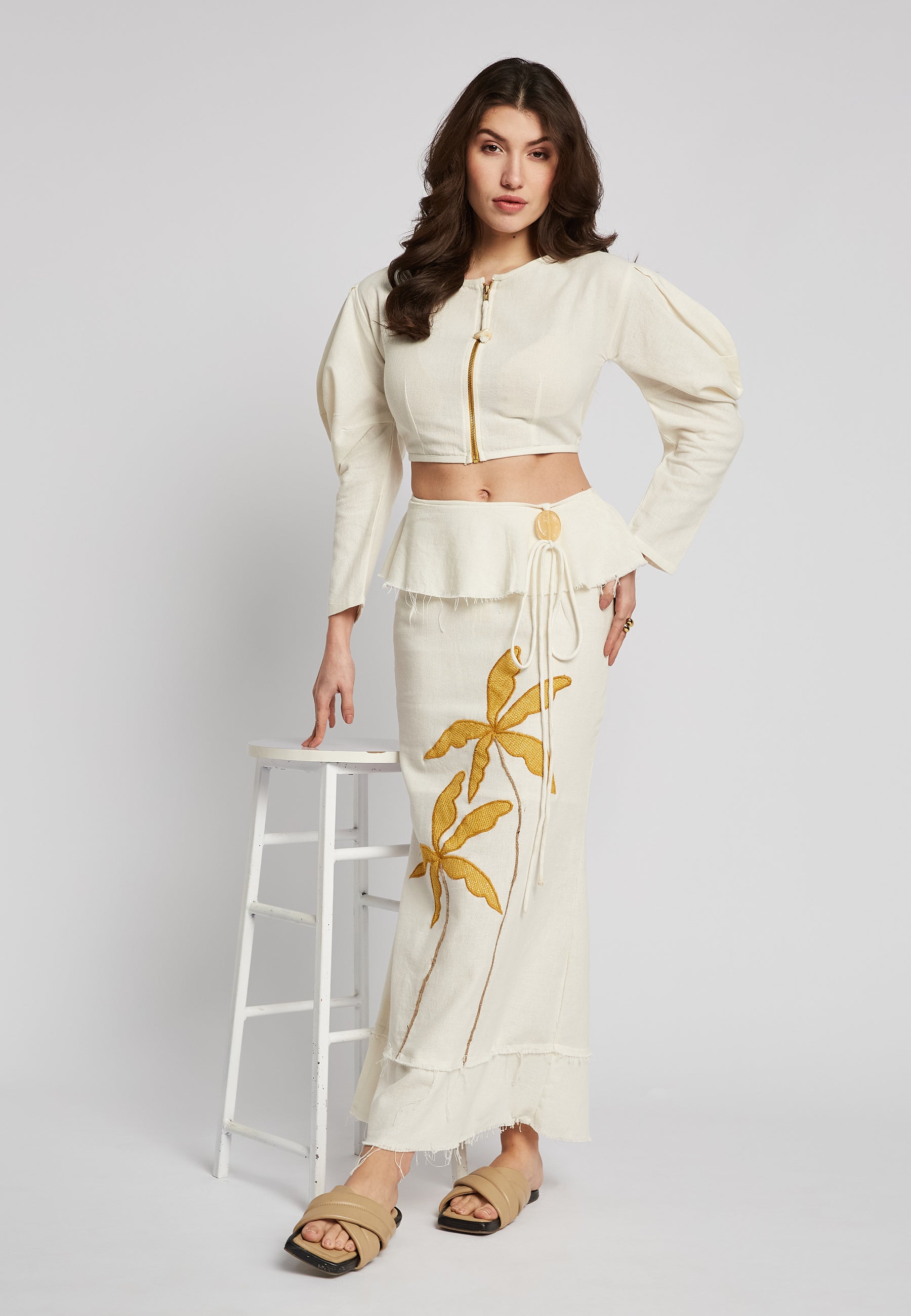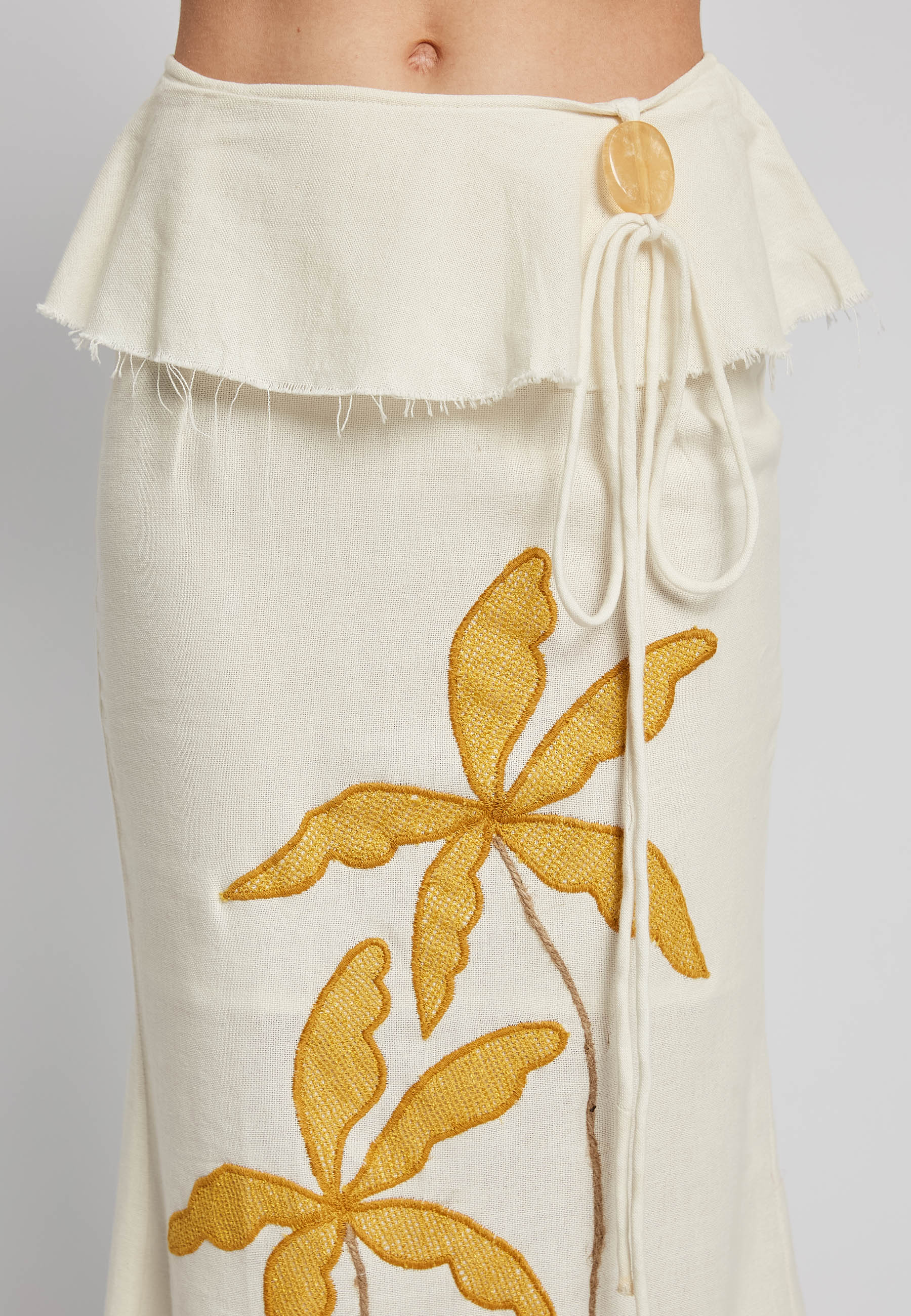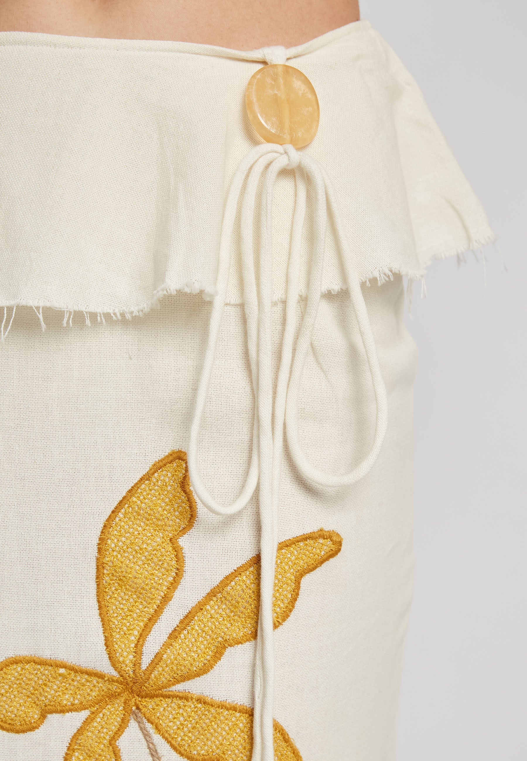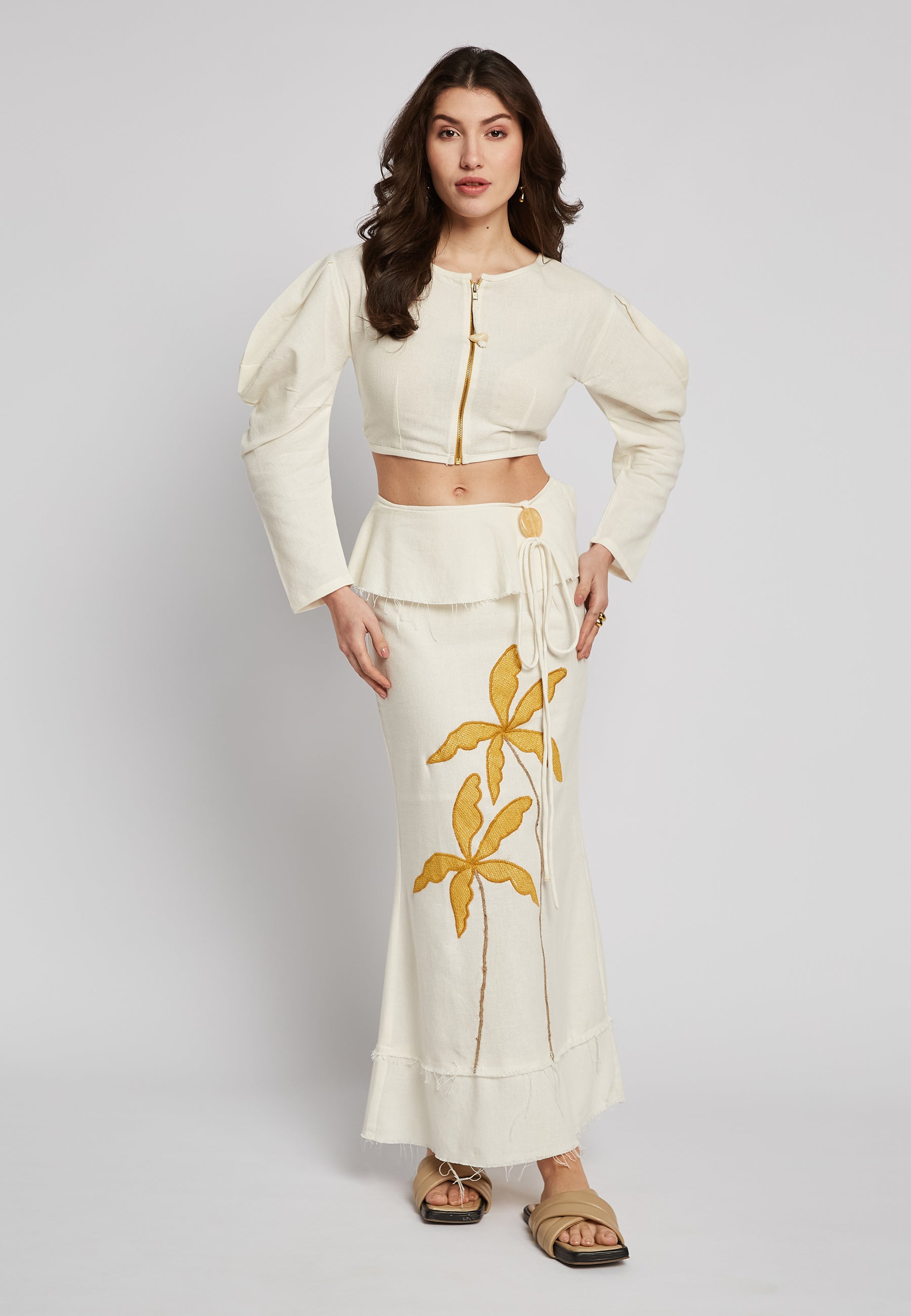 Scopri uno stile estivo senza sforzo con la nostra Surf White Skirt. Realizzata in cotone di prima qualità, questa gonna presenta delicati ricami a forma di palma, perfetti per aggiungere un tocco di fascino tropicale al tuo guardaroba. Resta fresca ed elegante per tutta la stagione con questo capo essenziale.