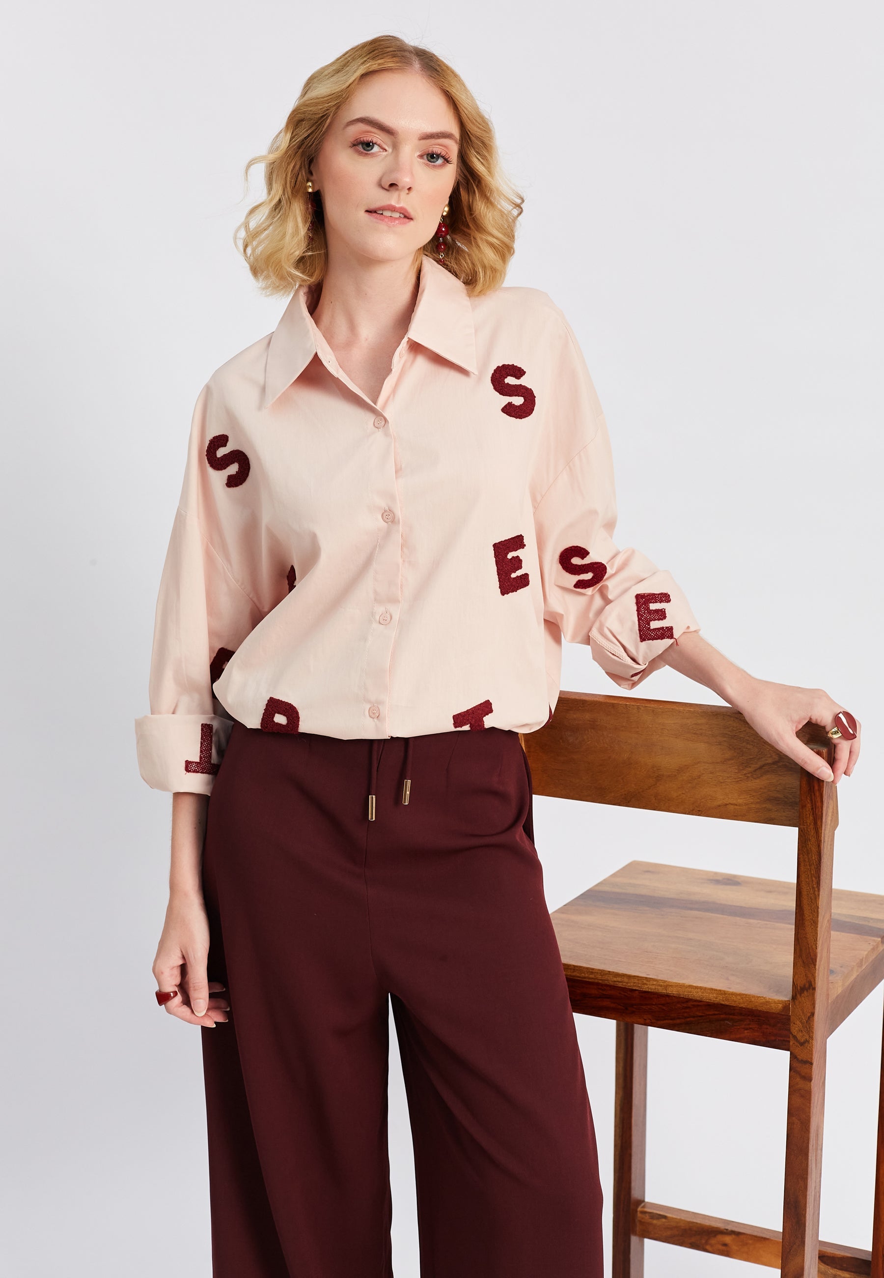 The Ana Shirt is a stylish and unique addition to any wardrobe. This hand-embroidered shirt showcases expert craftsmanship and attention to detail. Elevate your outfit with the personalized touch of its custom letter design. Make a statement with this one-of-a-kind piece that is sure to impress.