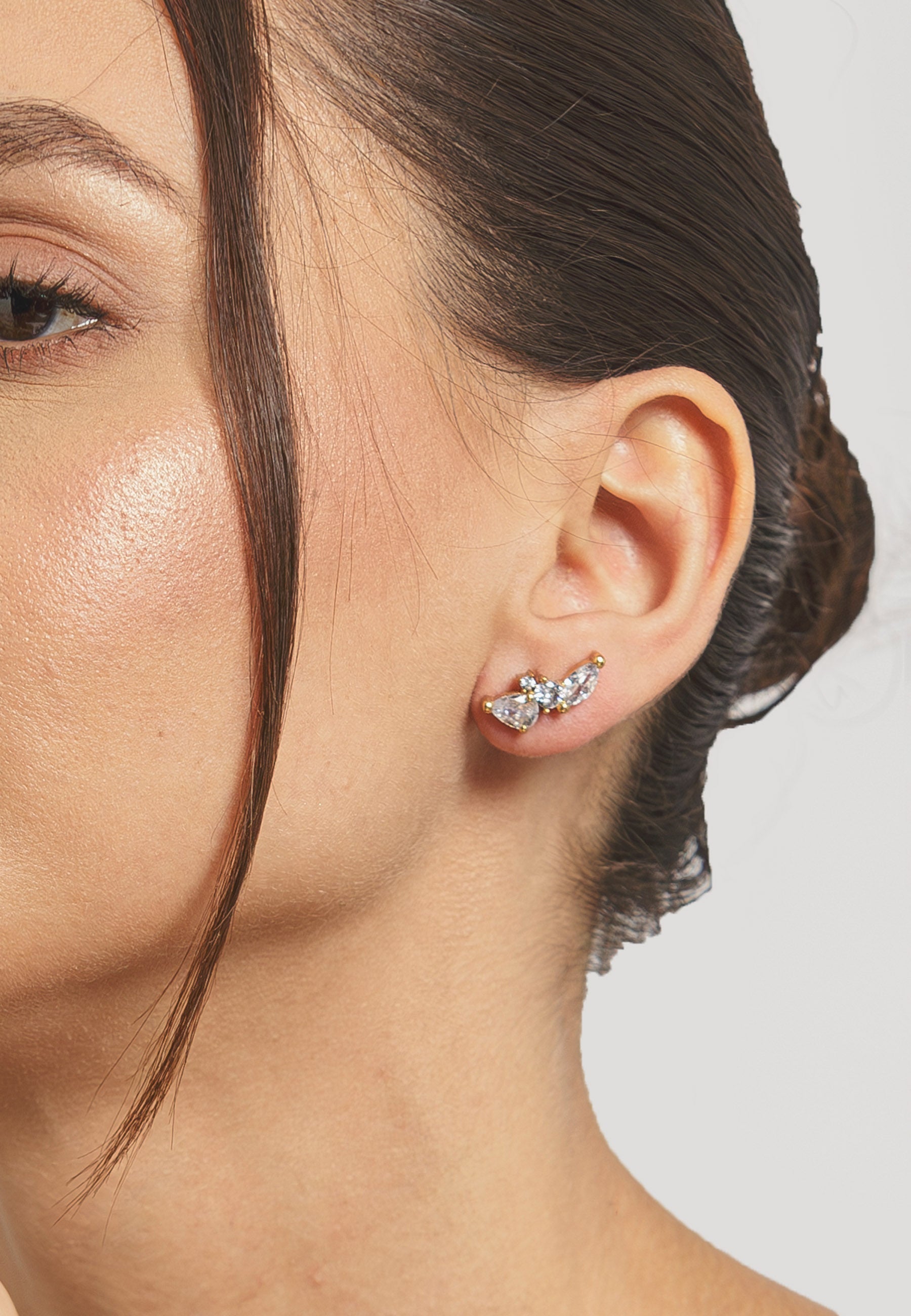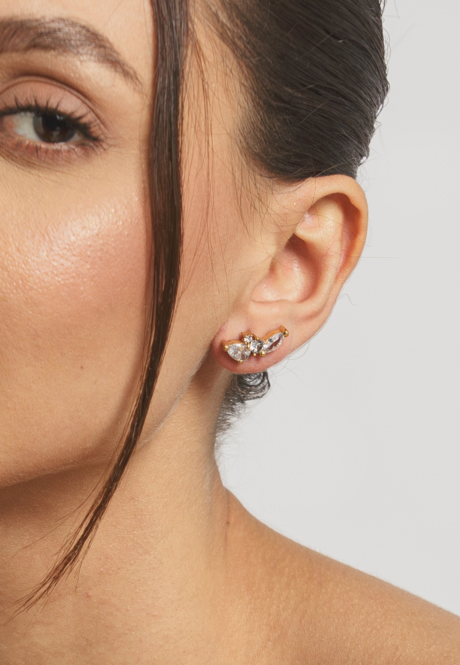 Earrings made of white bronze and gold-plated. With cubic zirconia.