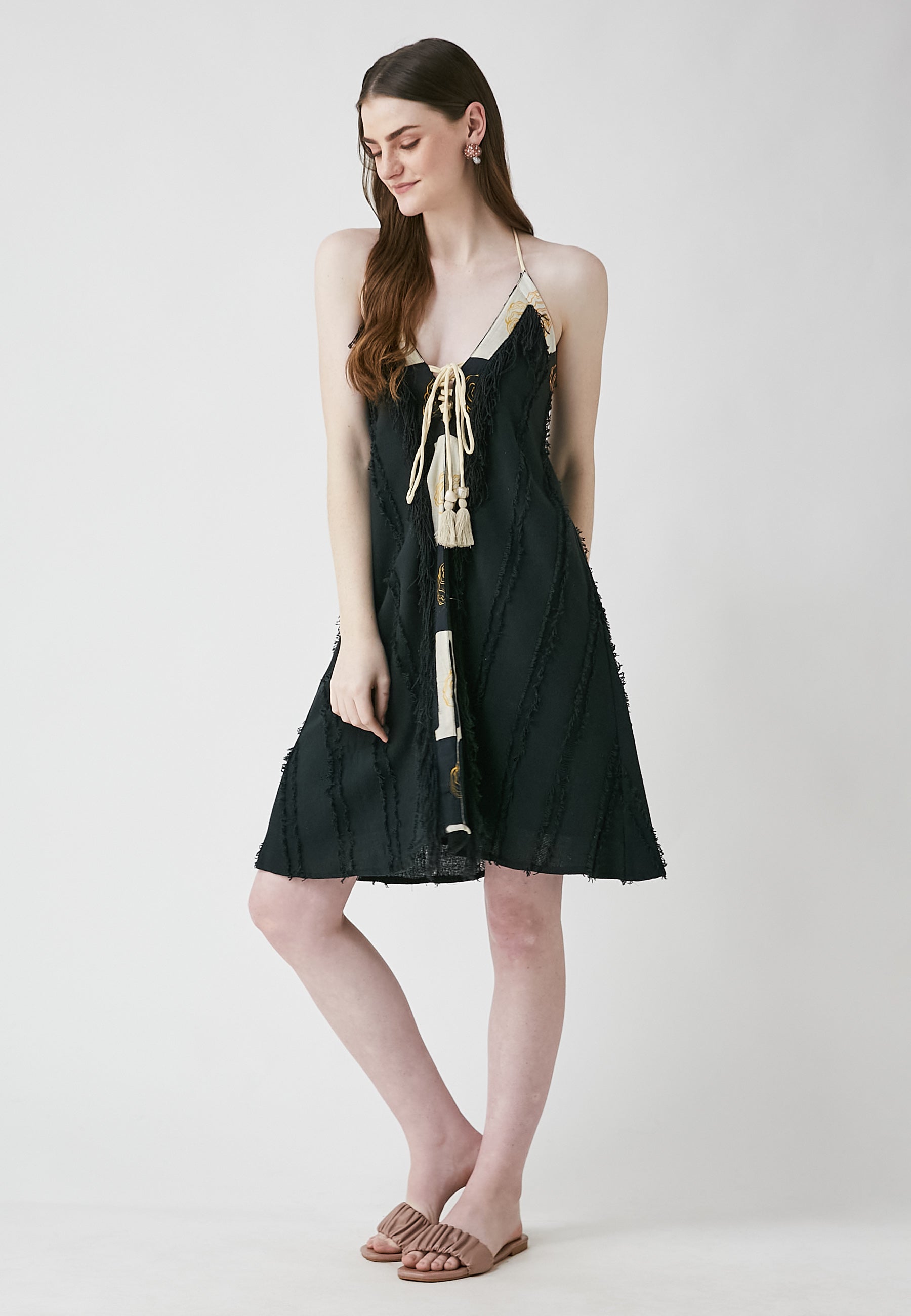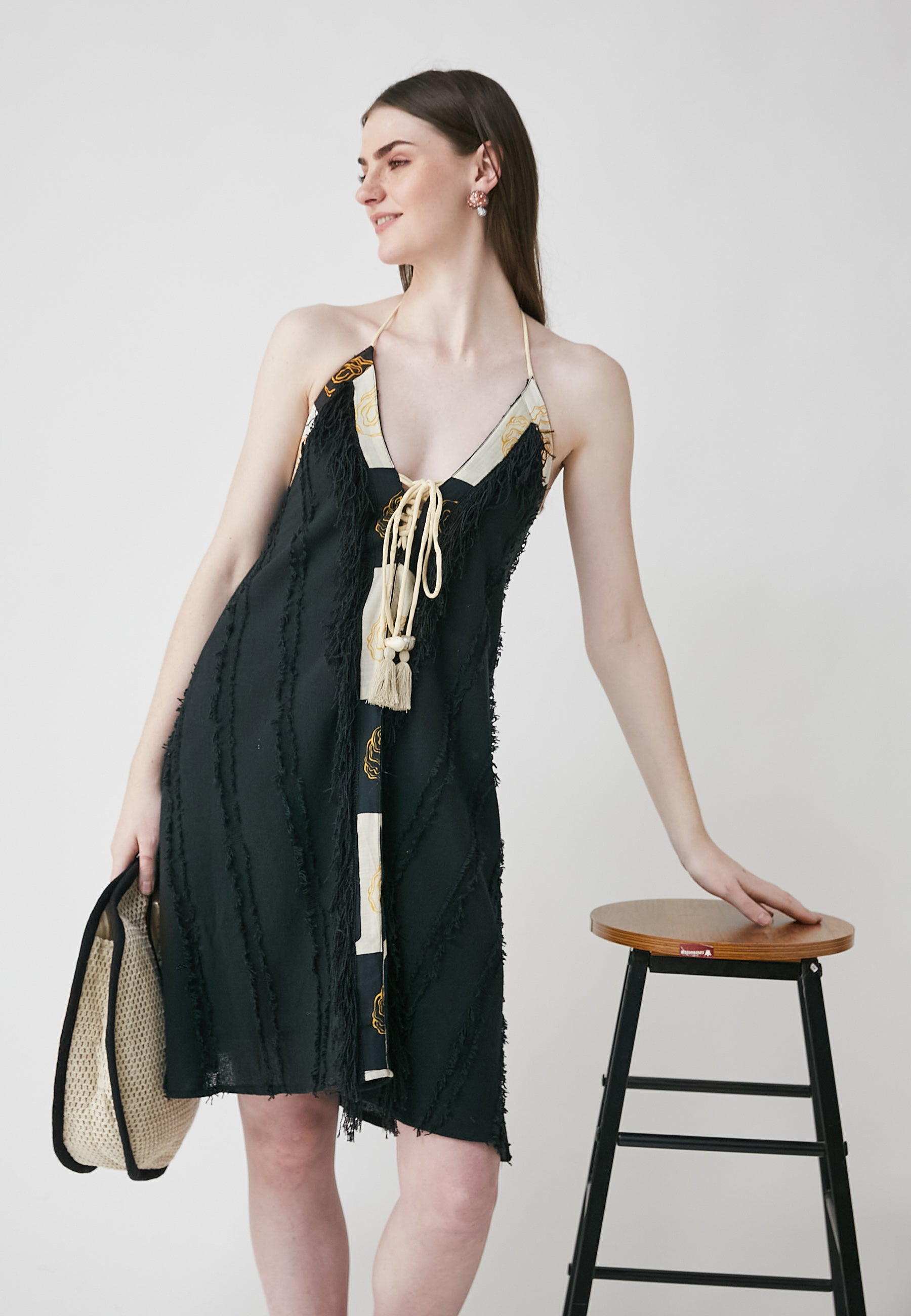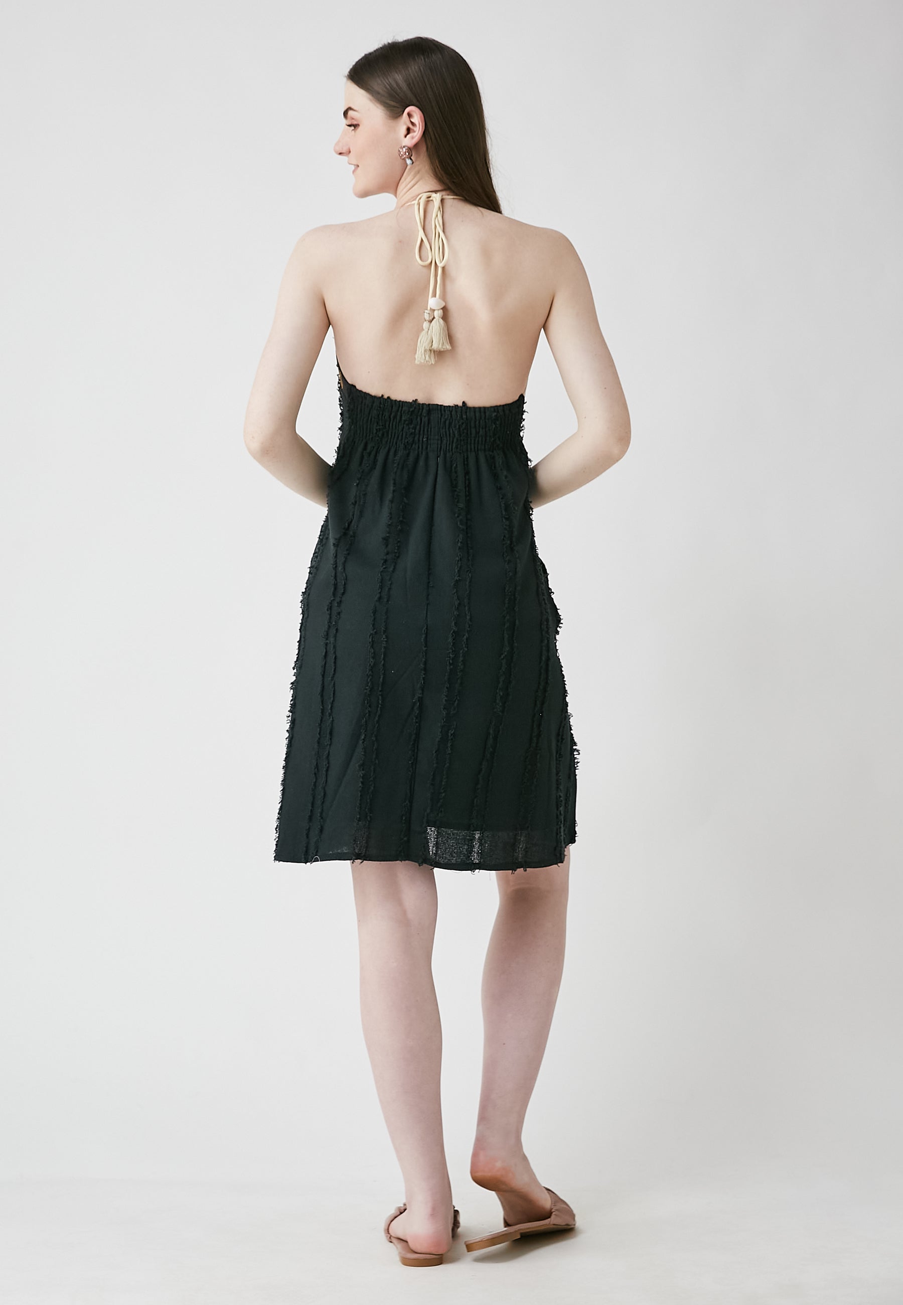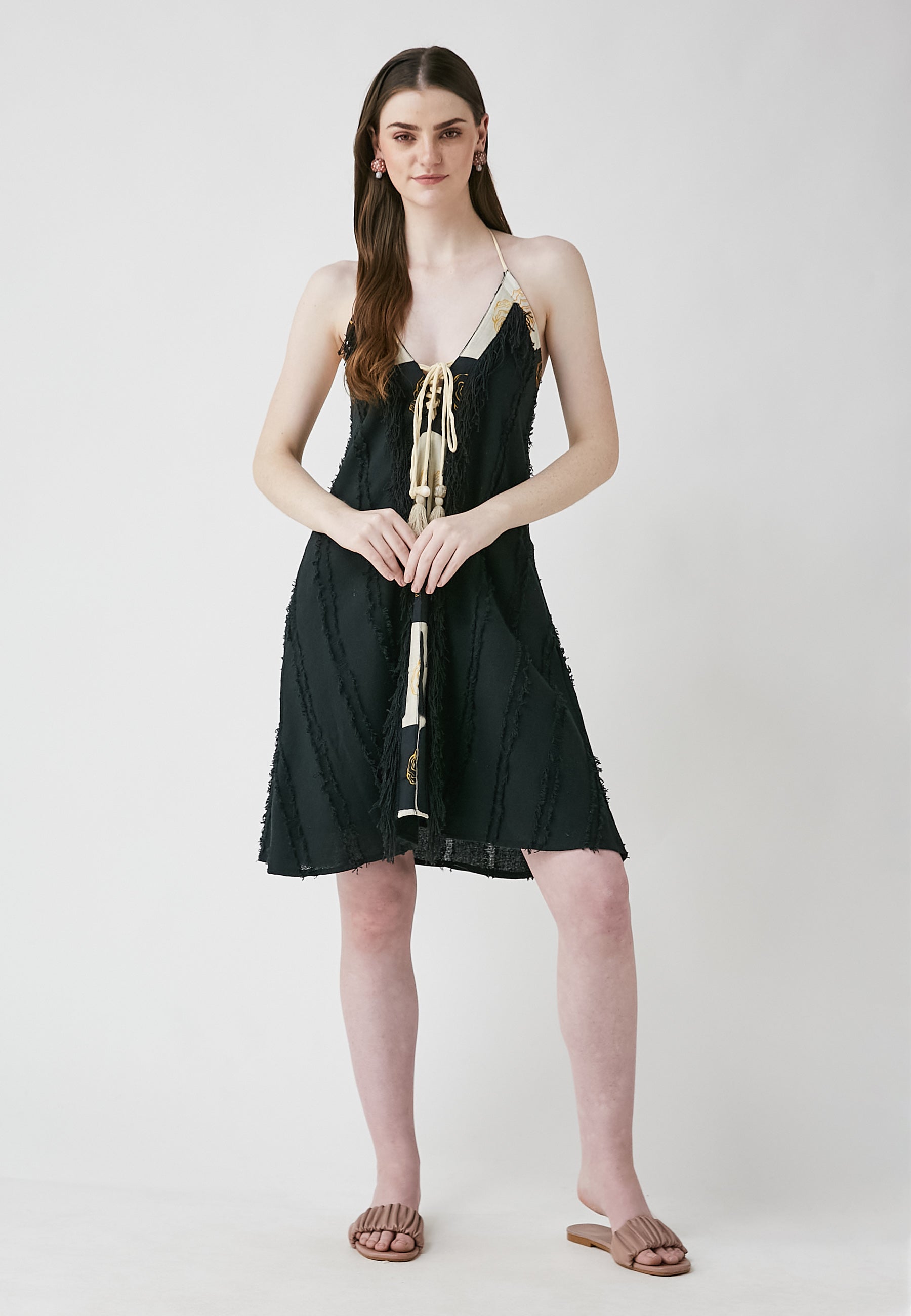 Indulge in effortless style with the Bree Black Dress. This short dress, made from luxurious cotton, boasts a unique textured fabric for a touch of sophistication. Perfect for any occasion, whether casual or formal. Elevate your wardrobe with this exclusive piece.