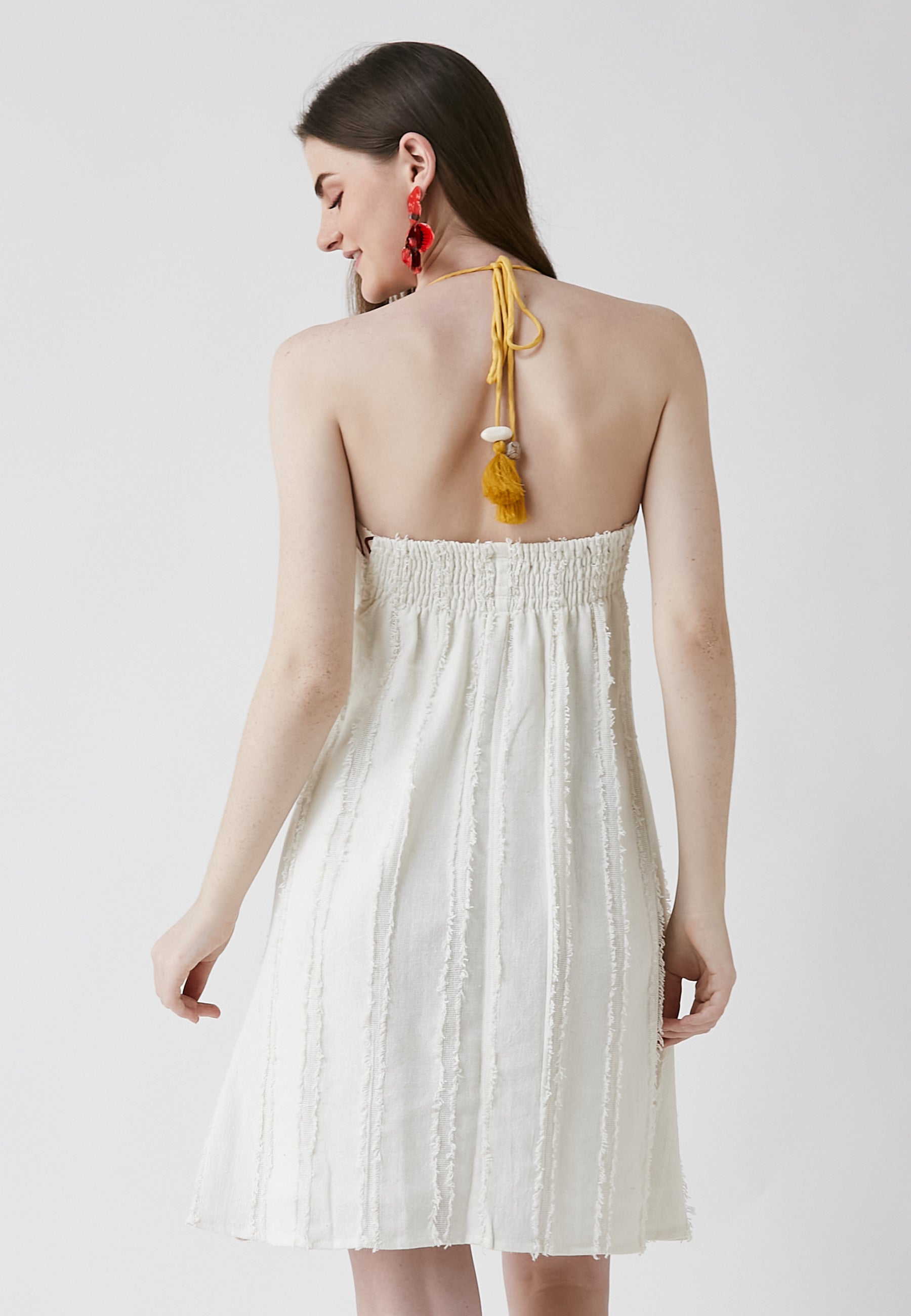 Embrace elegance in the Bree White Dress. Its crisp white hue and delicate texture make it perfect for summer days. Made from airy cotton, this short dress effortlessly exudes a casual yet luxurious vibe. Perfect for any occasion, elevate your style with the Bree White Dress.