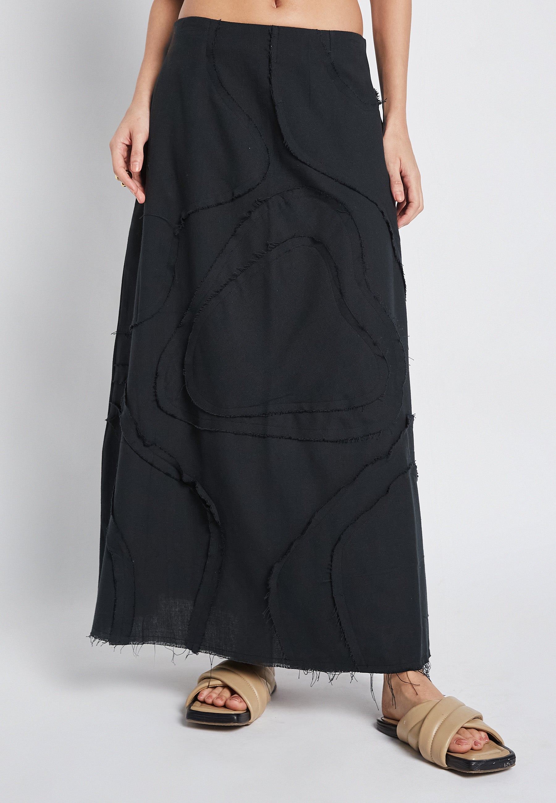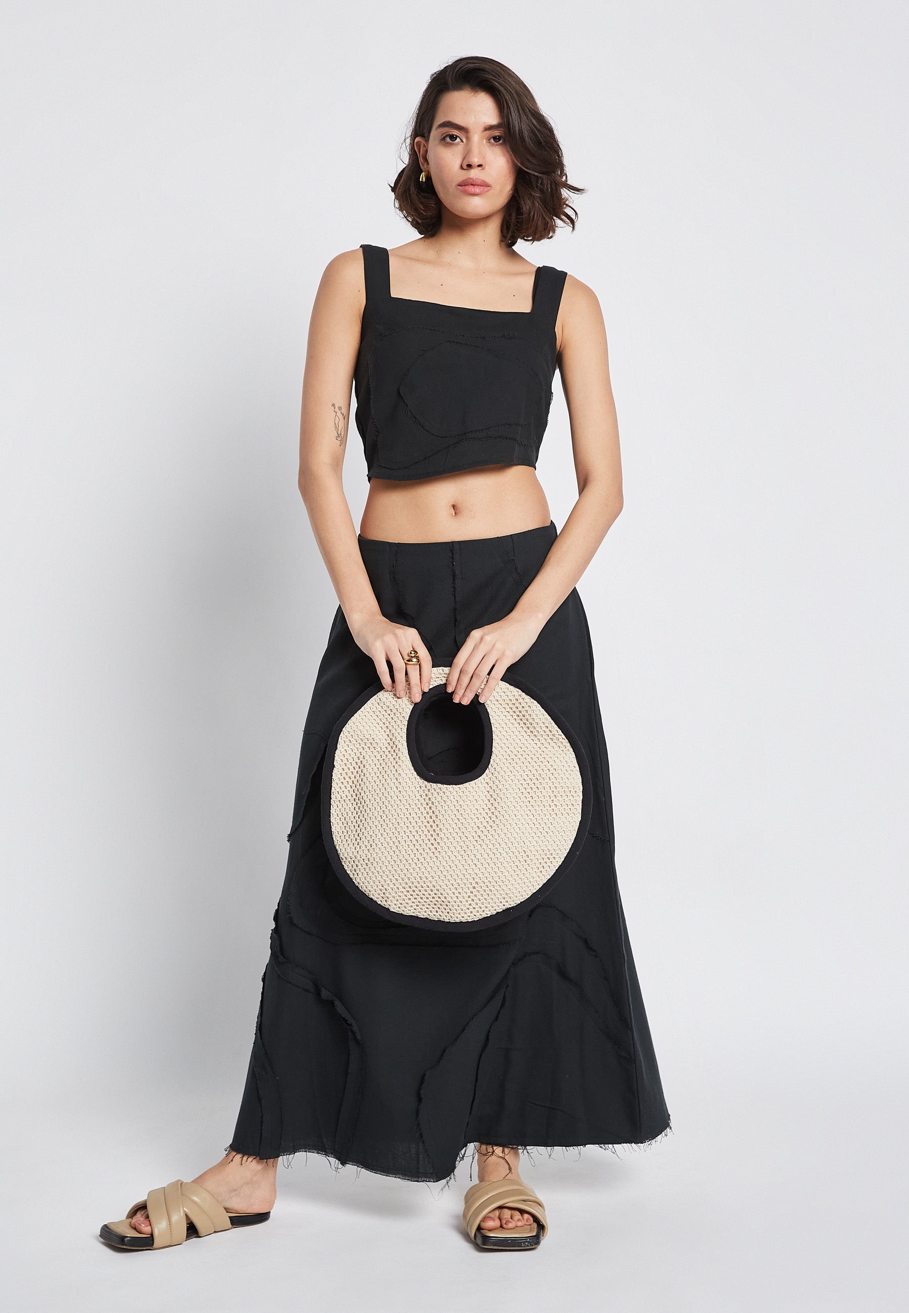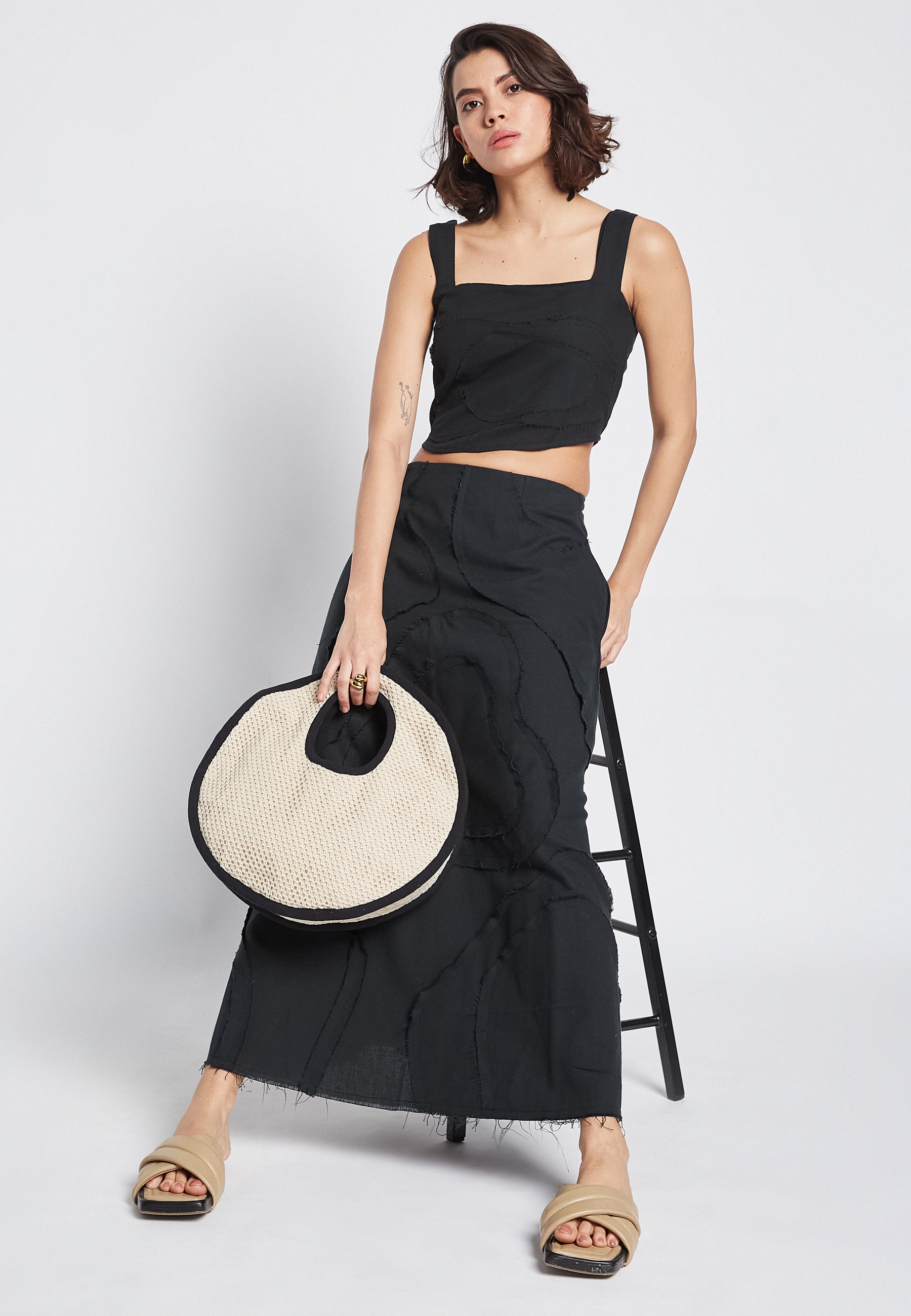 The Flora Black Skirt is perfect for a casual summer look. Made with 100% cotton, it offers comfort and breathability. The striking embroidery adds a unique touch to the classic black design. Elevate your style with this versatile and stylish skirt.