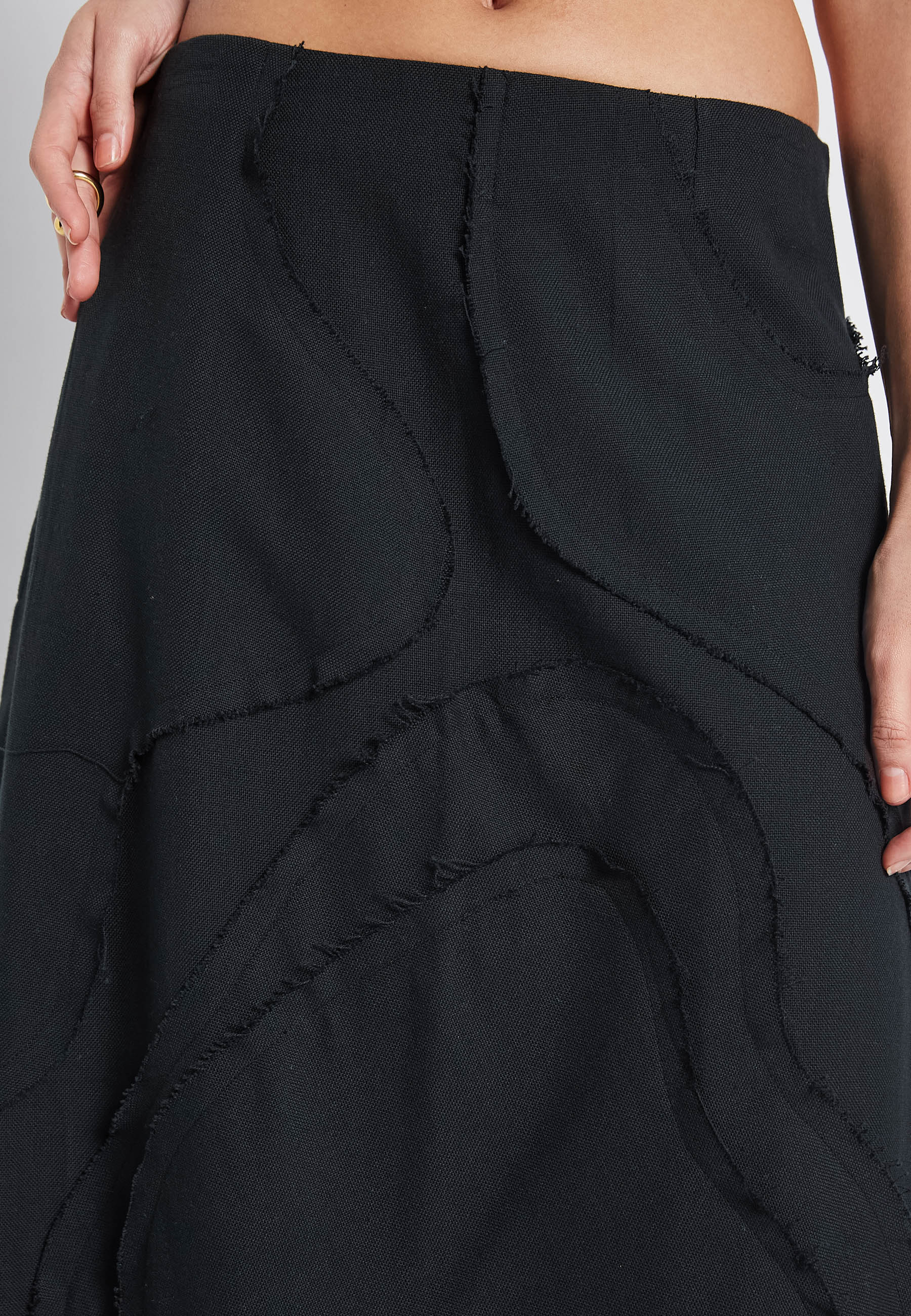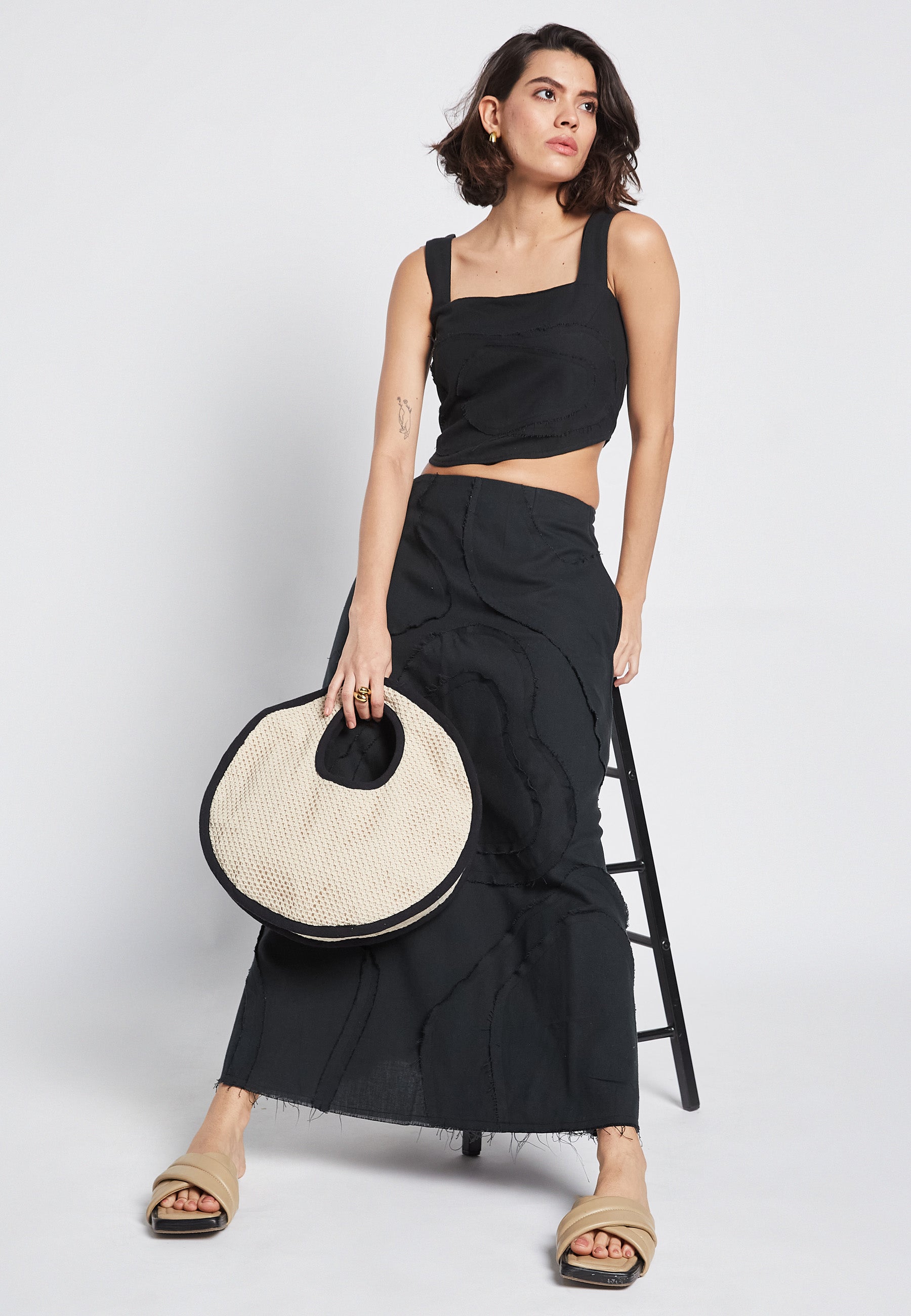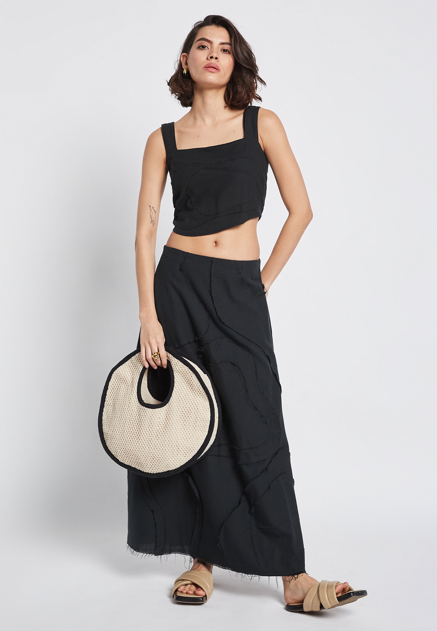 The Flora Black Skirt is perfect for a casual summer look. Made with 100% cotton, it offers comfort and breathability. The striking embroidery adds a unique touch to the classic black design. Elevate your style with this versatile and stylish skirt.