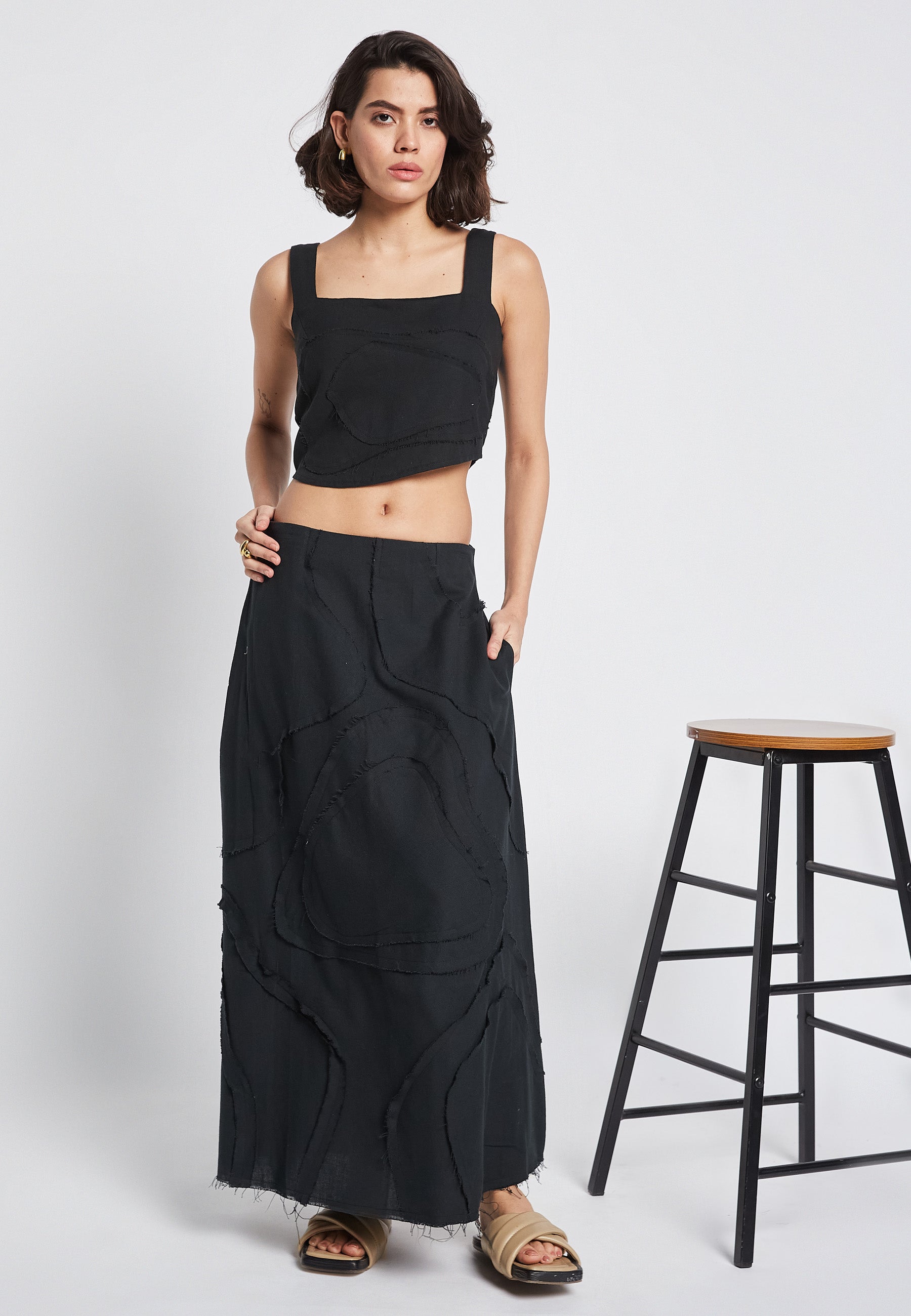 The Flora Black Top is the perfect addition to your summer wardrobe. Made of lightweight cotton, this casual top is both comfortable and stylish. Its intricate embroidery adds a touch of elegance to the classic black design. Upgrade your summer look with this must-have top.