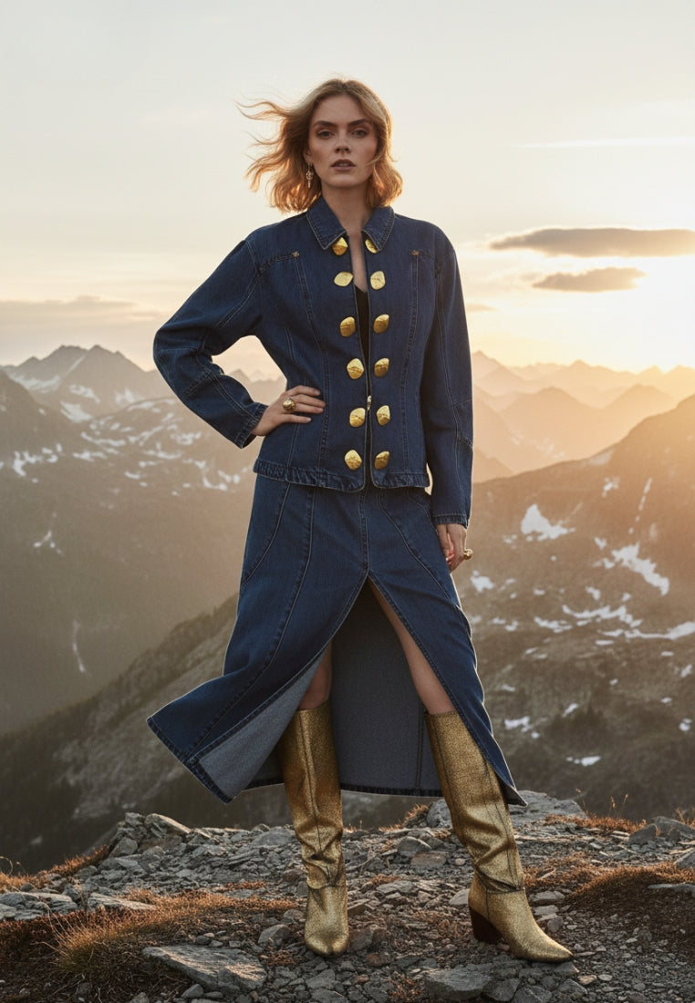 Introducing the Lauren Cardigan, the perfect layering piece for any outfit. Made from 100% cotton with a natural wash and big chunky golden buttons, this denim cardigan offers both style and comfort. Elevate your wardrobe with this versatile and classic cardigan.