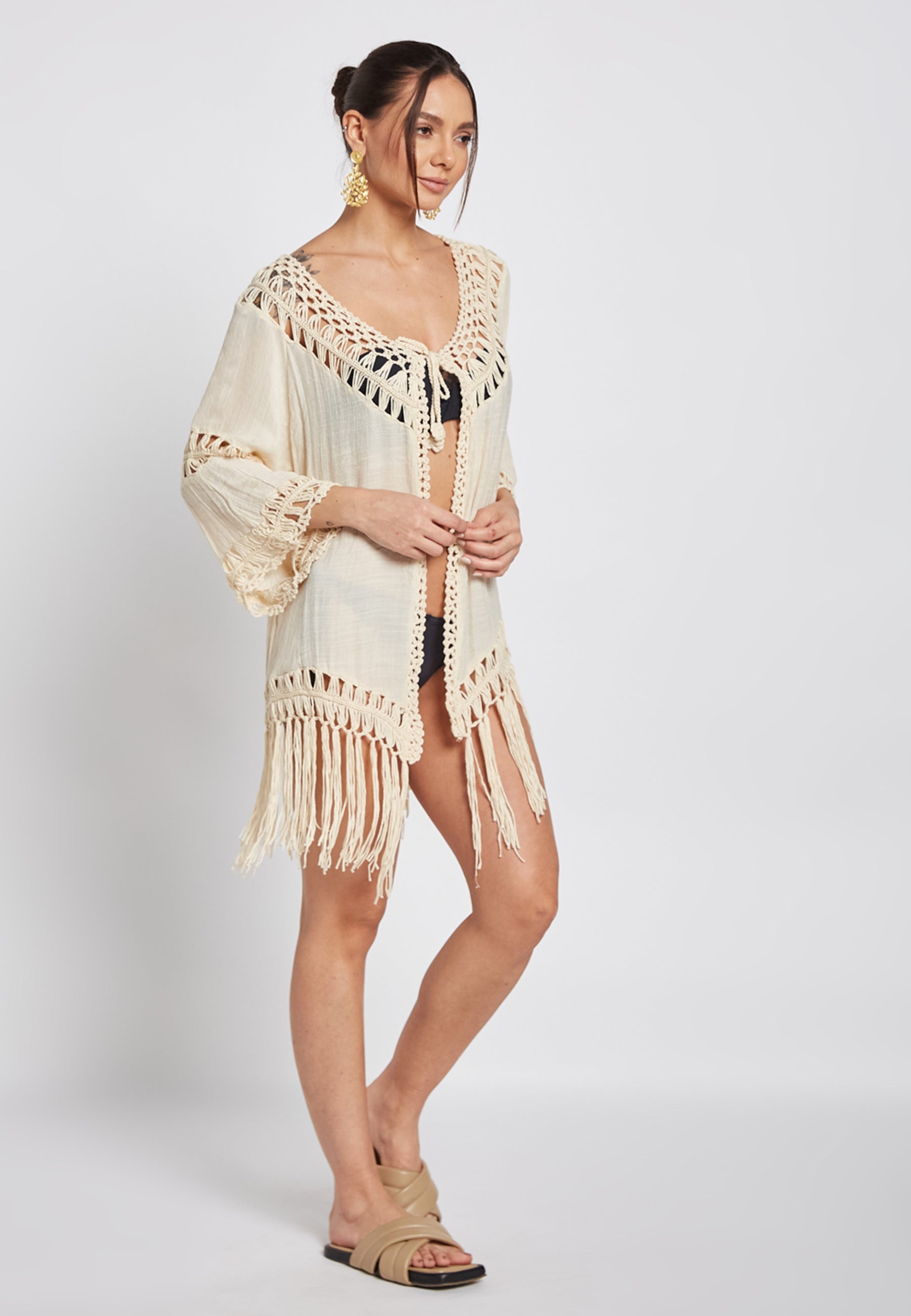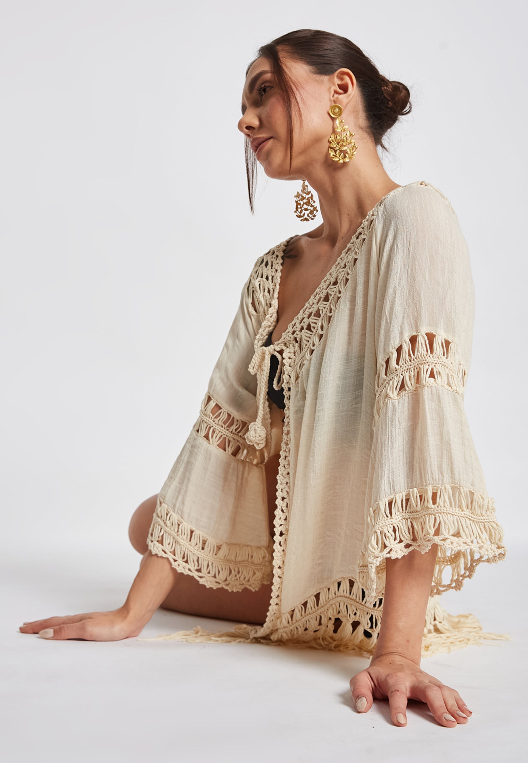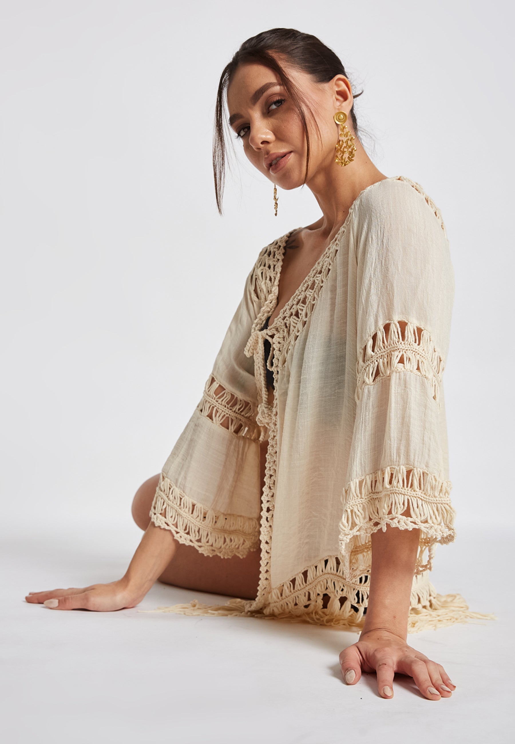 Our cardigan is meticulously crafted from top-tier acrylic, ensuring a lightweight, soft, and comfortable fit for all-day wear. The detailed crochet pattern presents a beautiful open-work design, creating an airy and breathable piece that does not compromise on style.