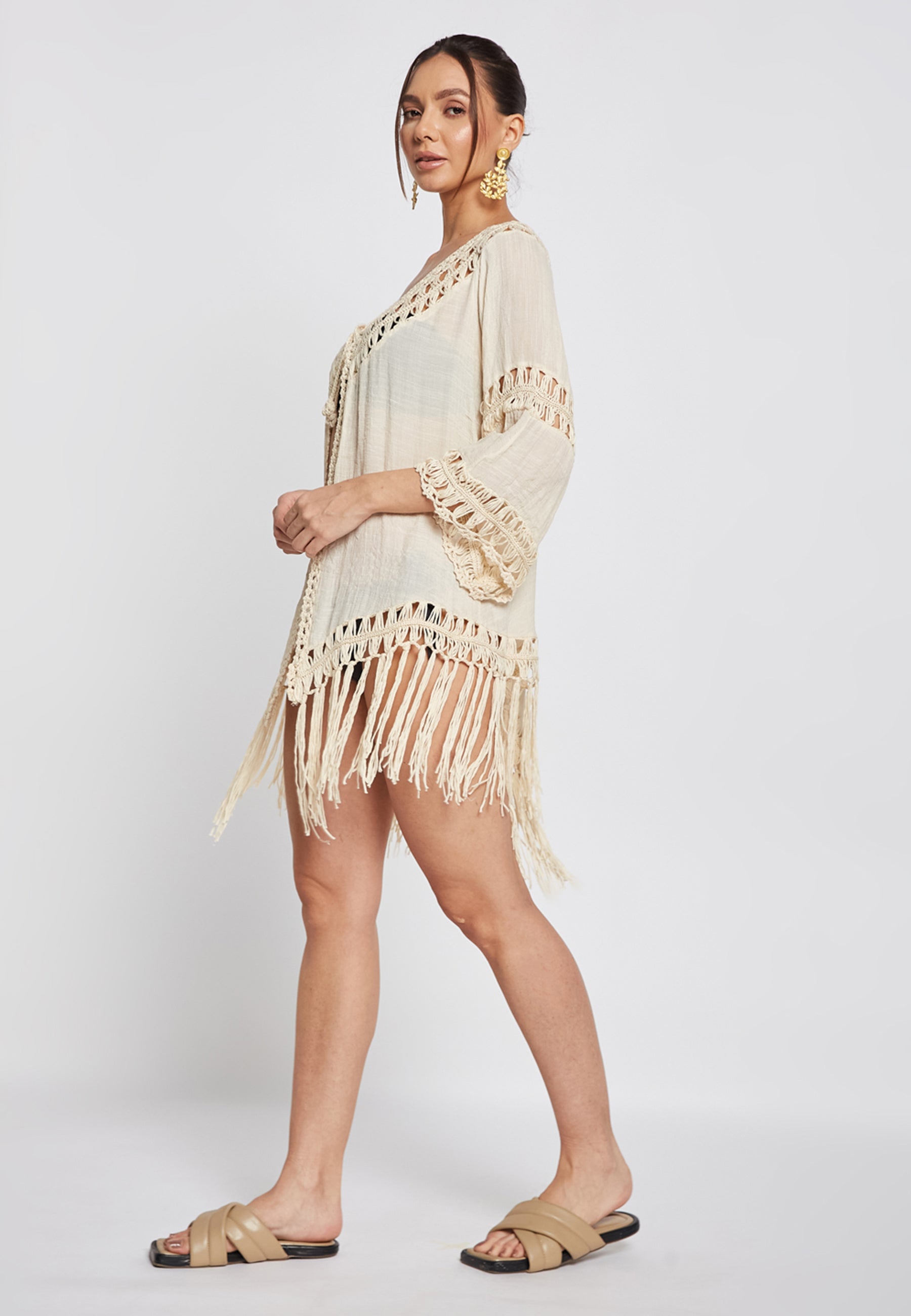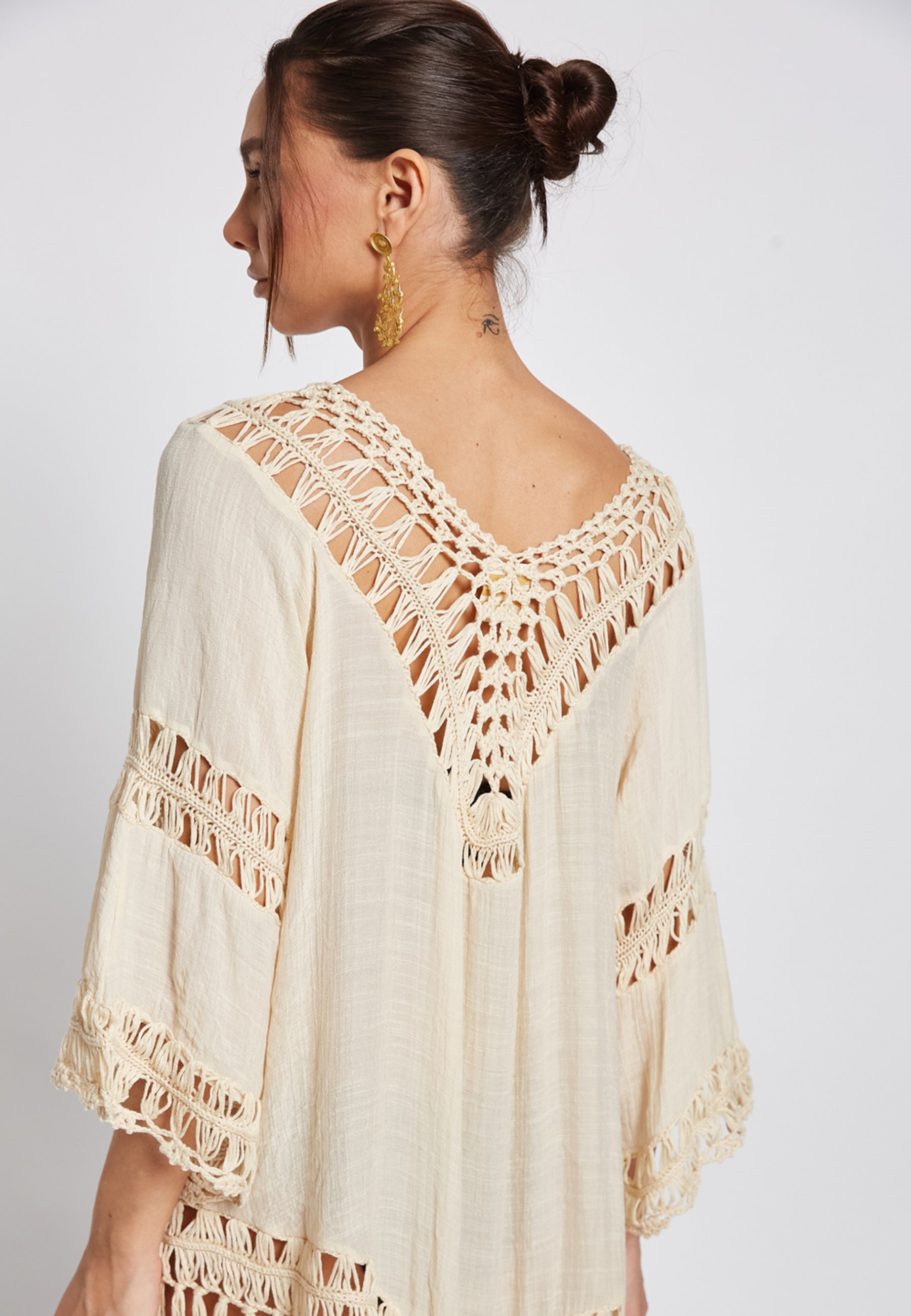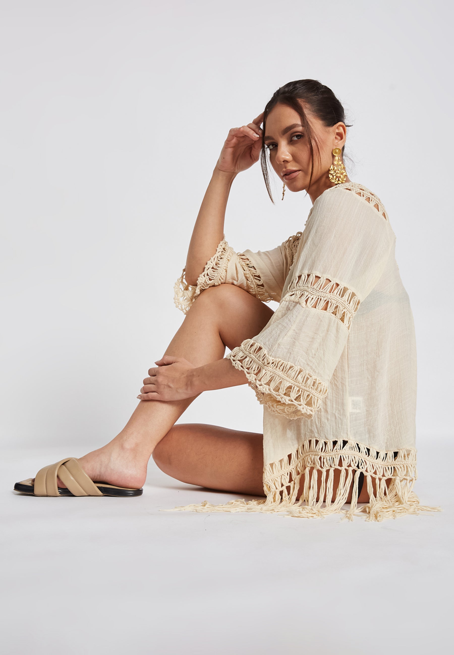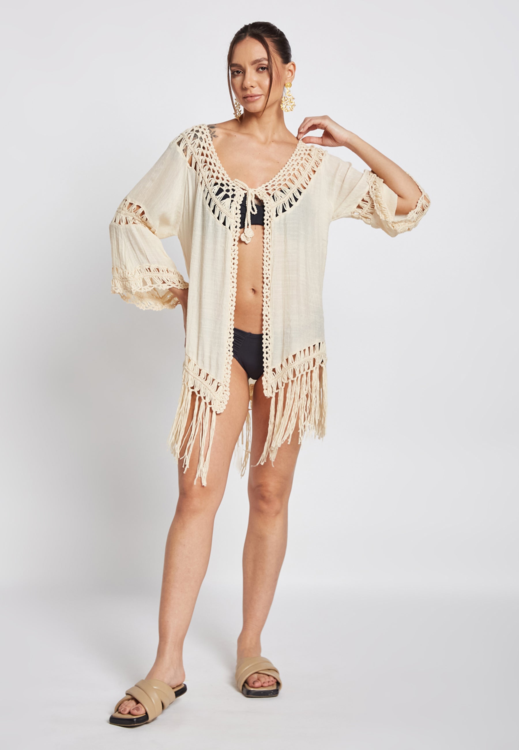 Our cardigan is meticulously crafted from top-tier acrylic, ensuring a lightweight, soft, and comfortable fit for all-day wear. The detailed crochet pattern presents a beautiful open-work design, creating an airy and breathable piece that does not compromise on style.
