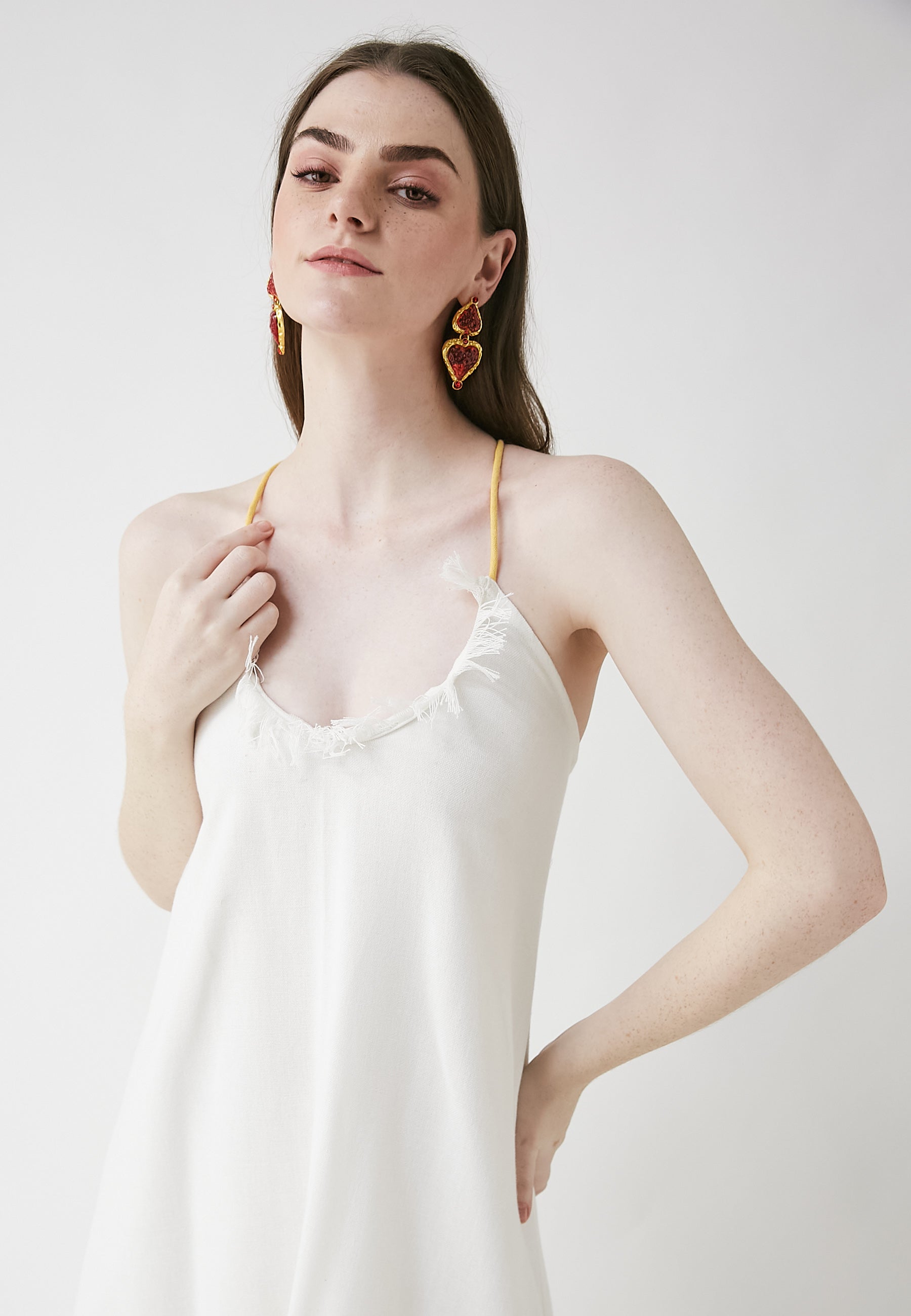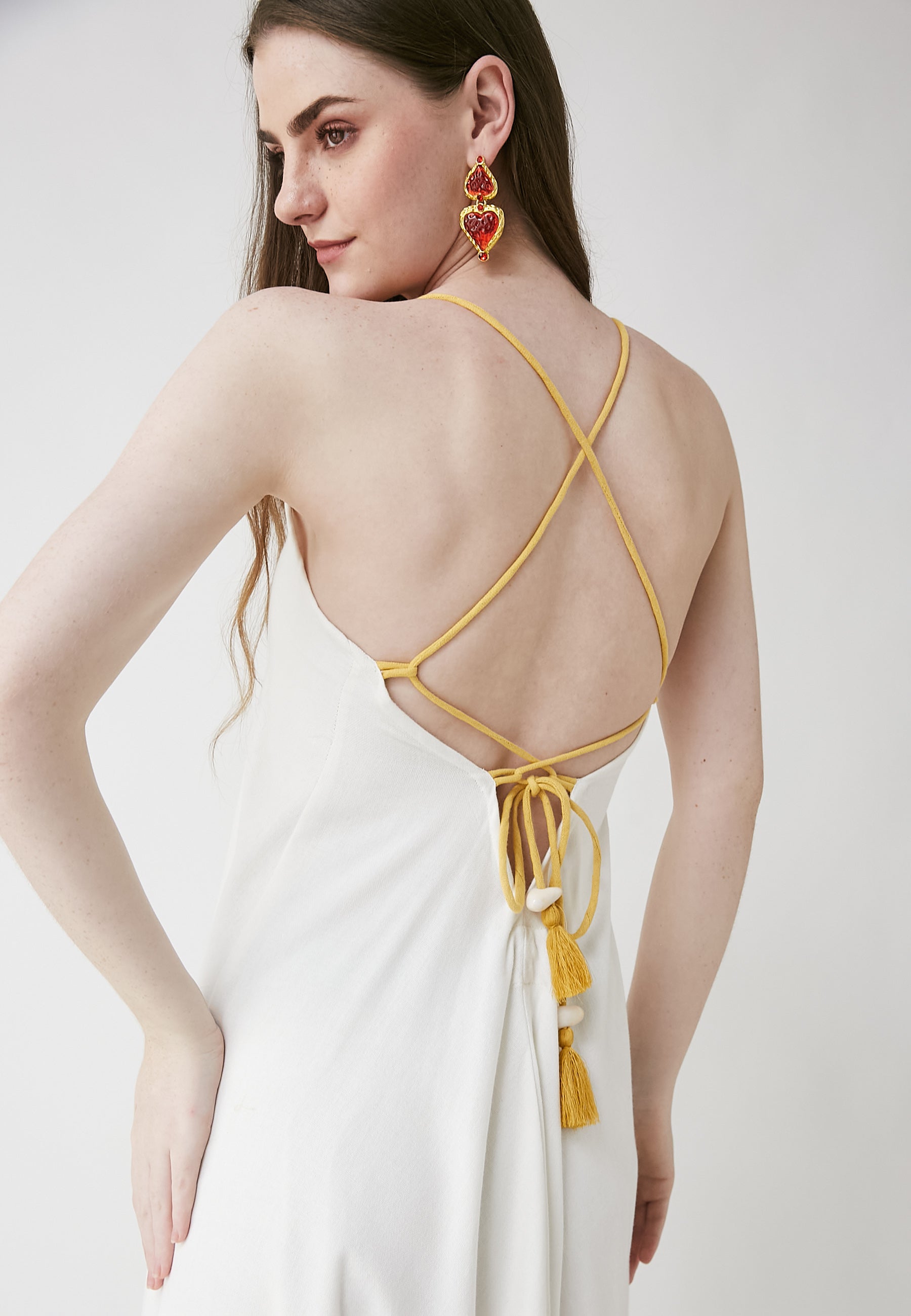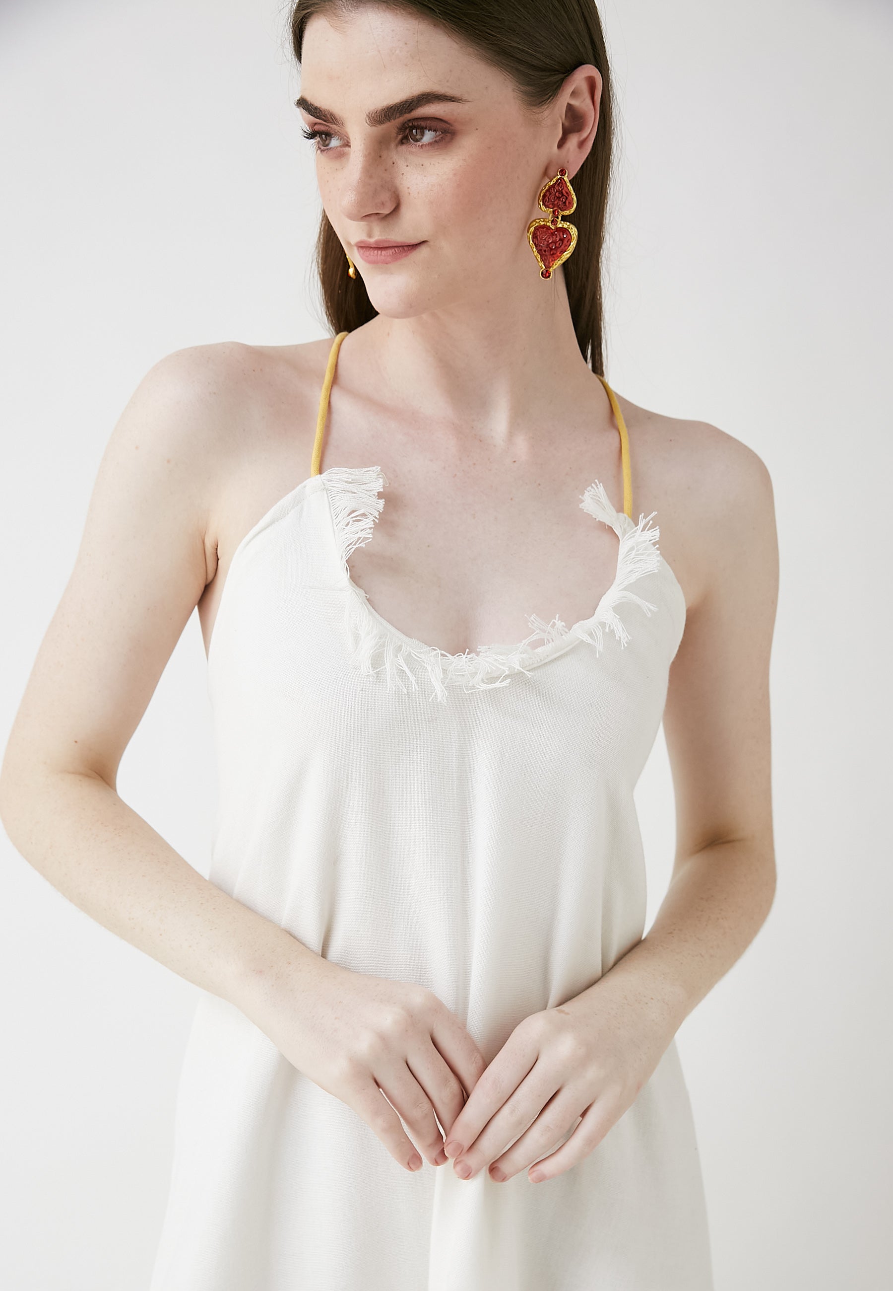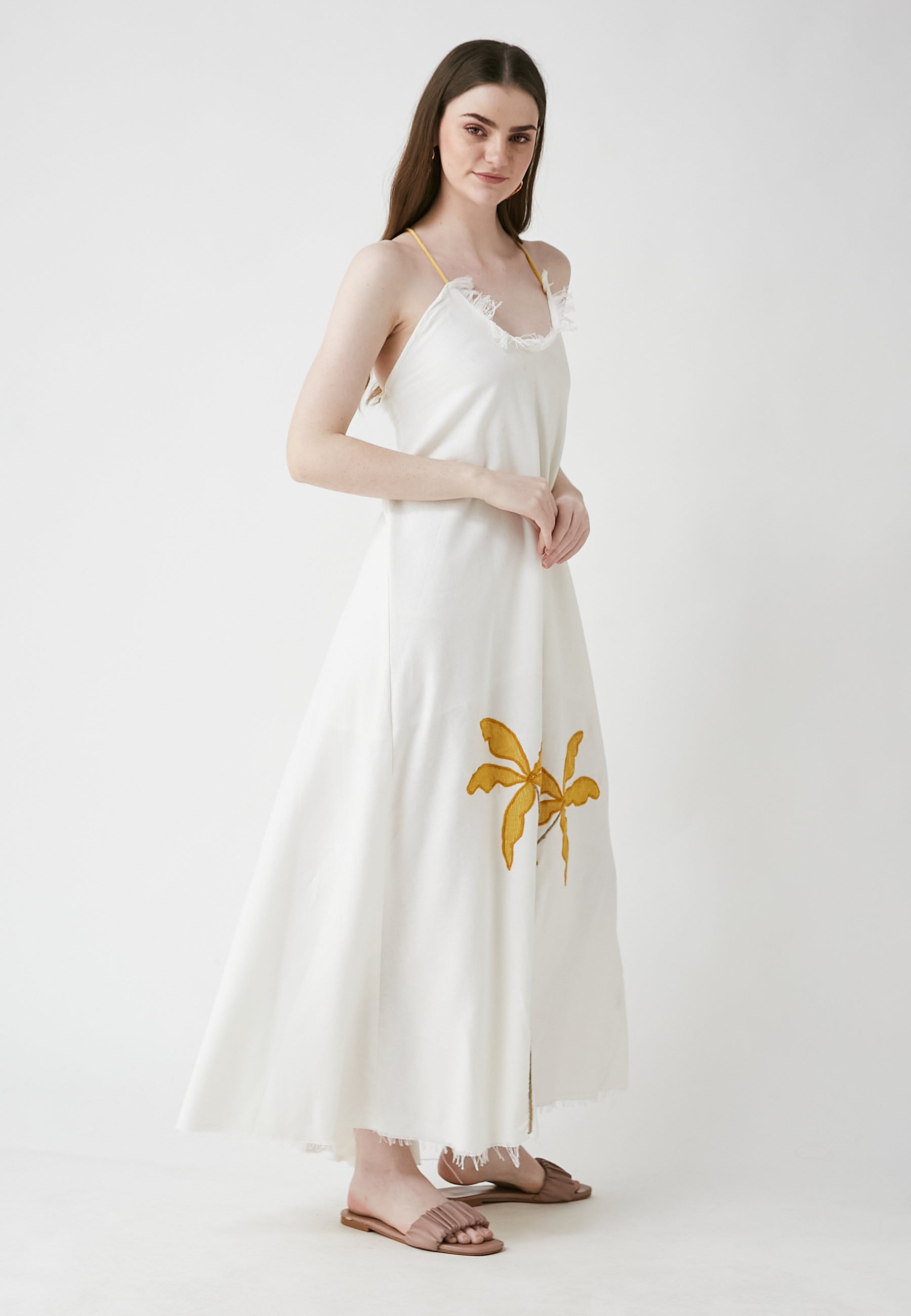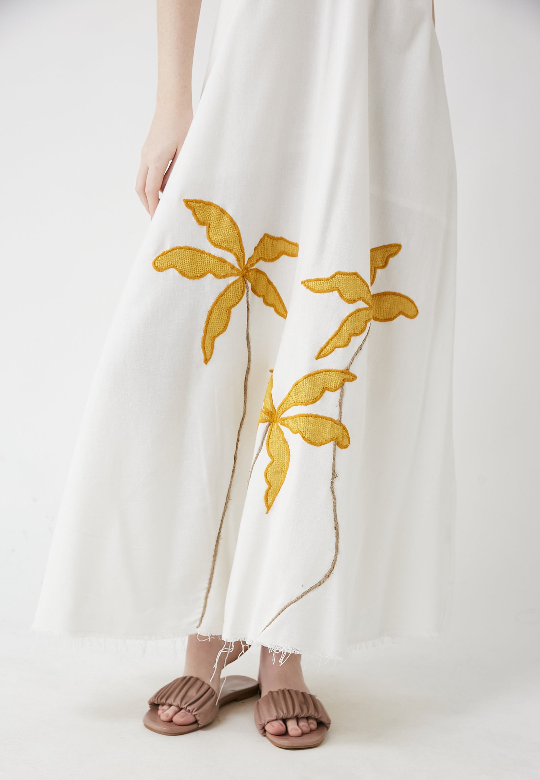 This exquisite long dress, crafted from luxurious cotton, exudes casual elegance. Intricate embroidery adds a touch of artistry, while the adjustable size ensures a perfect fit. Make a statement of sophistication and refinement with this tropical-inspired piece.