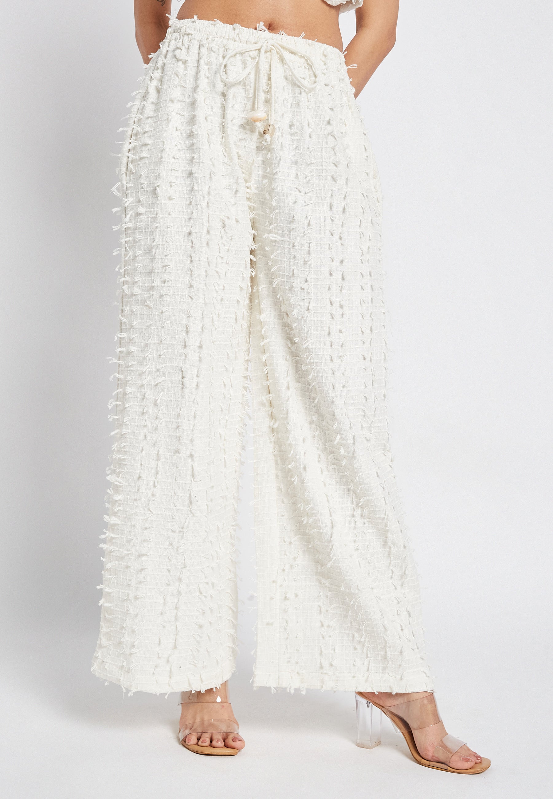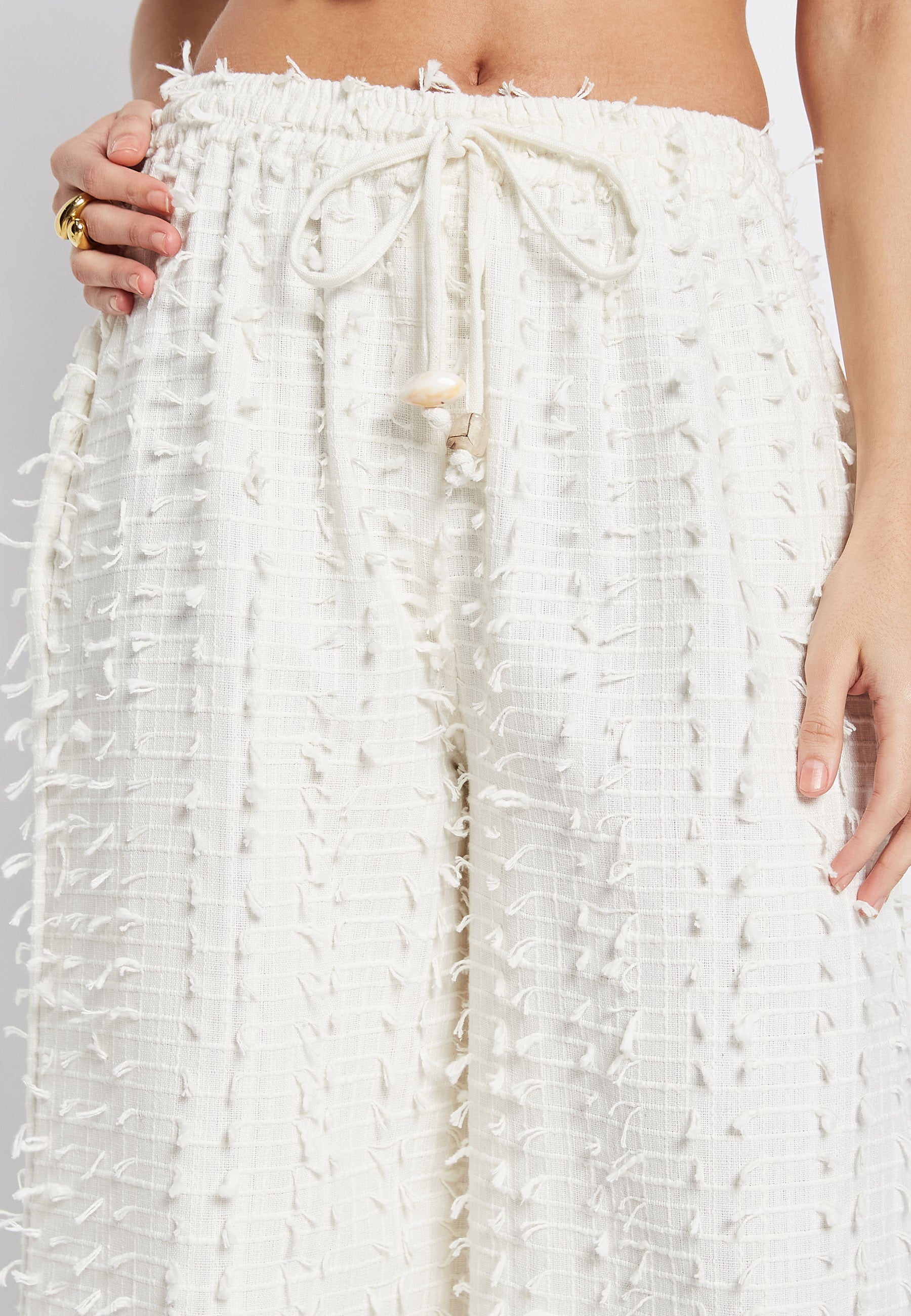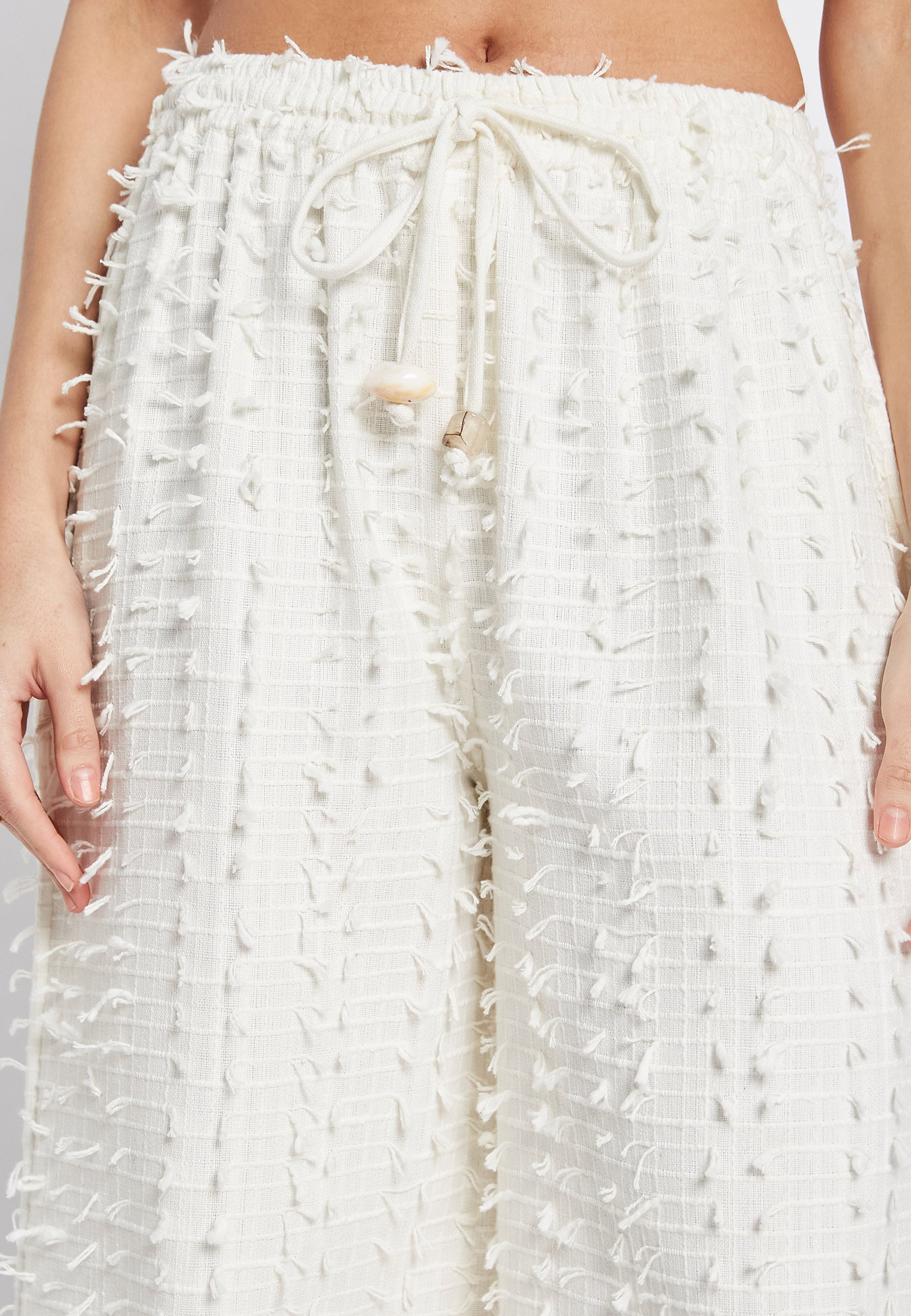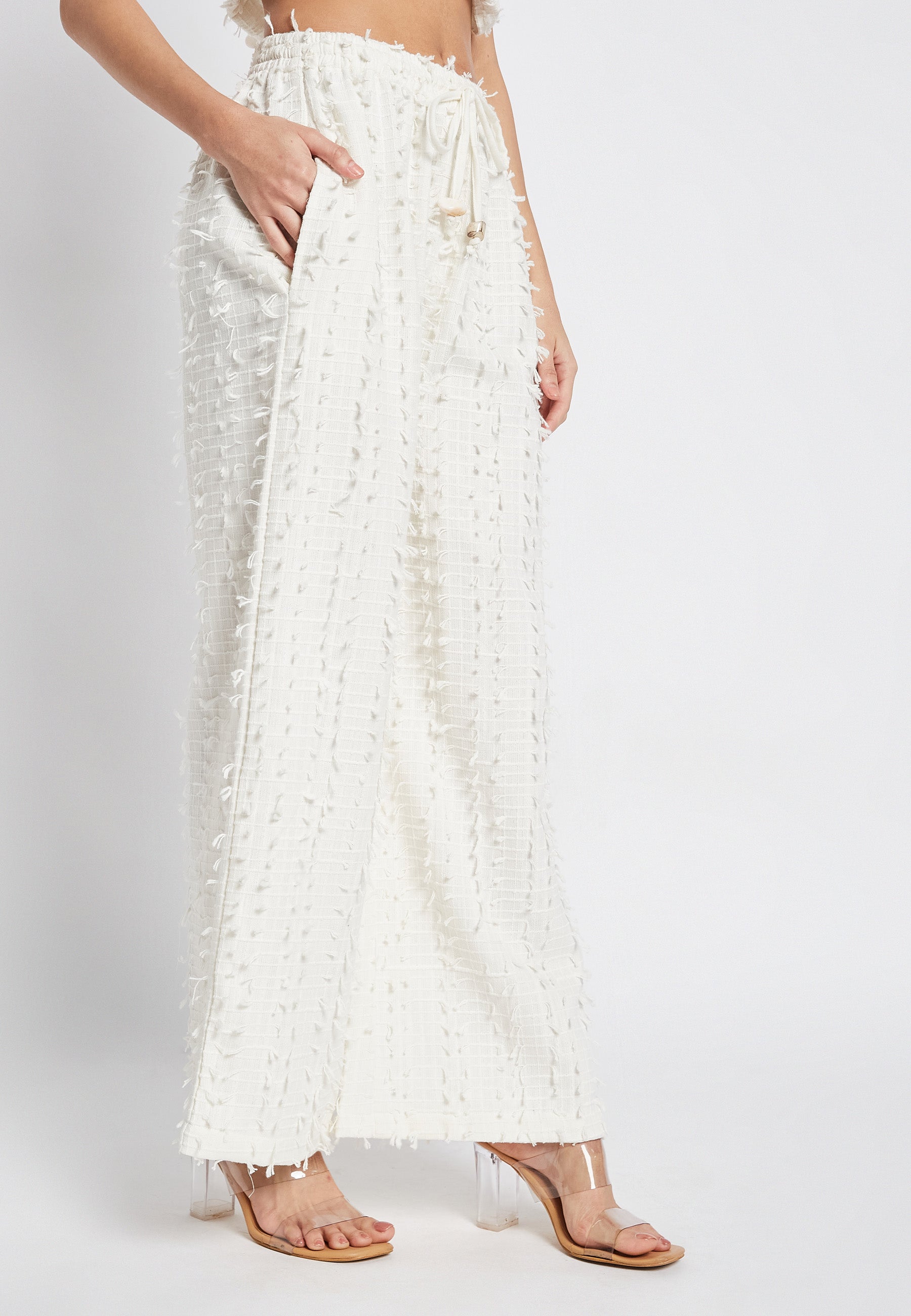 Upgrade your wardrobe with the Wave Pel Trousers. These stylish white trousers are made of high-quality cotton and feature a unique textured fabric. Stay comfortable and fashionable all day long. Perfect for any occasion.