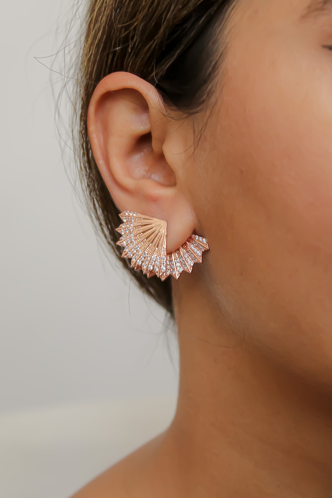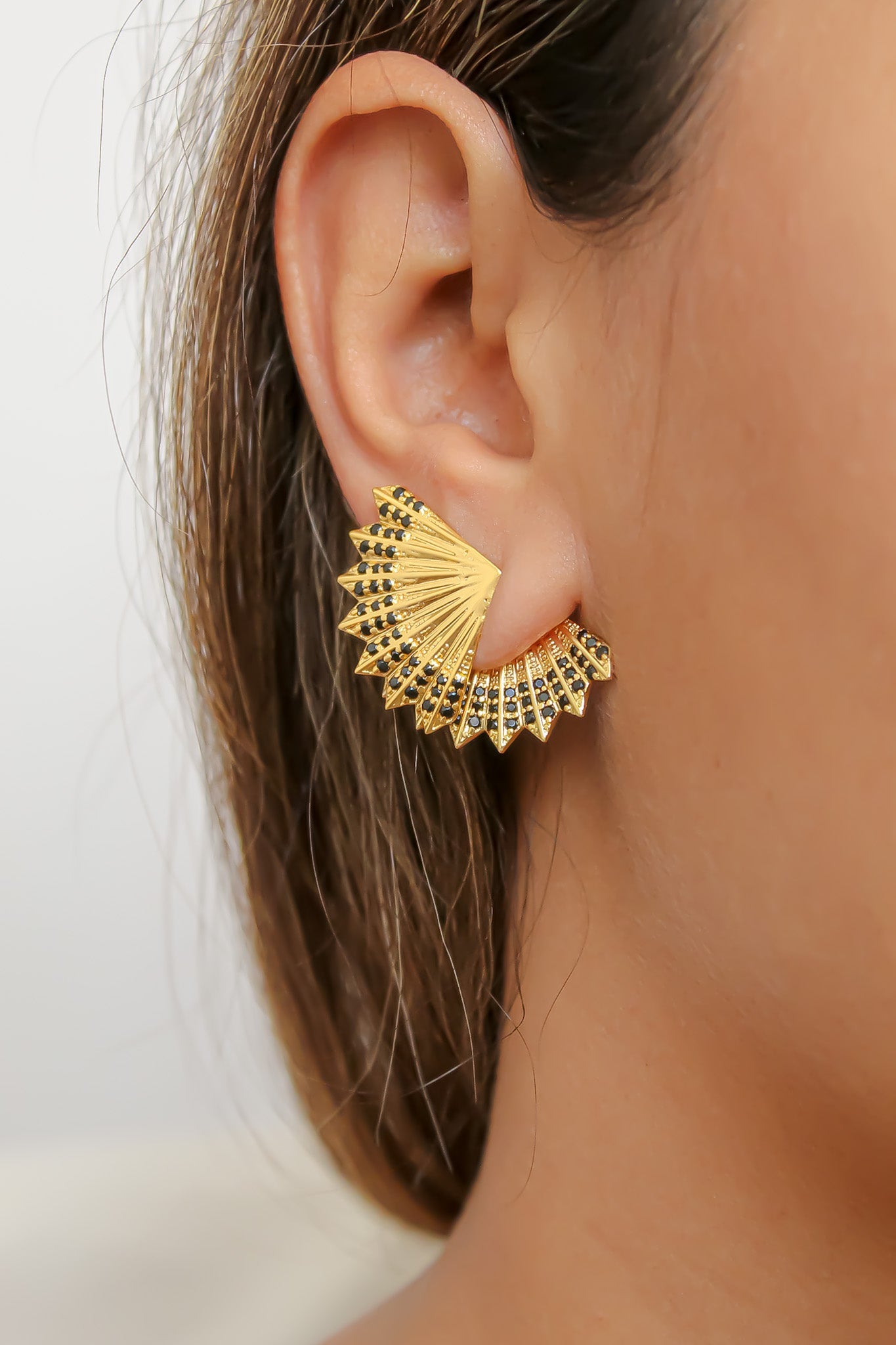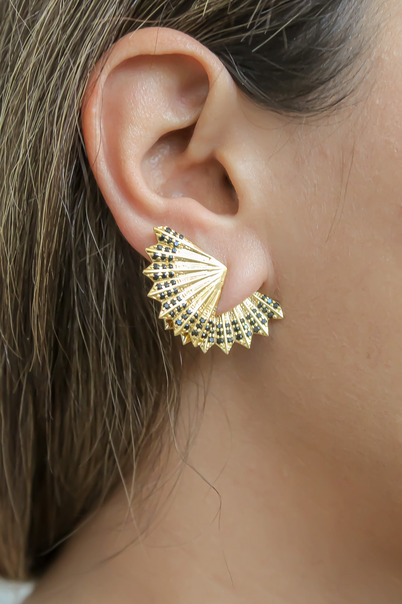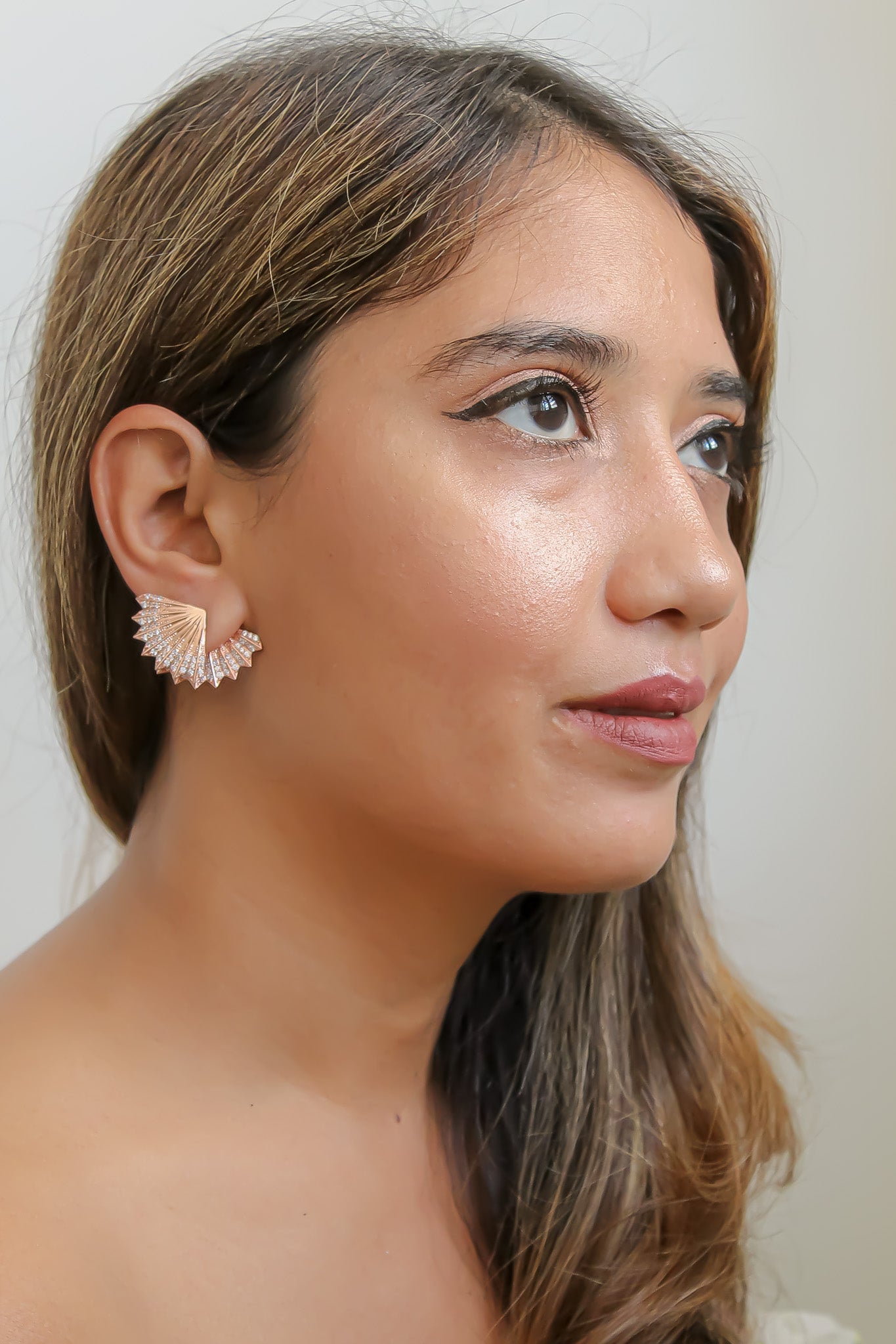 Mini-Abanicho Earrings are embellished with zirconia stones. These stones are stones of courage and strength. Wearing it brings self-confidence. This earring is perfect for day to night wear.